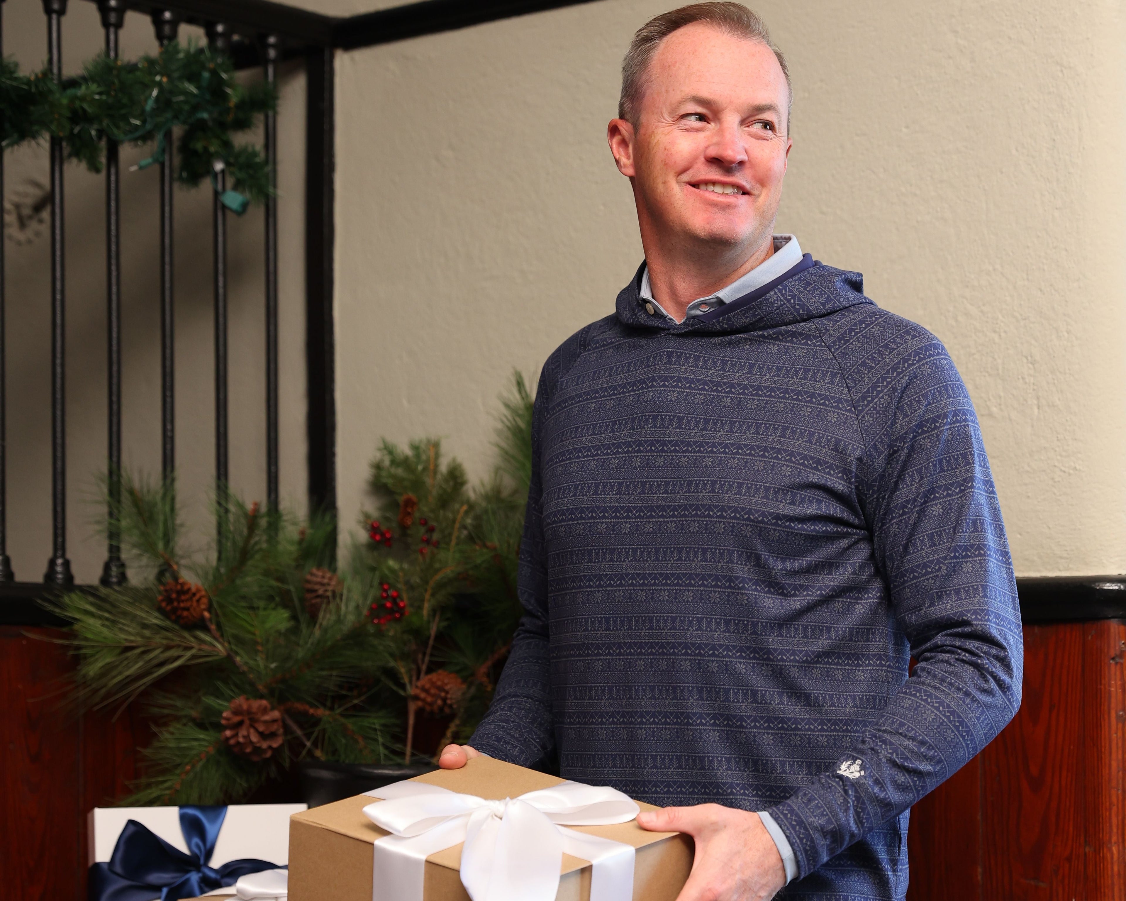 The Fair Isle Hoodie combines refined style with elevated comfort. Crafted from a soft, stretch-performance fabric, it offers a smooth, modern drape and effortless wear. Finished with an embroidered thistle logo, it’s a versatile piece designed to elevate any holiday moment.