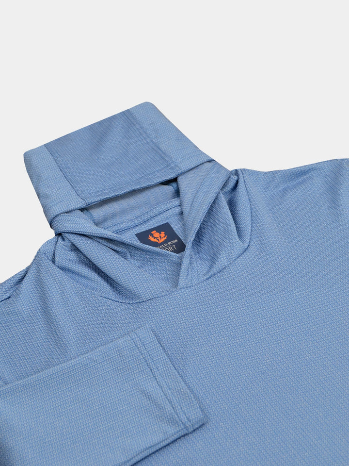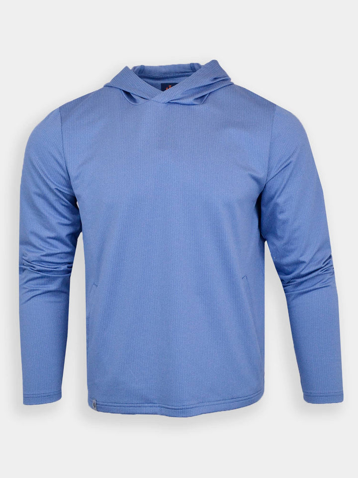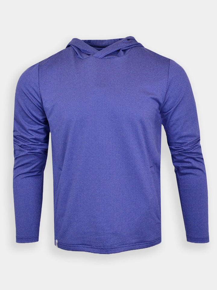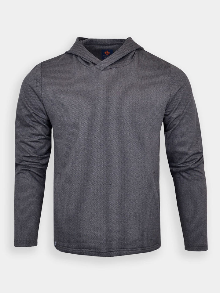 The Alasdair, Men's Heathered Jacquard Hoodie by Donald Ross Sportswear. A heathered jacquard hoodie offered in three flattering color ways that add a subtle pop of color to any outfit. Constructed from our heathered jacquard fabric, this garment feels cool to the touch and stays dry with moisture-wicking fabric. The Alasdair offers full stretch and breathability for endless comfort on and off the course.