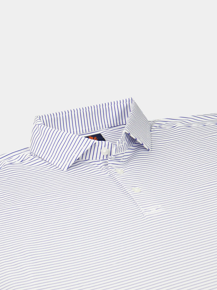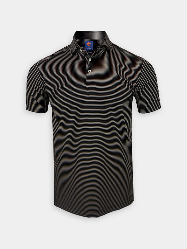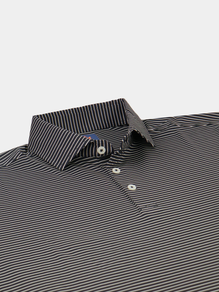 Our Micro Stripe Polo is an ideal option for the office or the course. Constructed from our best-selling technical performance jersey yarn, this garment feels cool to the touch and stays dry as it wicks moisture away from your body. Model features a classic three-button placket and self-collar along with UPF 50 sun protection.