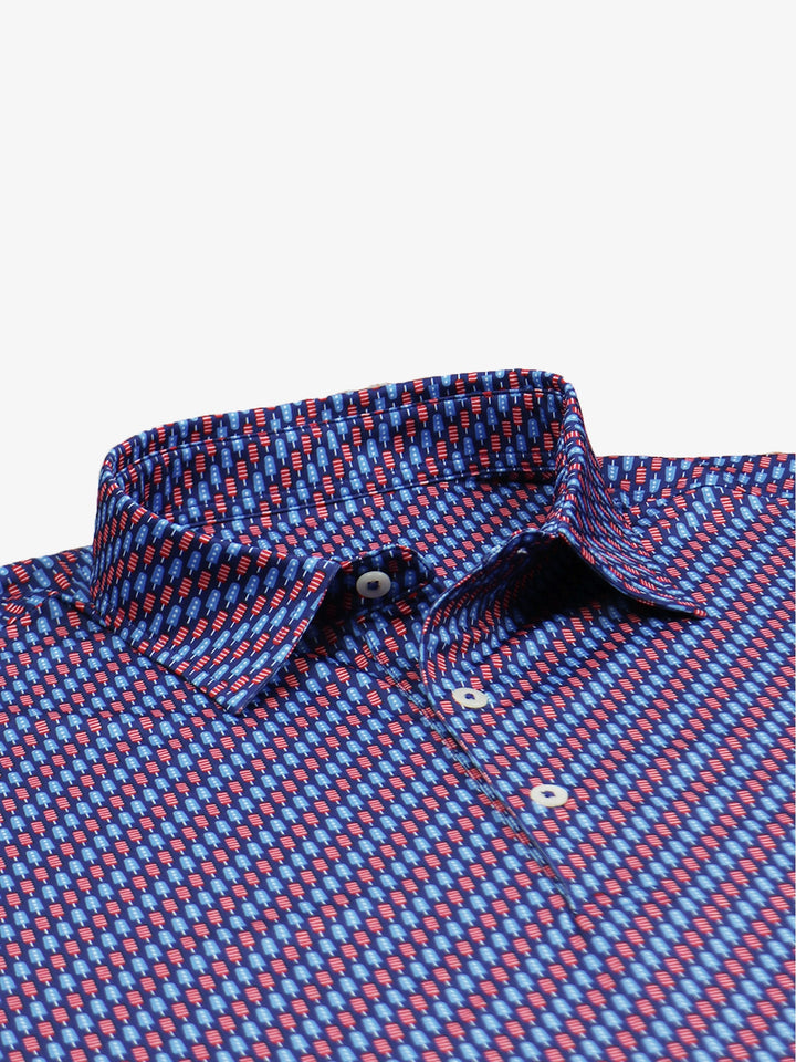 The UPF 50 sun protection fabric is perfect for long days on the green. Features include a three button placket and self collar. Designed for performance, the Men's Patriotic Popsicle Print Polo is a great addition to any golfer's wardrobe and lifestyle.