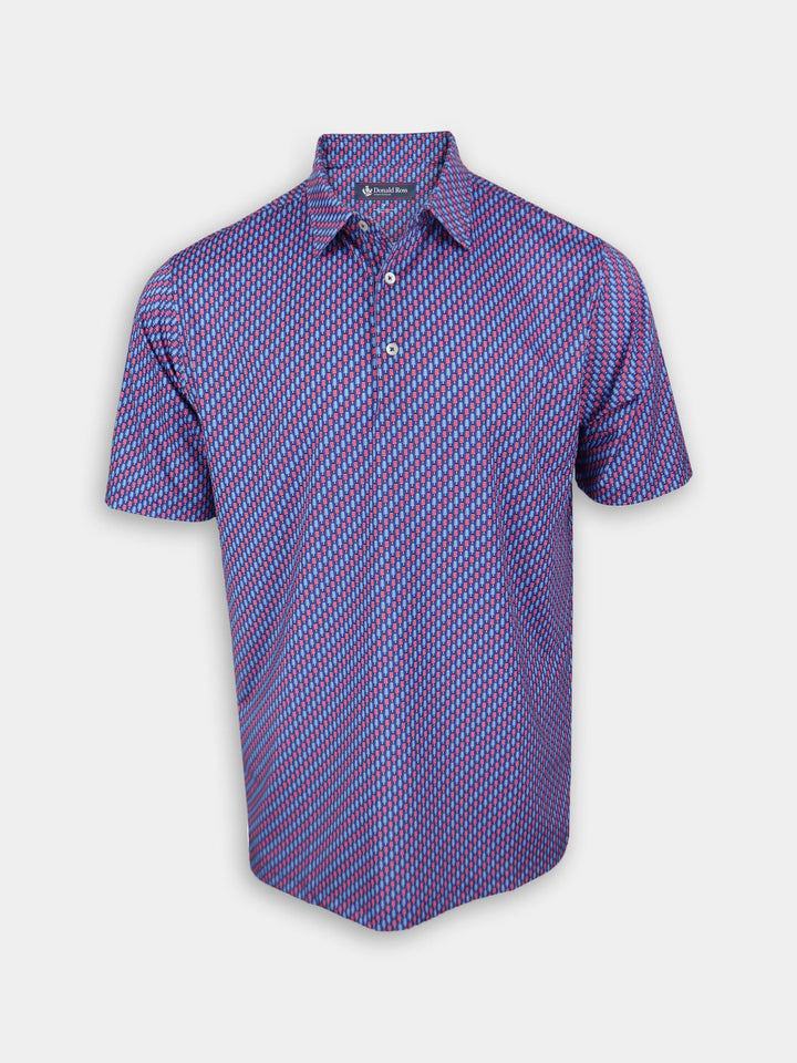 Beat the summer heat in the Men's Patriotic Popsicle Print Polo by Donald Ross Sportswear. Featuring a red, white, and blue popsicle print on a navy ground. Constructed from our performance jersey fabric, this garment also feels cool to the touch and stays dry with moisture-wicking fabric. The Men's Popsicle Print Polo offers full stretch and breathability for overall comfort on and off the course.