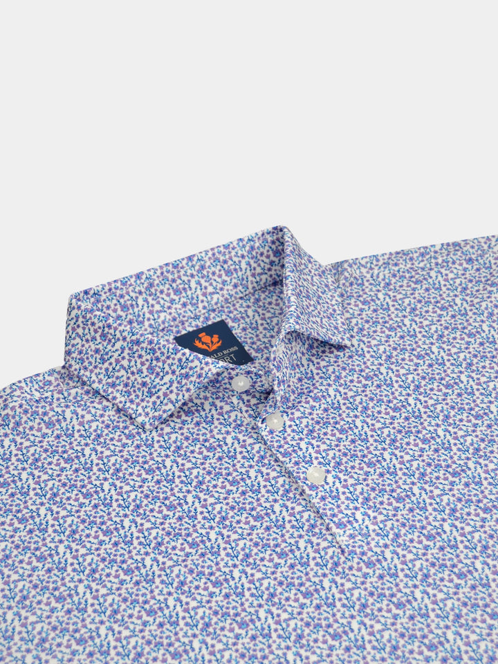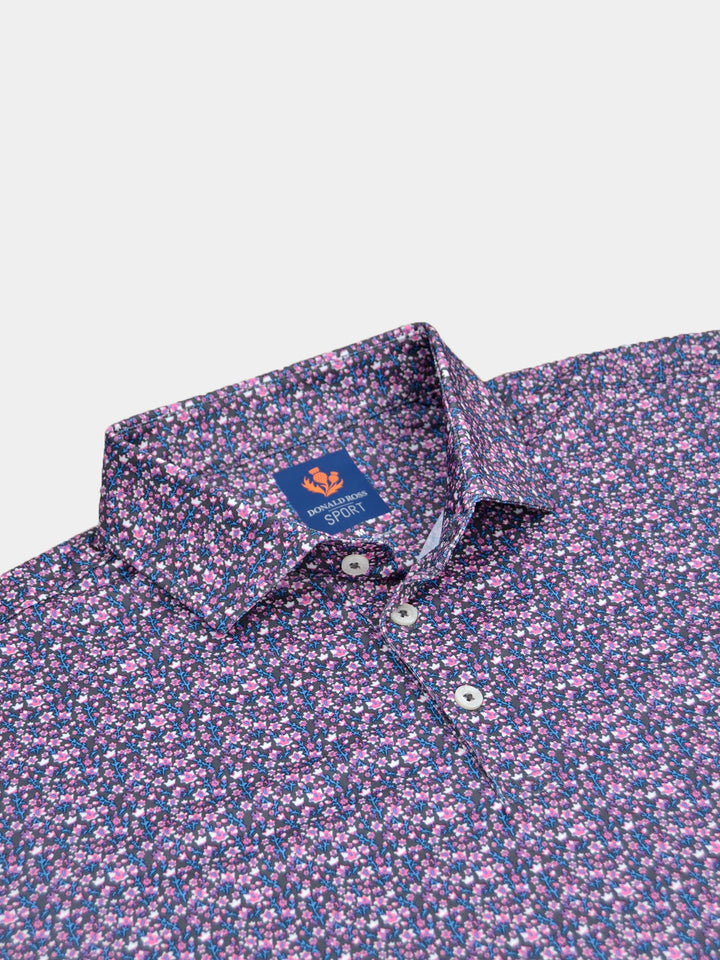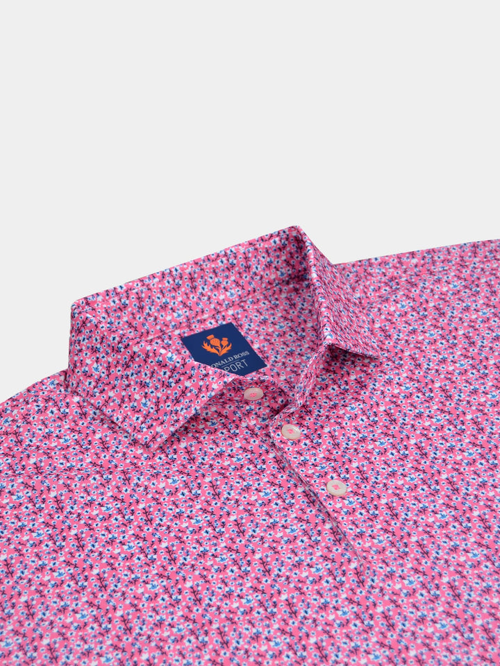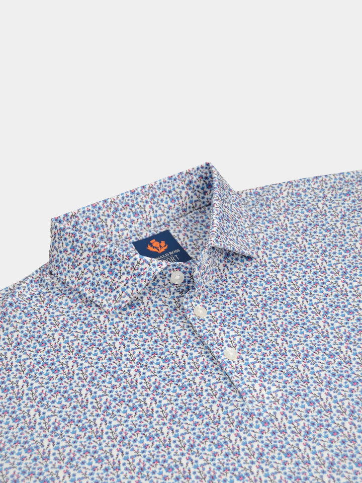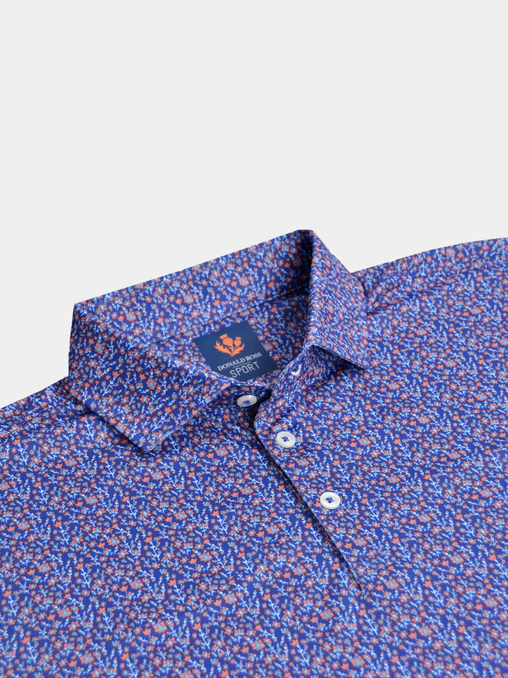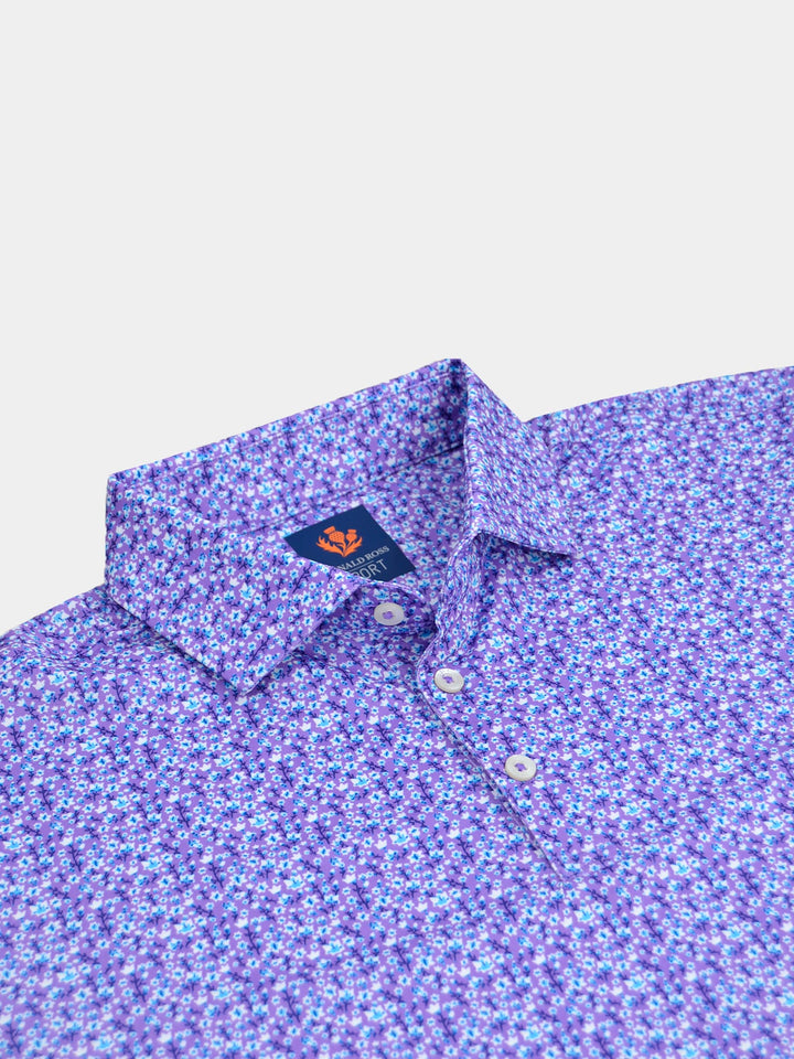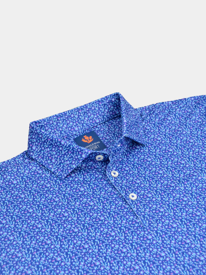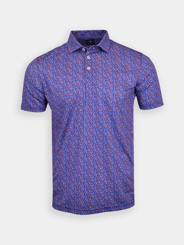 The Logan, Men's Apple Tree Print Polo by Donald Ross Sportswear. A print polo offered in eight flattering color ways that add a subtle pop of color to any outfit. Constructed from our baby pique fabric, this garment feels cool to the touch and stays dry with moisture-wicking fabric. The Logan offers full stretch and breathability for endless comfort on and off the course.