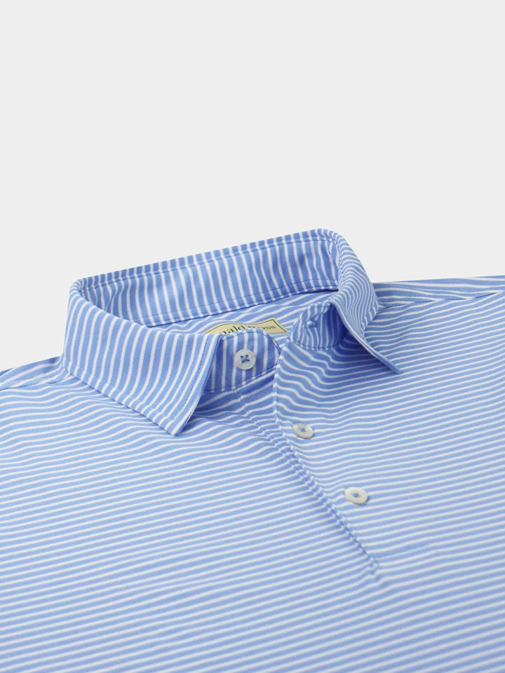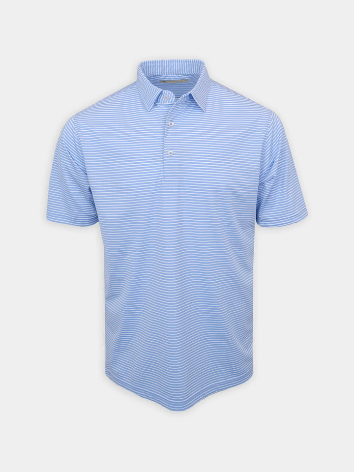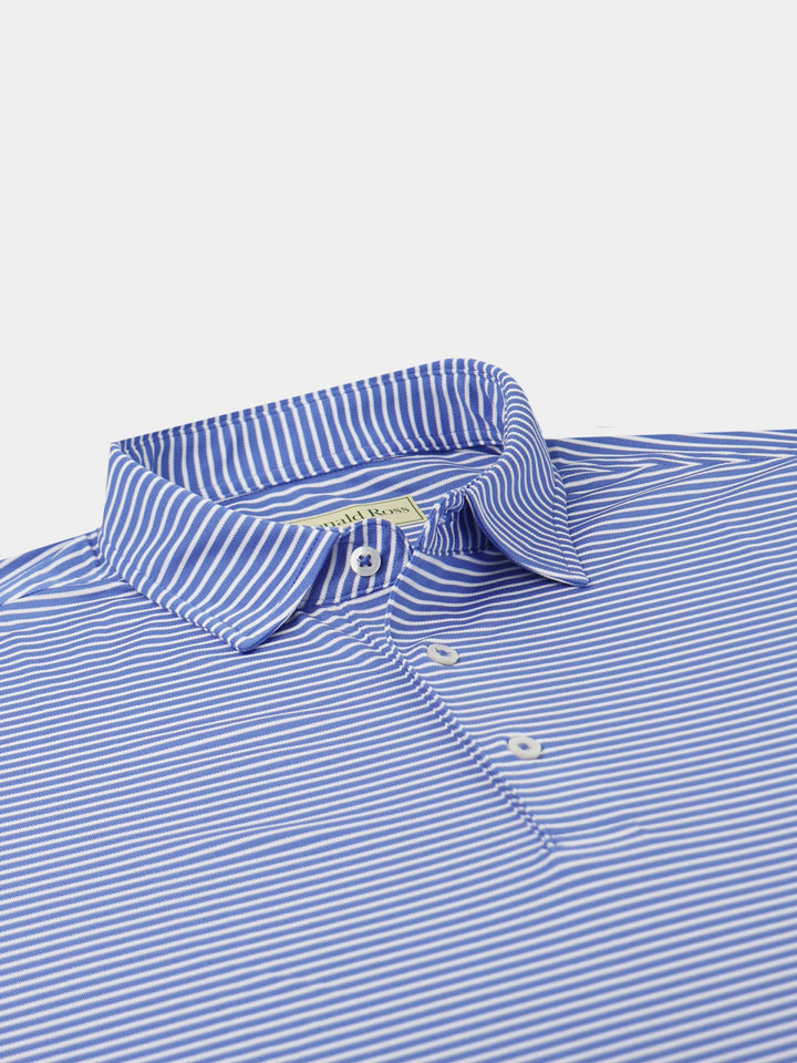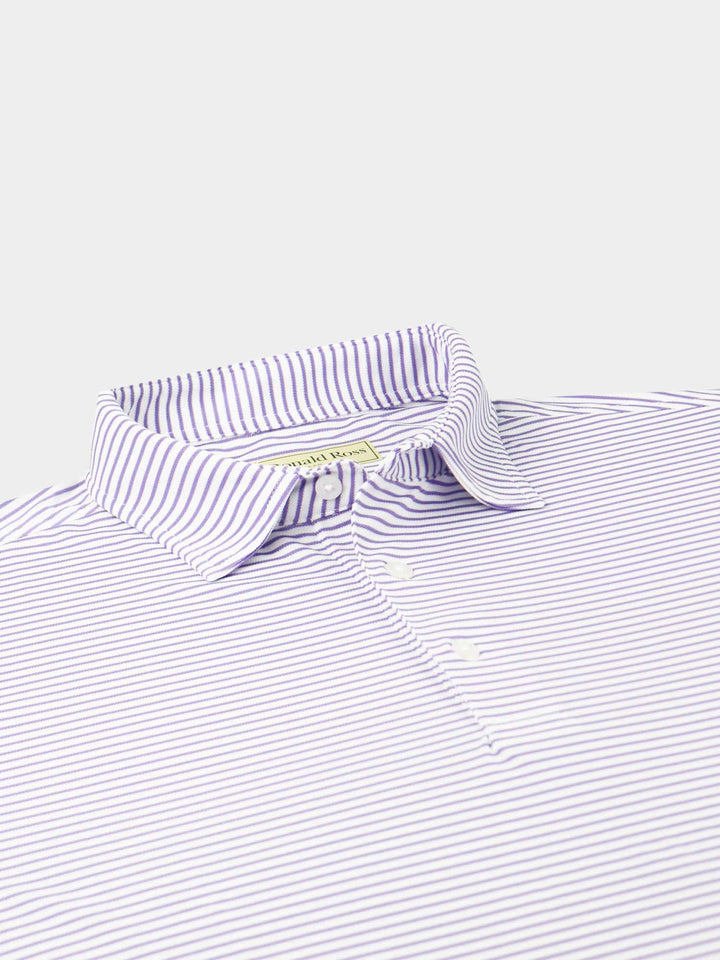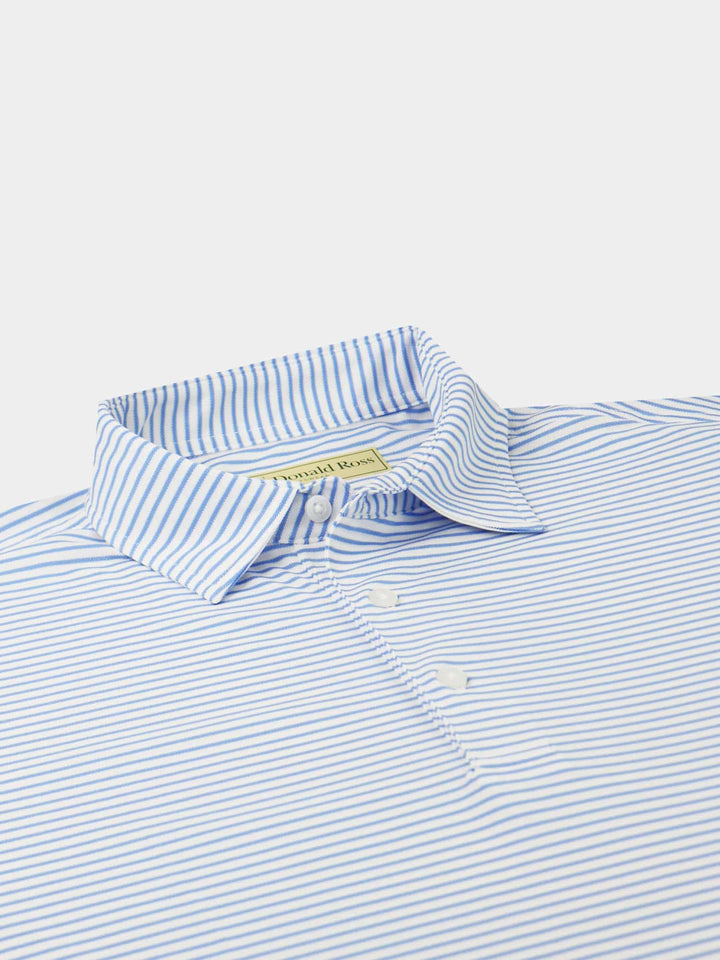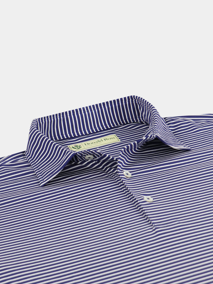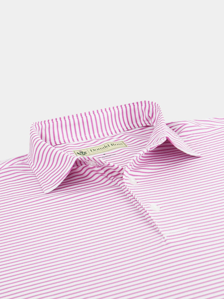 The Men's Chalk Stripe Polo by Donald Ross Sportswear. A eye catching stripe featuring a baby pique with a chalk stripe. Constructed from our best-selling technical performance fabric, this garment feels cool to the touch and wicks moisture away from your body. Offers full-stretch and breathability for endless comfort on and off the course.