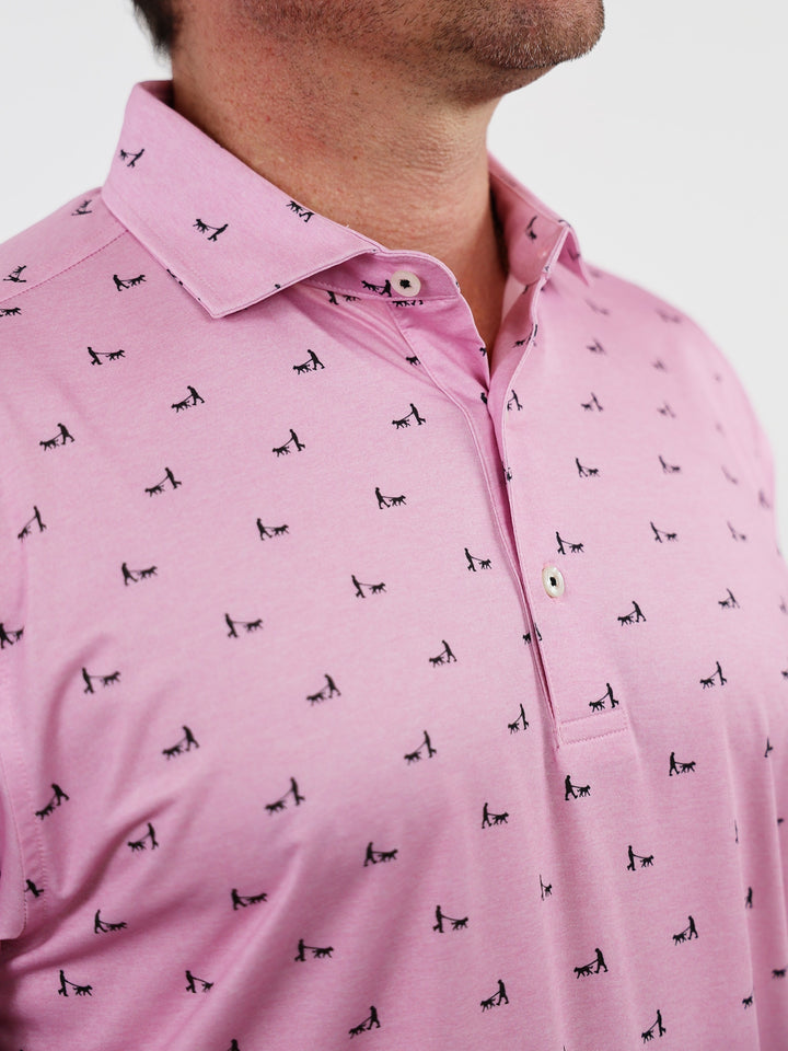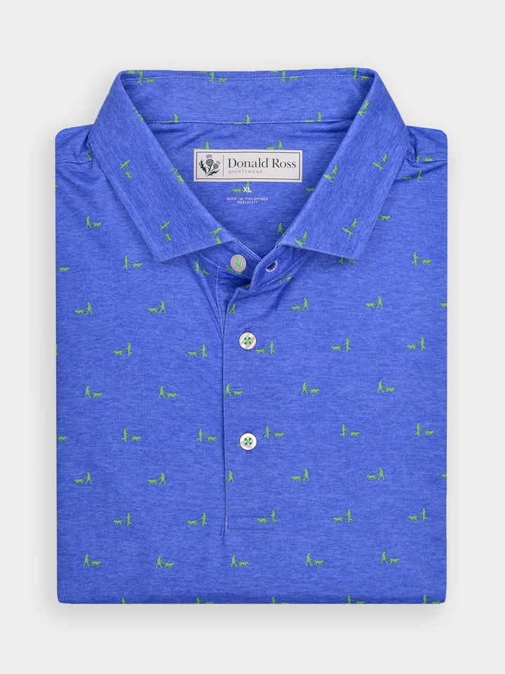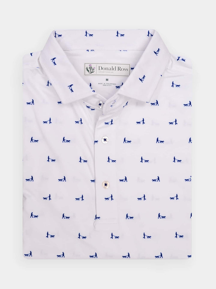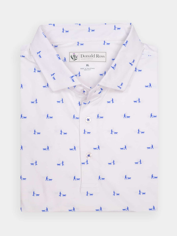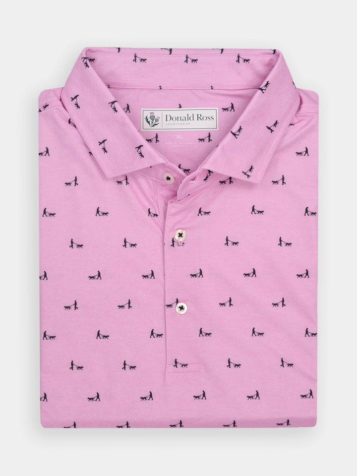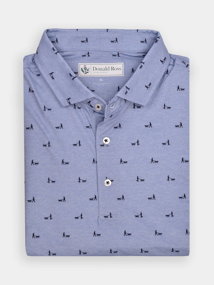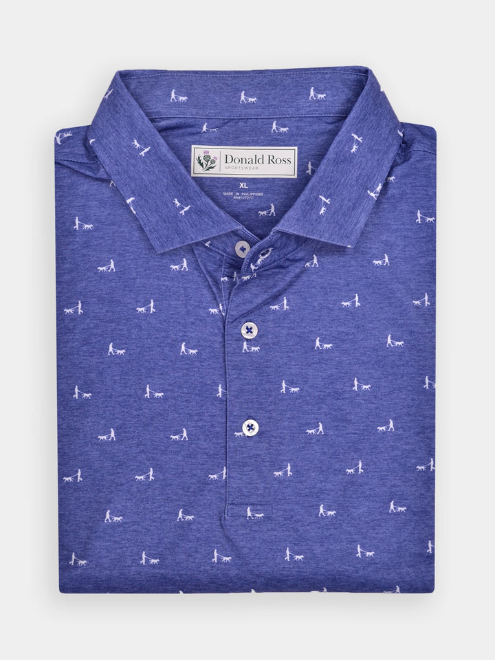 The Chicago Men's Print Polo by Donald Ross Sportswear is a performance golf polo with a dog walker print. Our classic polo is perfect for both the fairway and the clubhouse, and also available in seven different color ways.