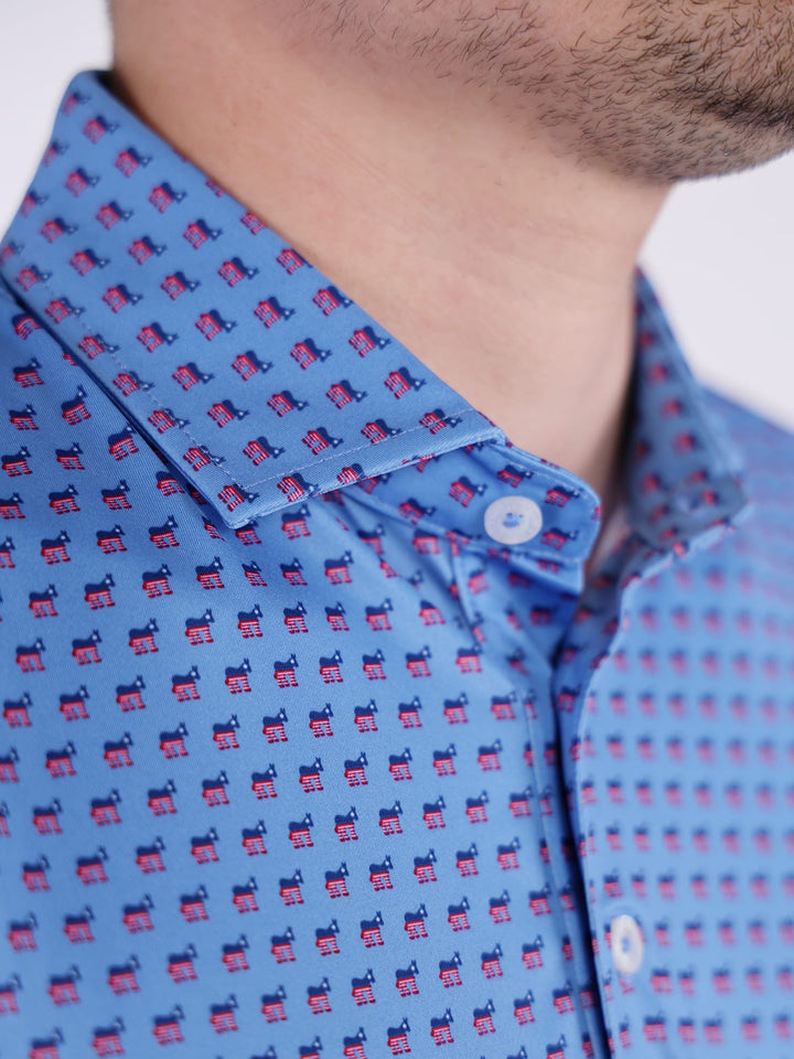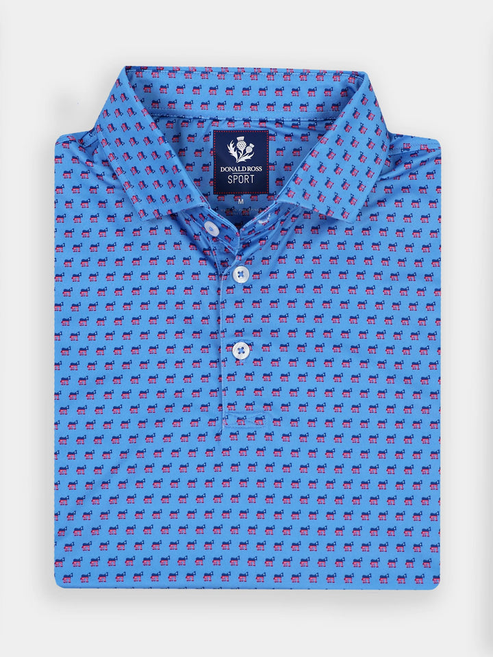 The Aaron, Men's Donkey Performance Polo by Donald Ross Sportswear. Featuring the signature Democratic Party donkey symbol in our performance jersey fabric. This garment feels cool to the touch and also keeps dry with moisture-wicking fabric. Performance shirts offers full stretch and breathability for any off course activities.