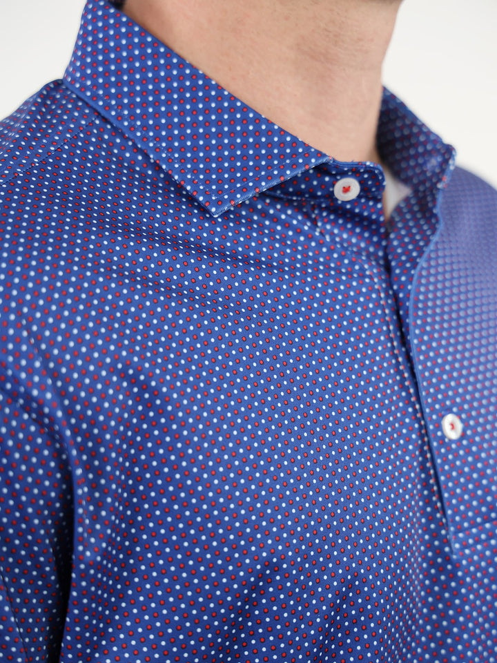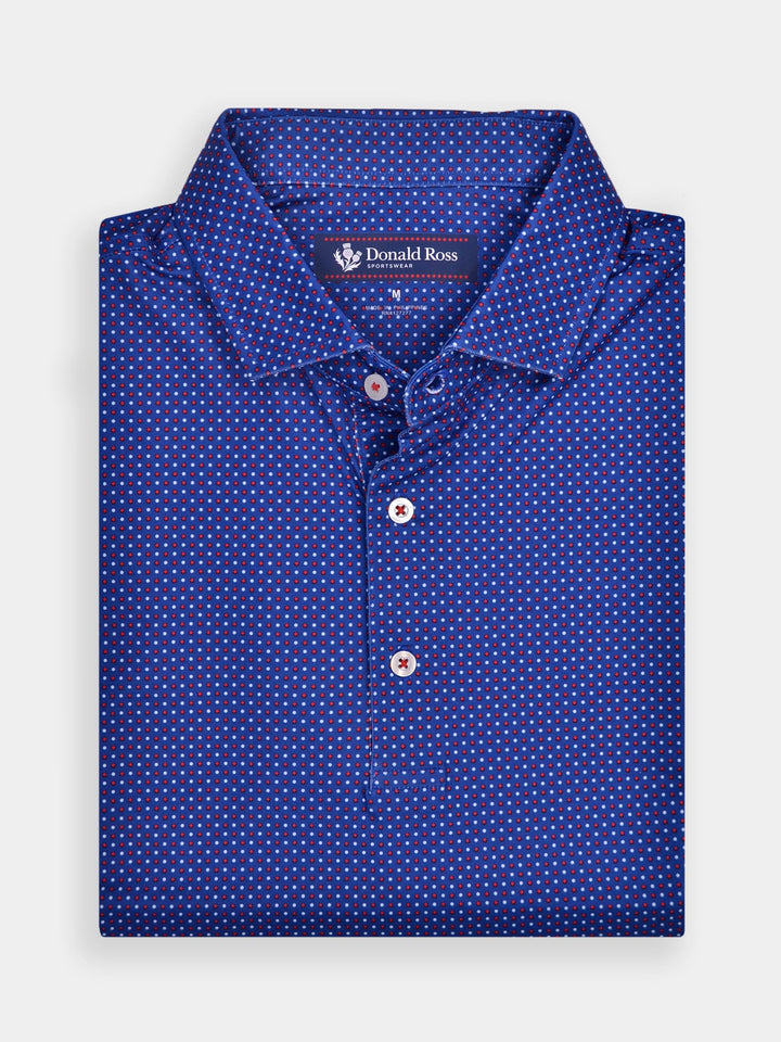 The Omaha, Men's Dot Print Polo by Donald Ross Sportswear. The Omaha features a polka-dot print polo offered in red, white, and blue colorway. Constructed from our performance jersey fabric, this garment also feels cool to the touch and stays dry with moisture-wicking fabric. The Omaha offers full stretch and breathability for overall comfort on and off the course.