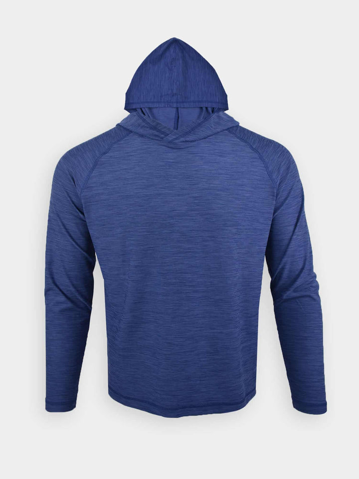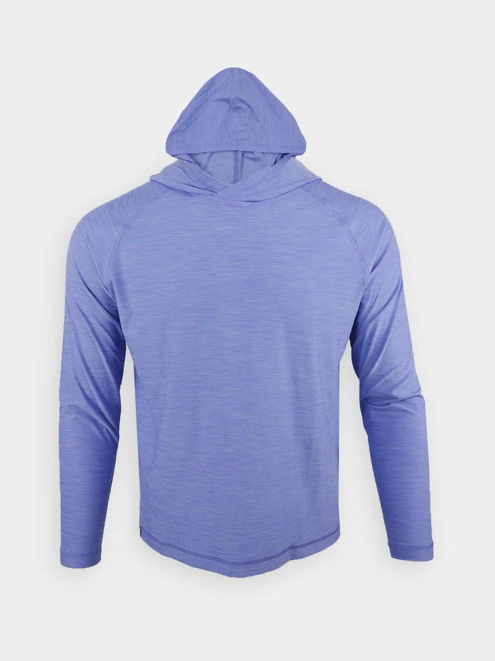 The Men's Golf Hoodie Pullover by Donald Ross. The Virgil golf hoodie combines a modern performance fabric and model. The hoodie delivers excellent moisture wicking and quick dry properties for unbridled versatility for on and off course style. In 3 core colors of Navy, Glacier and Periwinkle, the Virgil is a wardrobe spring staple.