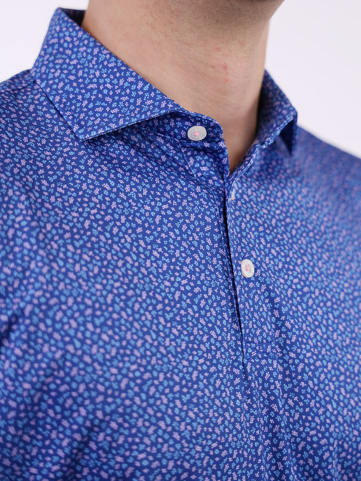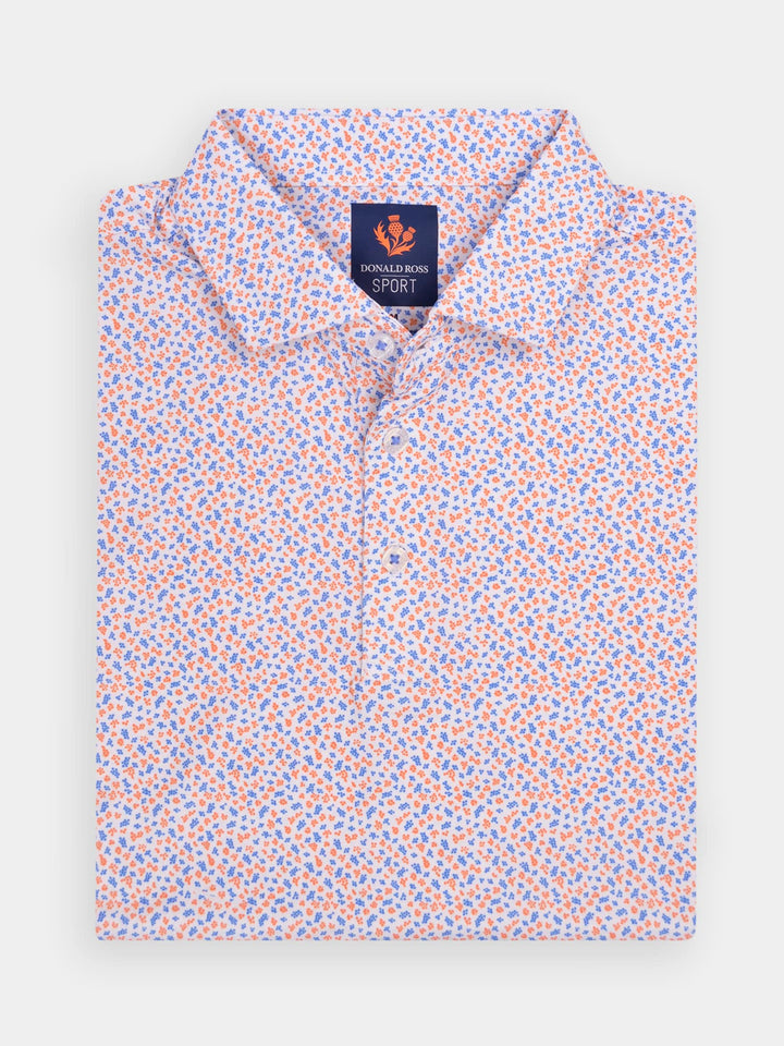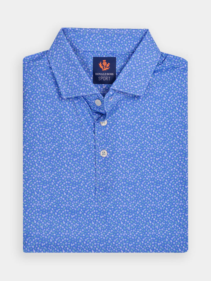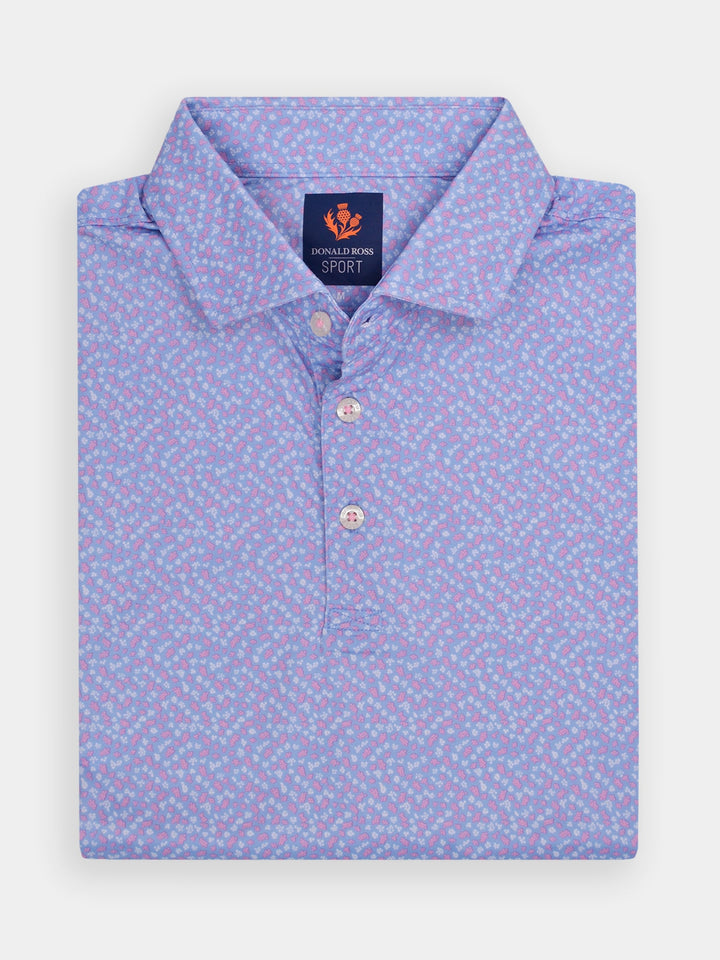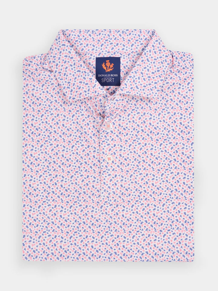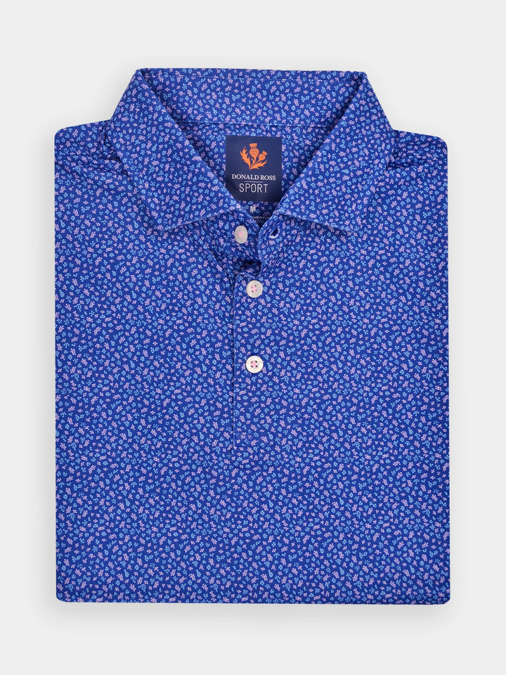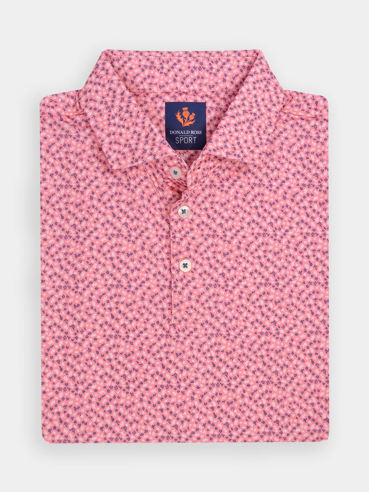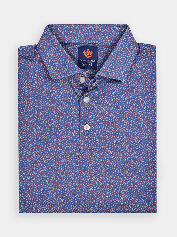 The Alvin, Men's Mixed Berries Print Polo by Donald Ross Sportswear. The Alvin features a Mixed Berries print polo offered in nine unique color ways. Constructed from our performance jersey fabric, this garment also feels cool to the touch and stays dry with moisture-wicking fabric. The Alvin offers full stretch and breathability for overall comfort on and off the course.