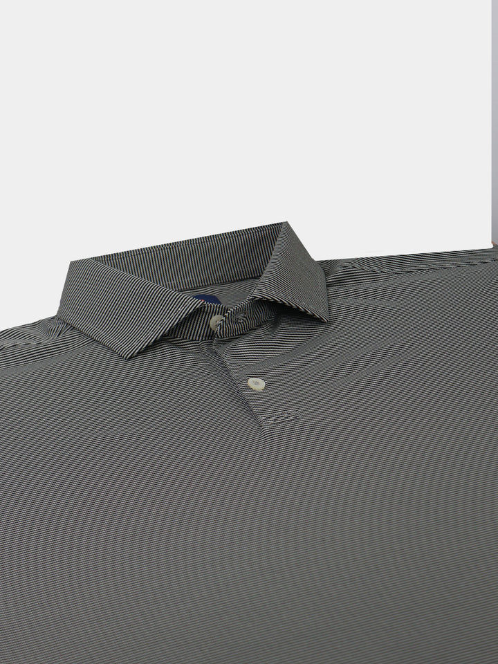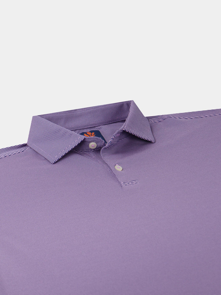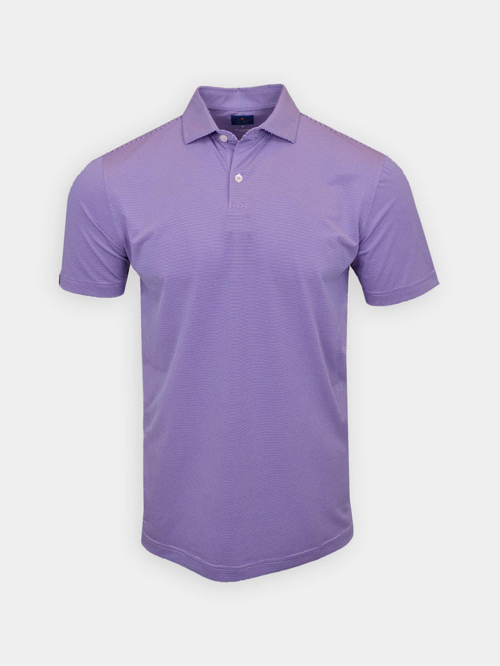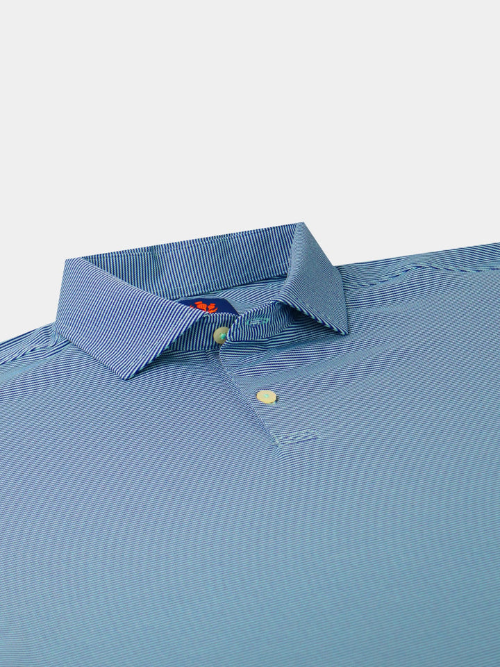 The Hugh, Men's Pin Stripe Polo by Donald Ross Sportswear. A timeless polo offered in six flattering color ways that add a subtle pop of color to any outfit. Constructed from our best-selling technical performance baby pique, this garment feels cool to the touch and stays dry with moisture wicking fabric. The Men's Pin Stripe Polo offers full stretch and breathability for endless comfort on and off the course.