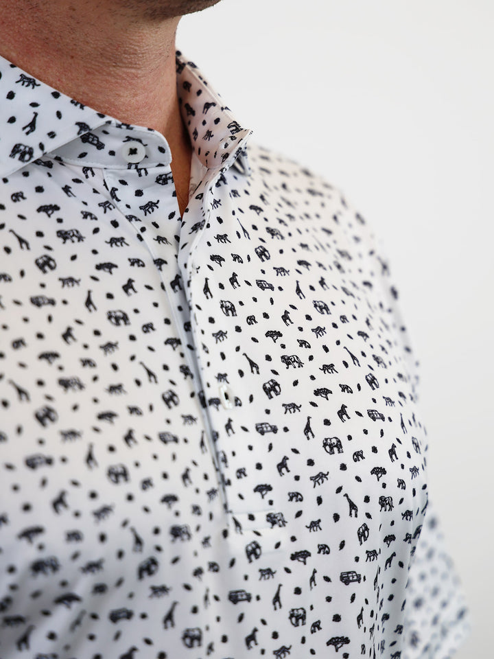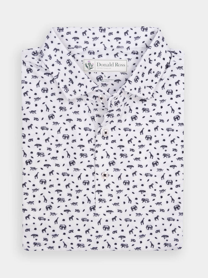 The Athens Men's Safari Print Polo by Donald Ross Sportswear is a performance golf polo with a wild print. Our classic polo is perfect for both the fairway and the clubhouse, and also available in three different color ways.