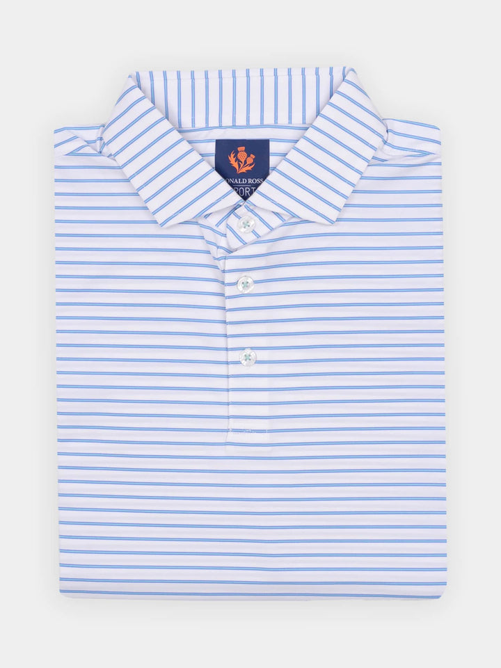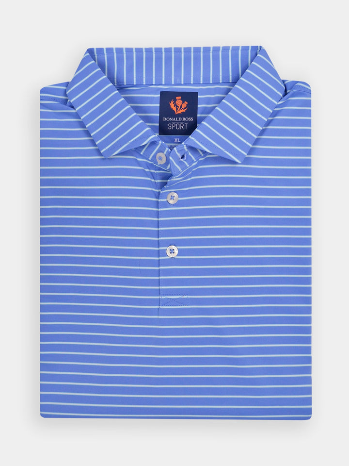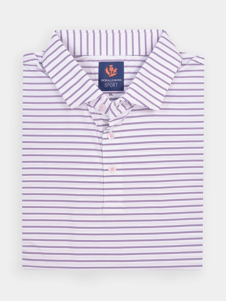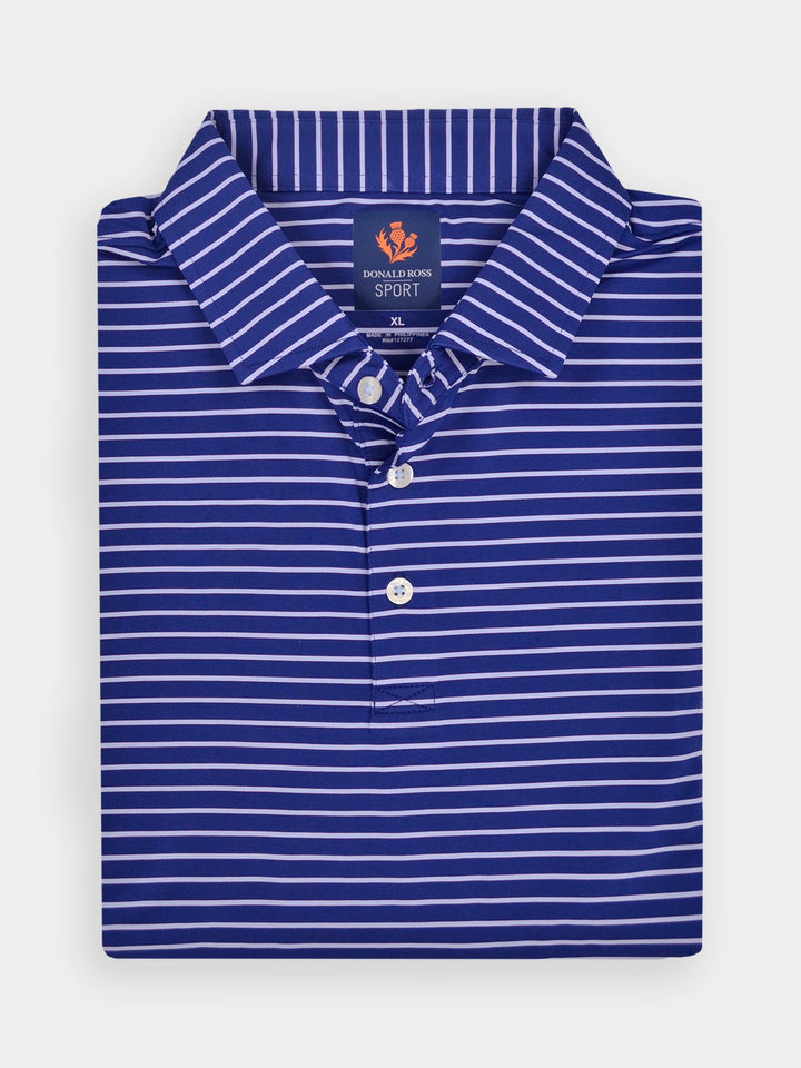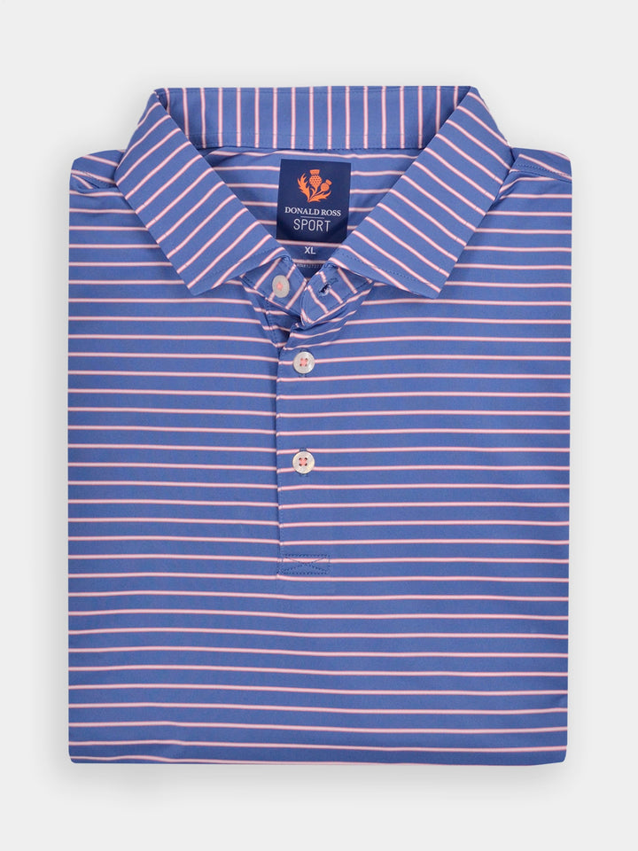 The Ruben, Men's Shadow Stripe Polo by Donald Ross Sportswear. The Ruben features a stylish three-color shadow stripe polo offered in five color ways. Constructed from our performance jersey fabric, this garment feels cool to the touch and remains dry with moisture-wicking fabric. The Ruben offers full stretch and breathability for overall comfort on and off the course.