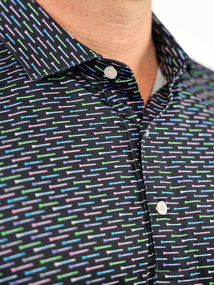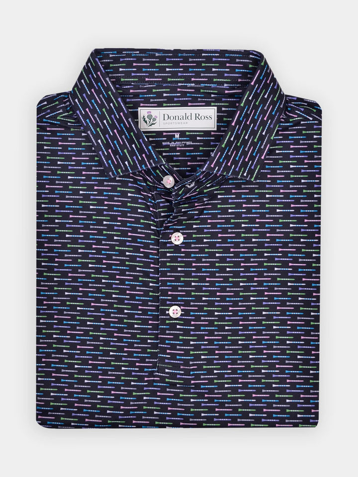 The Charlotte Men's Striped Tees Print Polo by Donald Ross Sportswear is a performance golf polo featuring colorful tees. Our classic polo is perfect for both the fairway and the clubhouse, and is also available in three different colorways.