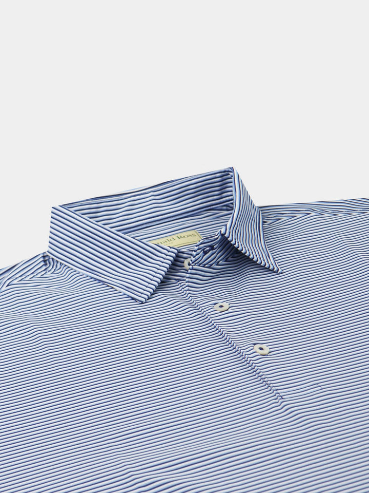 The UPF 50 sun protection fabric is perfect for long days on the green. Features include a three button placket and self collar with horizontal stripes. Designed for performance, The Three Color Stripe Polo is a great addition to any golfer's wardrobe and lifestyle.