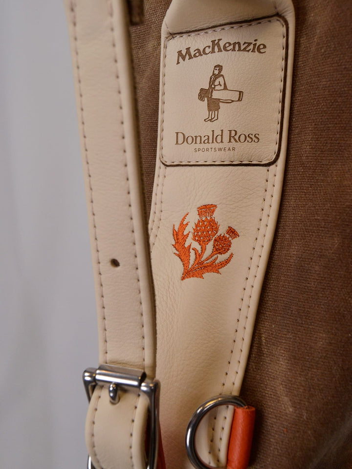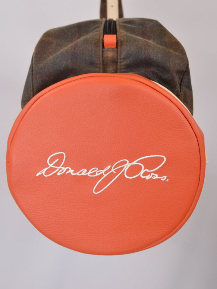 Embroidered on the pocket is Donald Ross' personal clubmaker cleek mark and his original signature on the bottom of the bag. Our brand's signature thistle logo is embroidered between the pocket and handle. Inside the front pocket also sports our brand slogan, "Defending Par Since 1872.