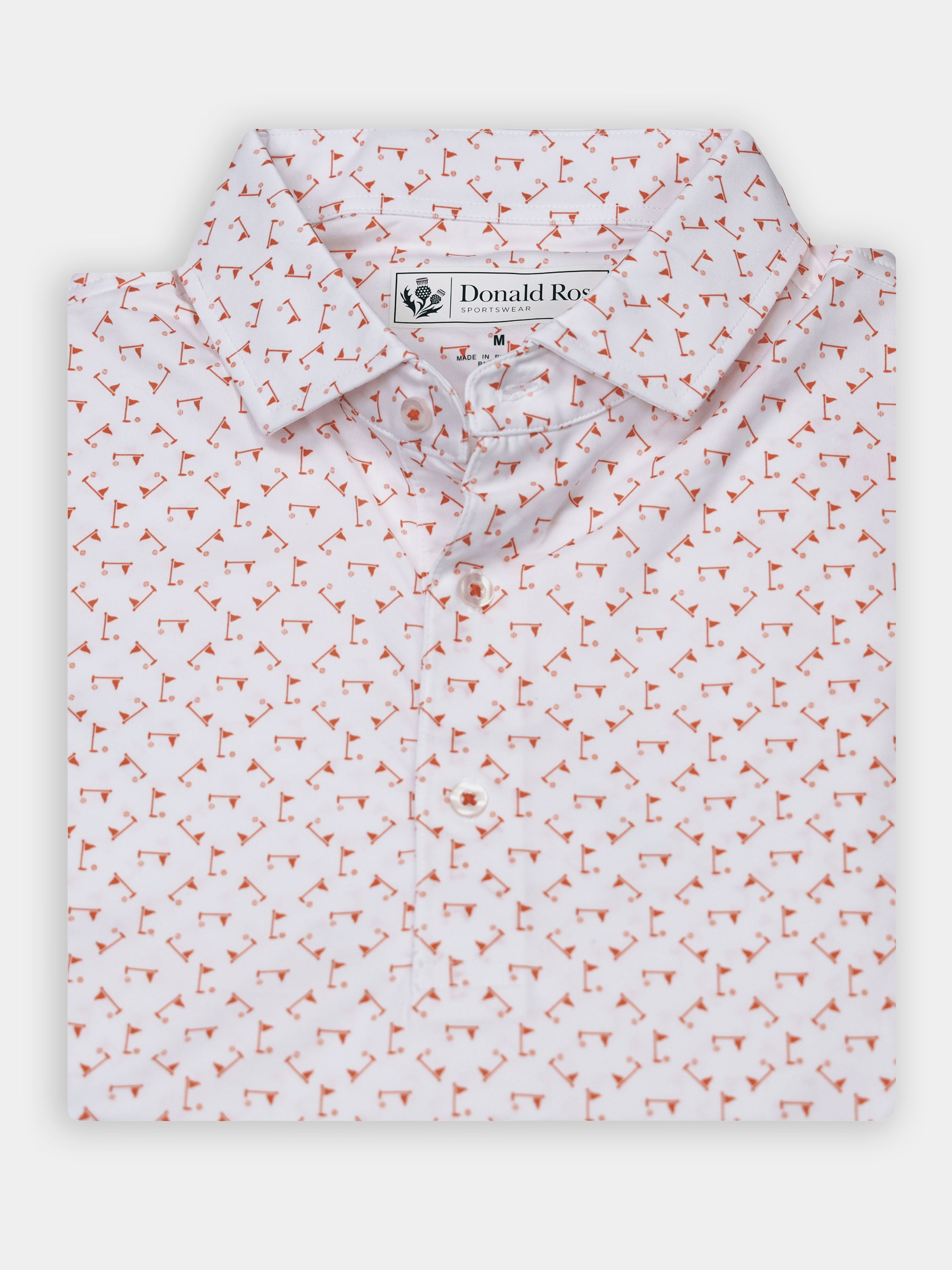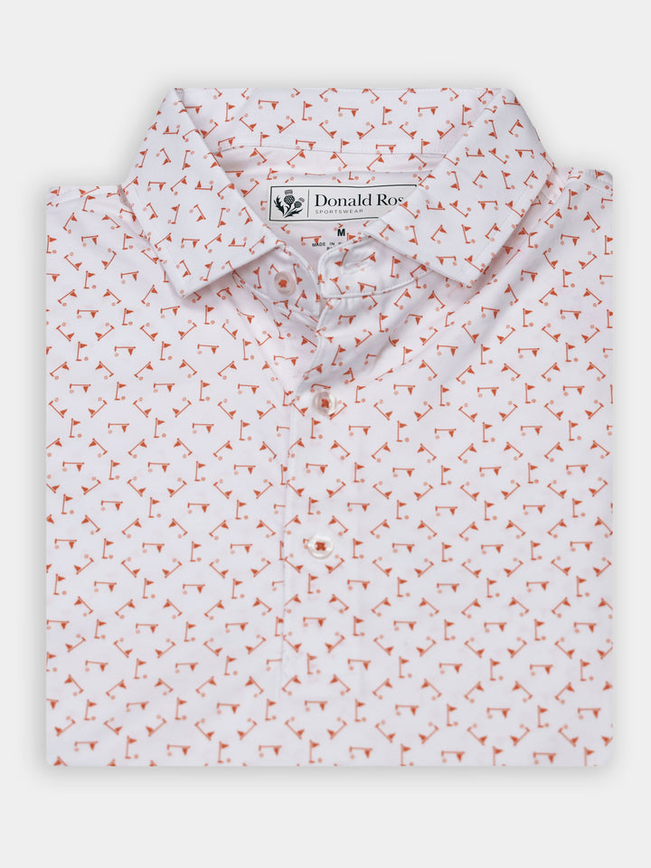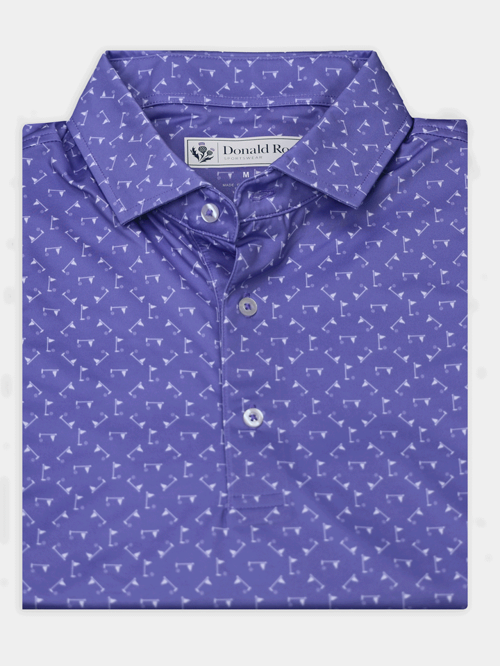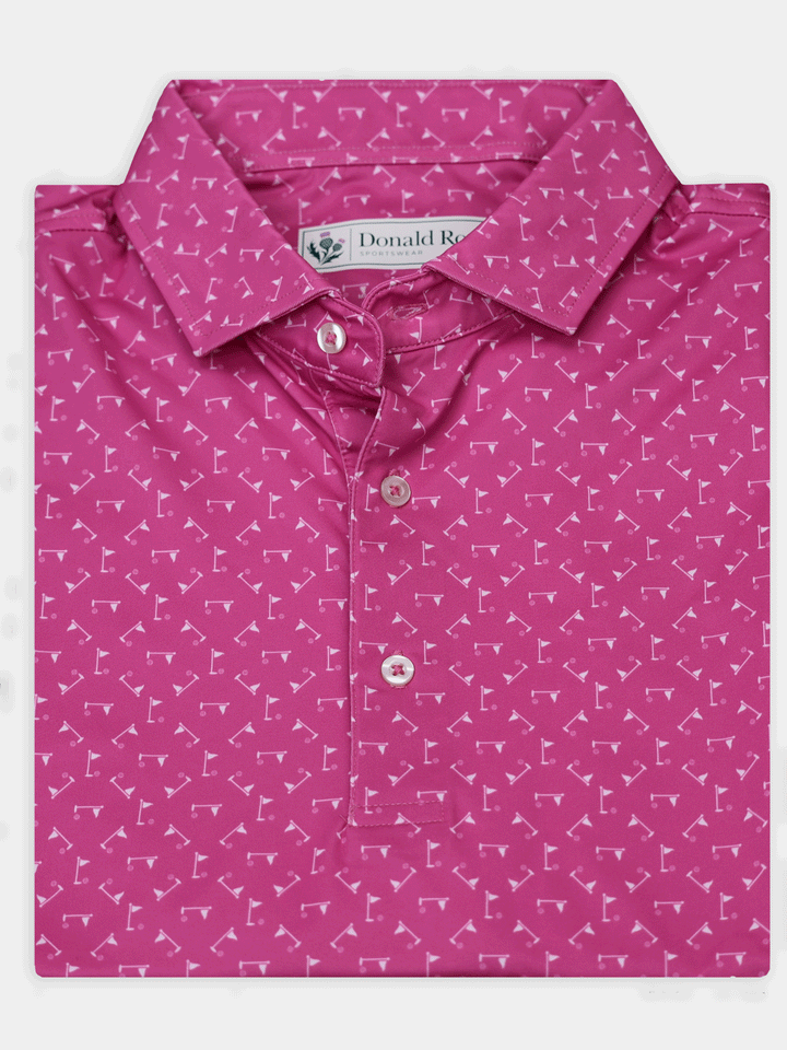 Stay cool, sharp, and course-ready with the Donald Ross Jonah Performance Jersey Golf Polo. Engineered for performance and elevated style, this men’s golf polo features a ball and flag print design and is crafted from a premium 91% polyester / 9% spandex blend for lightweight comfort and durability.