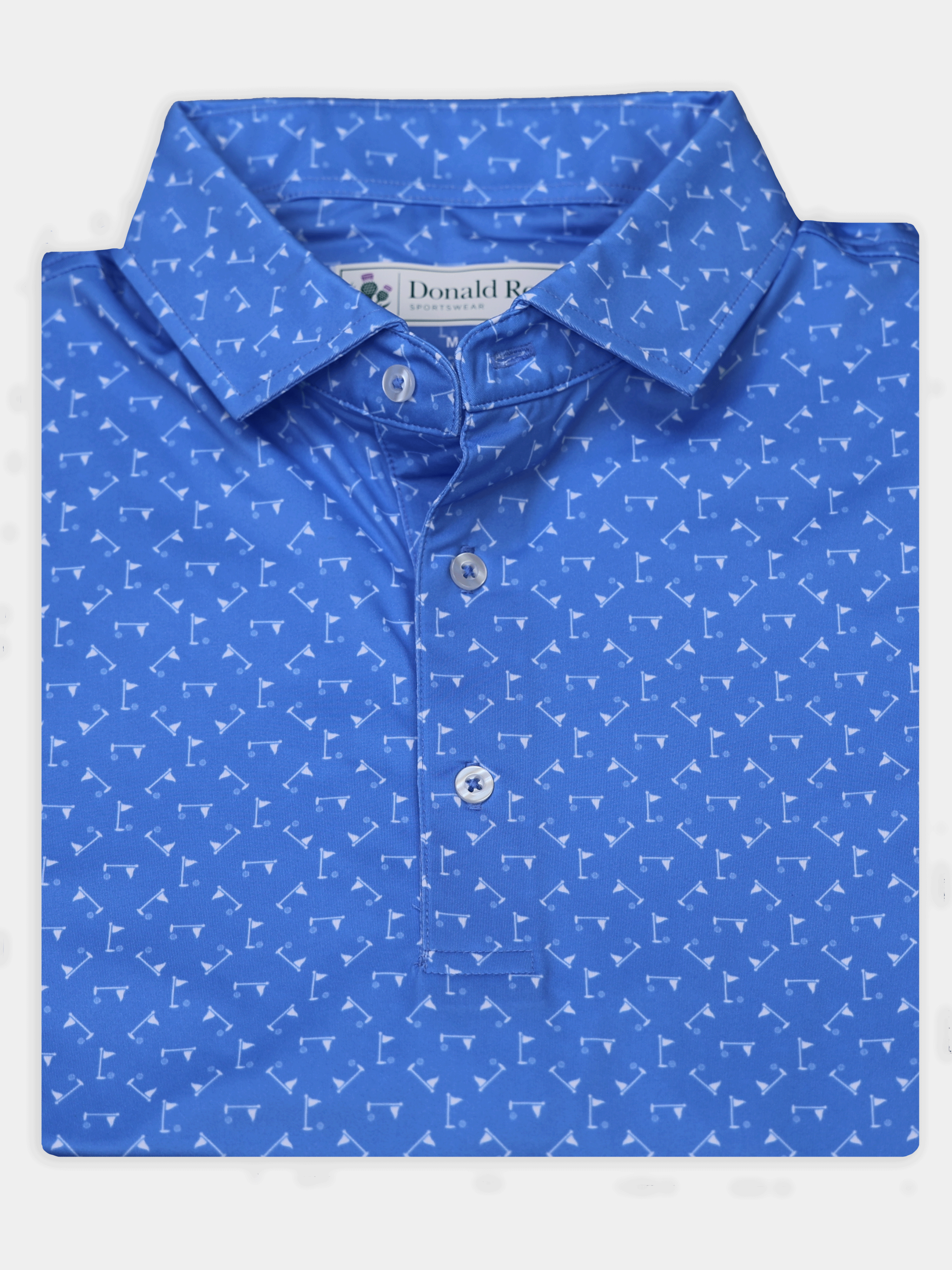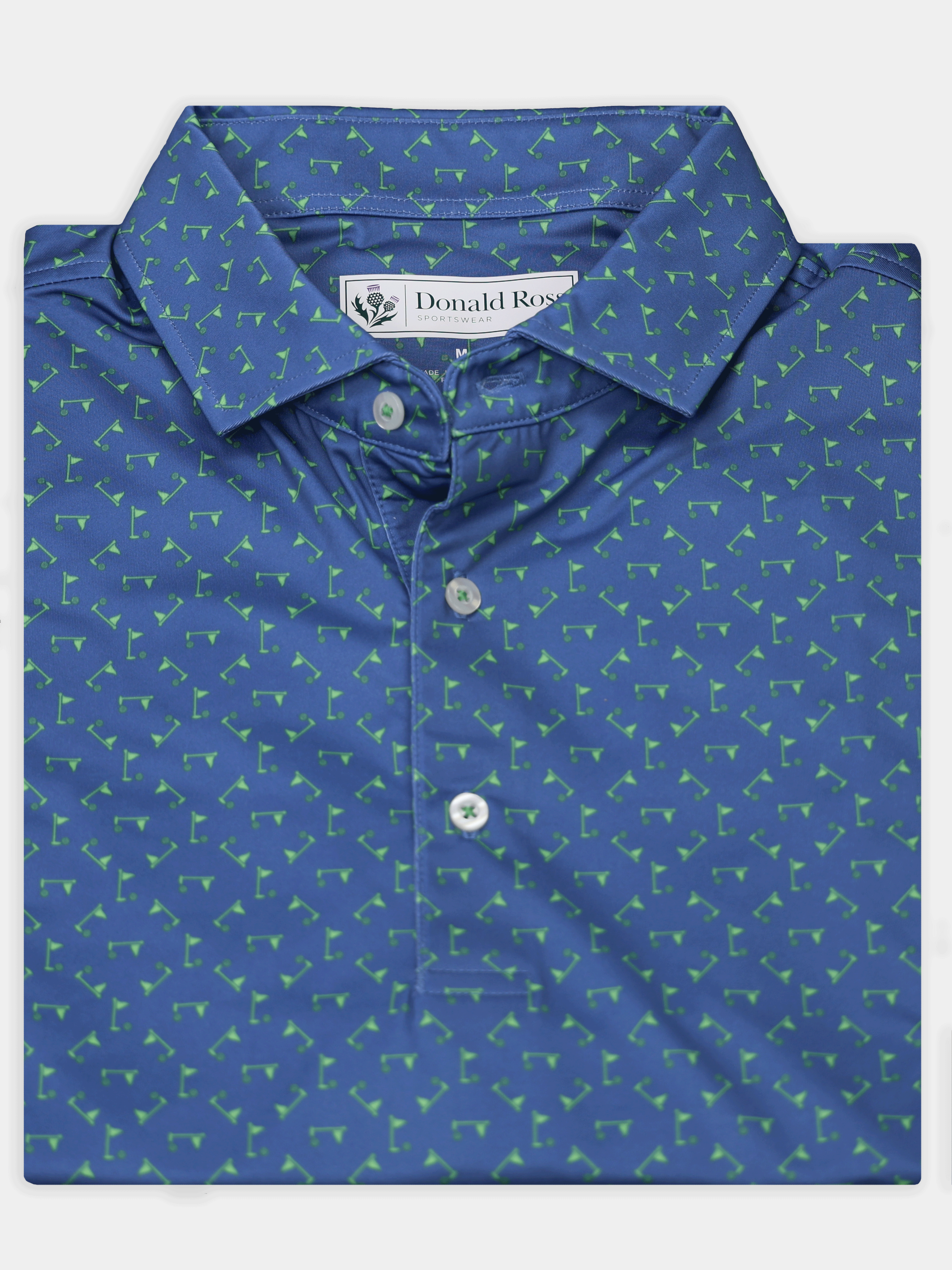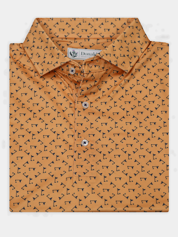 Stay cool, sharp, and course-ready with the Donald Ross Jonah Performance Jersey Golf Polo. Engineered for performance and elevated style, this men’s golf polo features a ball and flag print design and is crafted from a premium 91% polyester / 9% spandex blend for lightweight comfort and durability.
