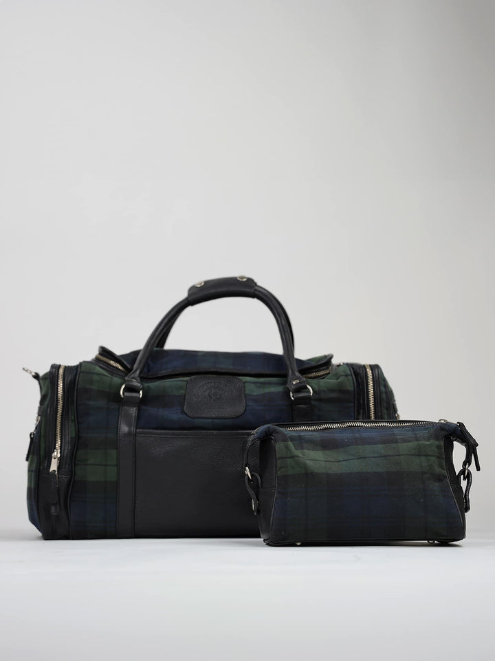 Travel in style with Donald Ross' limited edition Black Watch Duffel Bag- the perfect travel companion for any adventure. This bag features a Black Watch plaid pattern with black leather accents. Constructed from a Black Watch waxed canvas exterior and genuine leather accents, this duffel boasts durability.