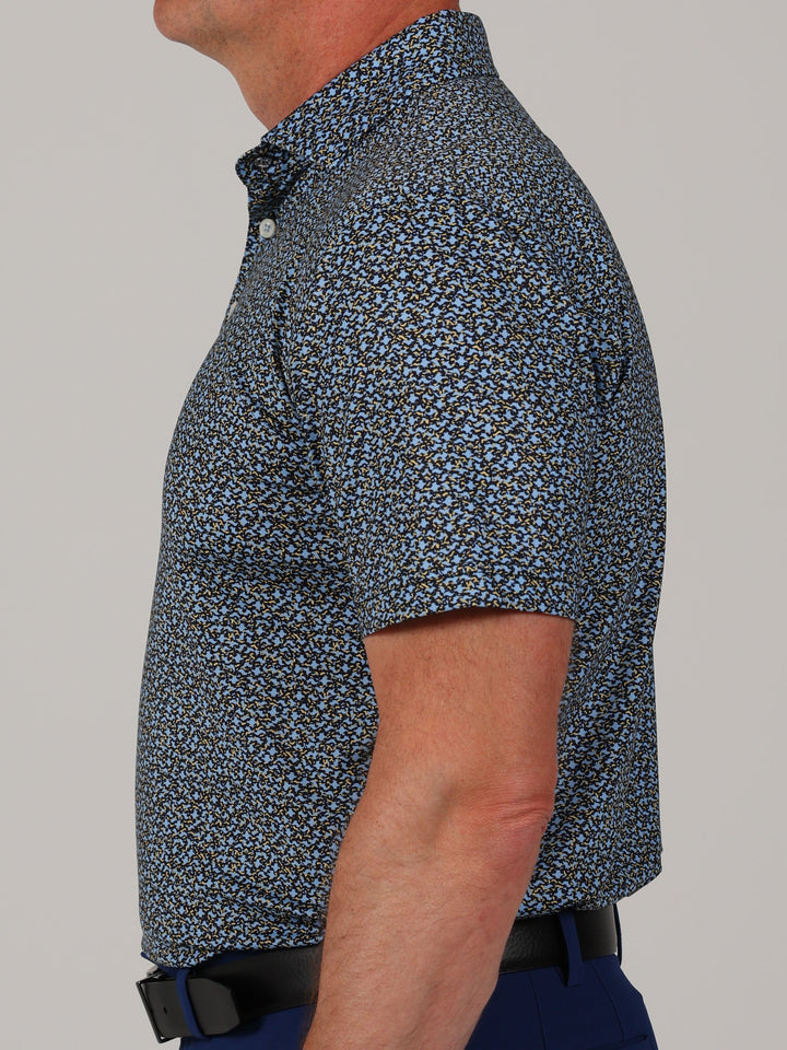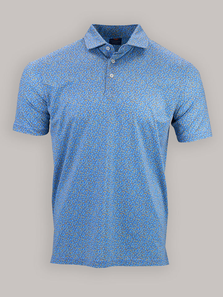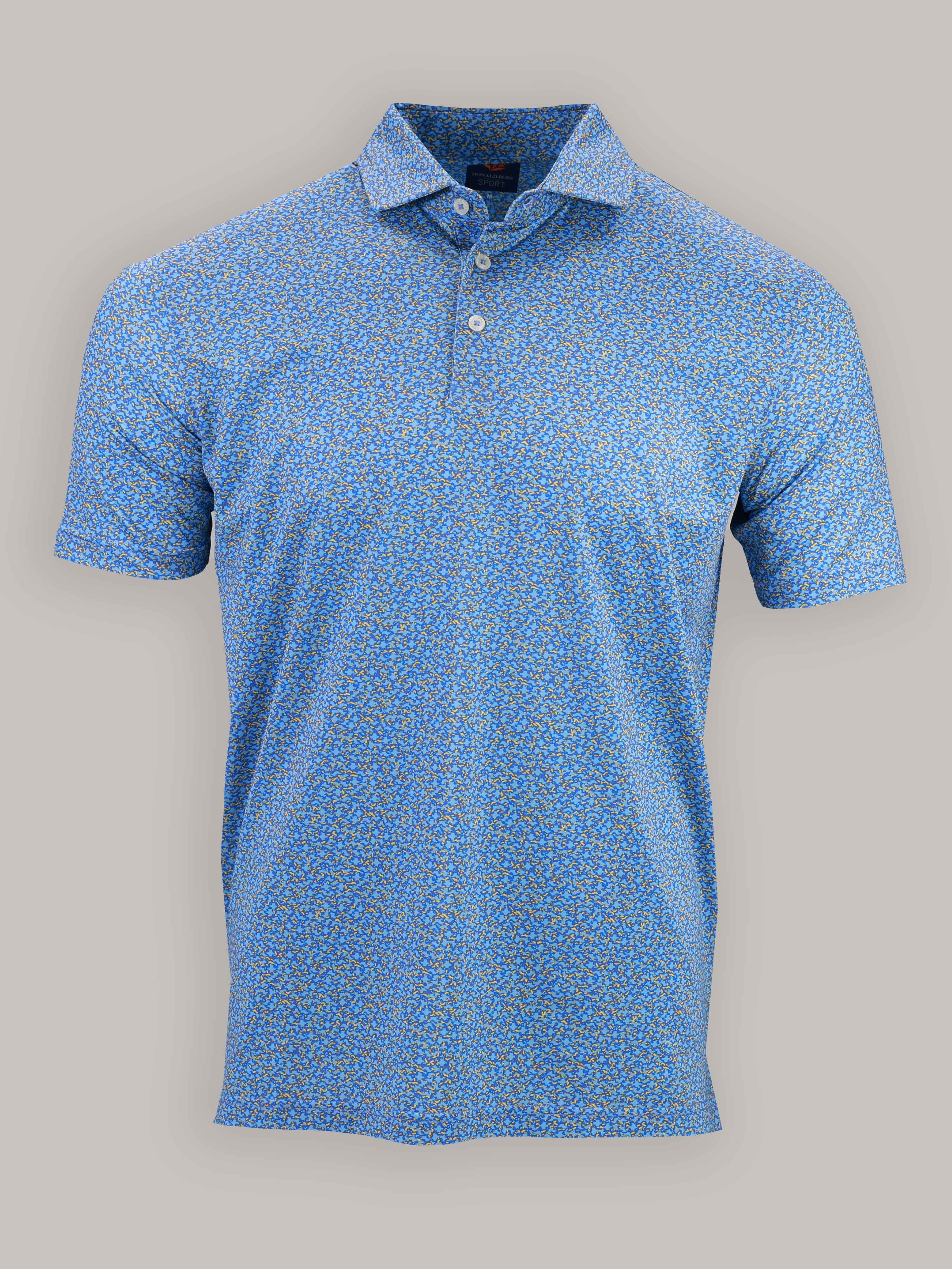 Description : Stay cool, sharp, and course-ready with the Bryce Performance Jersey Golf Polo. Engineered for performance and elevated style, this men’s golf polo features a camouflage print and is crafted from a premium 91% polyester / 9% spandex blend for lightweight comfort and durability. Built with four-way stretch fabric, this polo moves with you—whether you're swinging on the course or heading into the clubhouse. The performance jersey knit offers exceptional breathability, moisture management, and a smooth hand feel, while UPF 50 sun protection keeps you shielded during long days outdoors. Designed with a classic three-button placket and a sophisticated spread collar, this polo brings a polished yet sporty look to your golf wardrobe. Backed by lifelong satisfaction, it's a piece you'll reach for round after round.