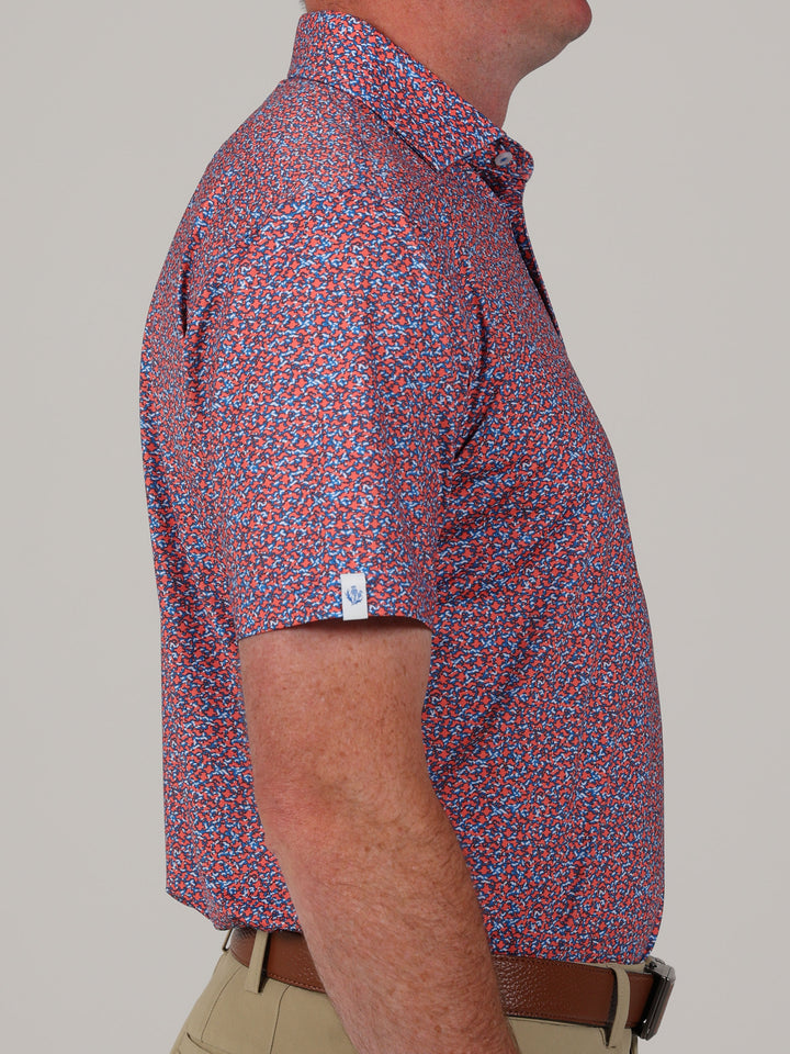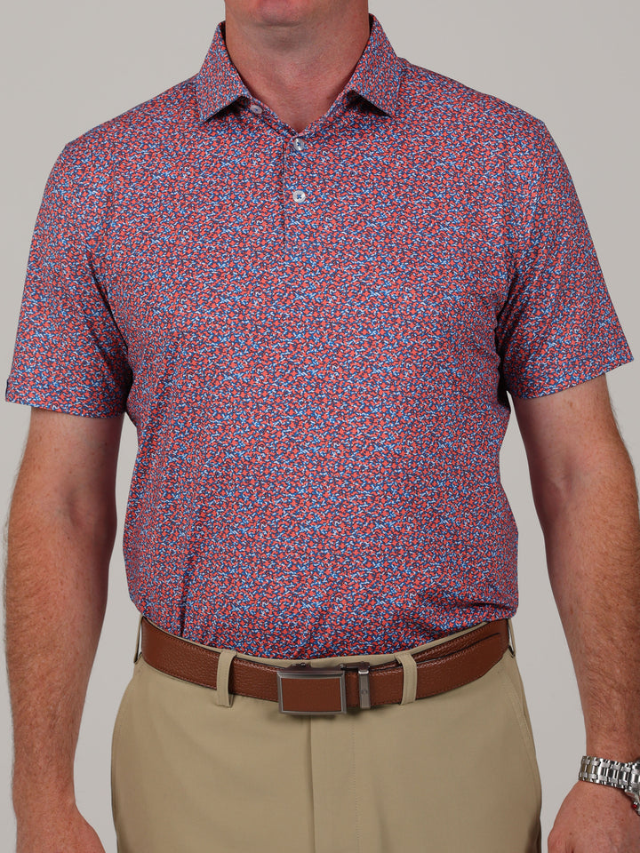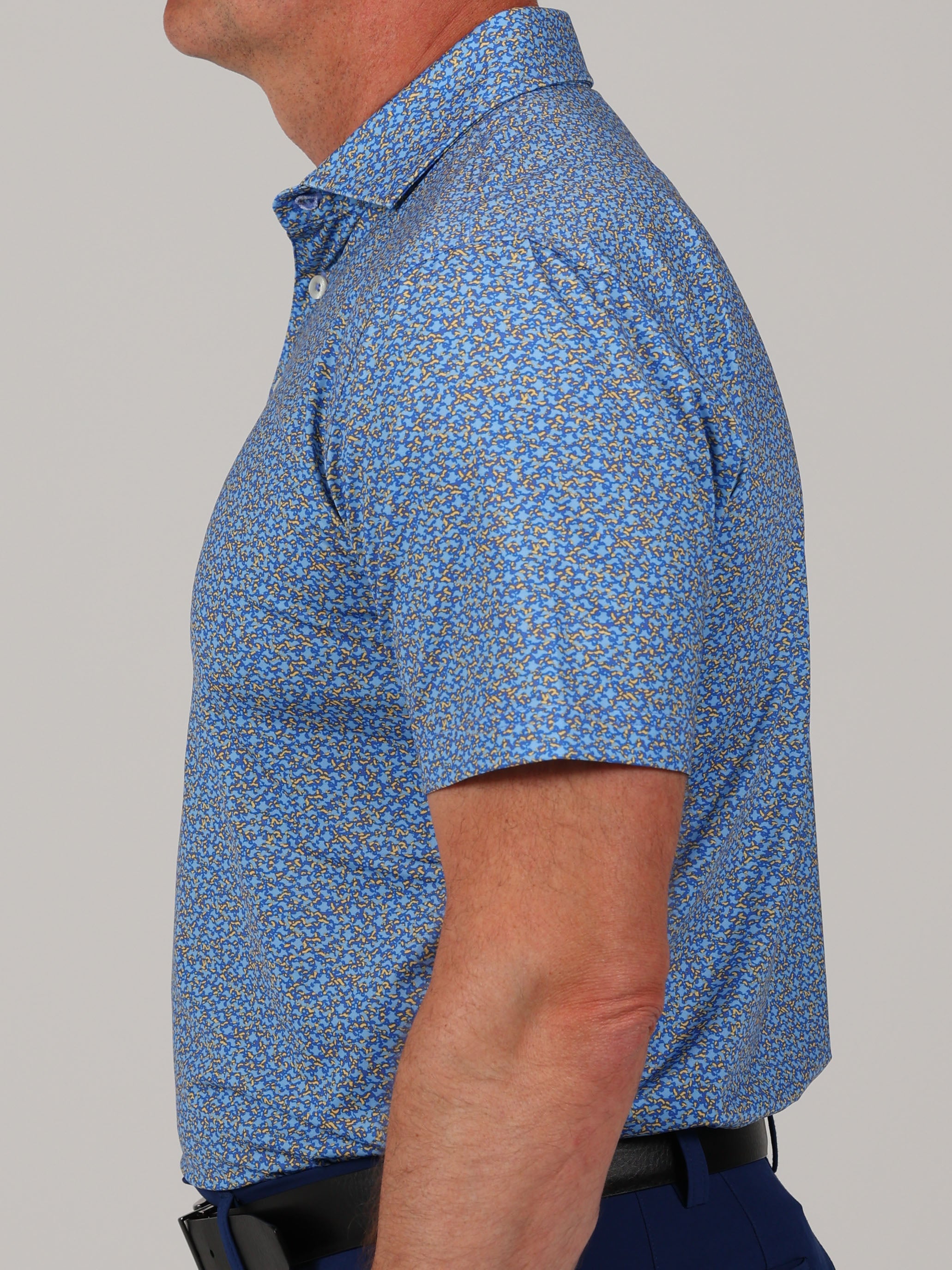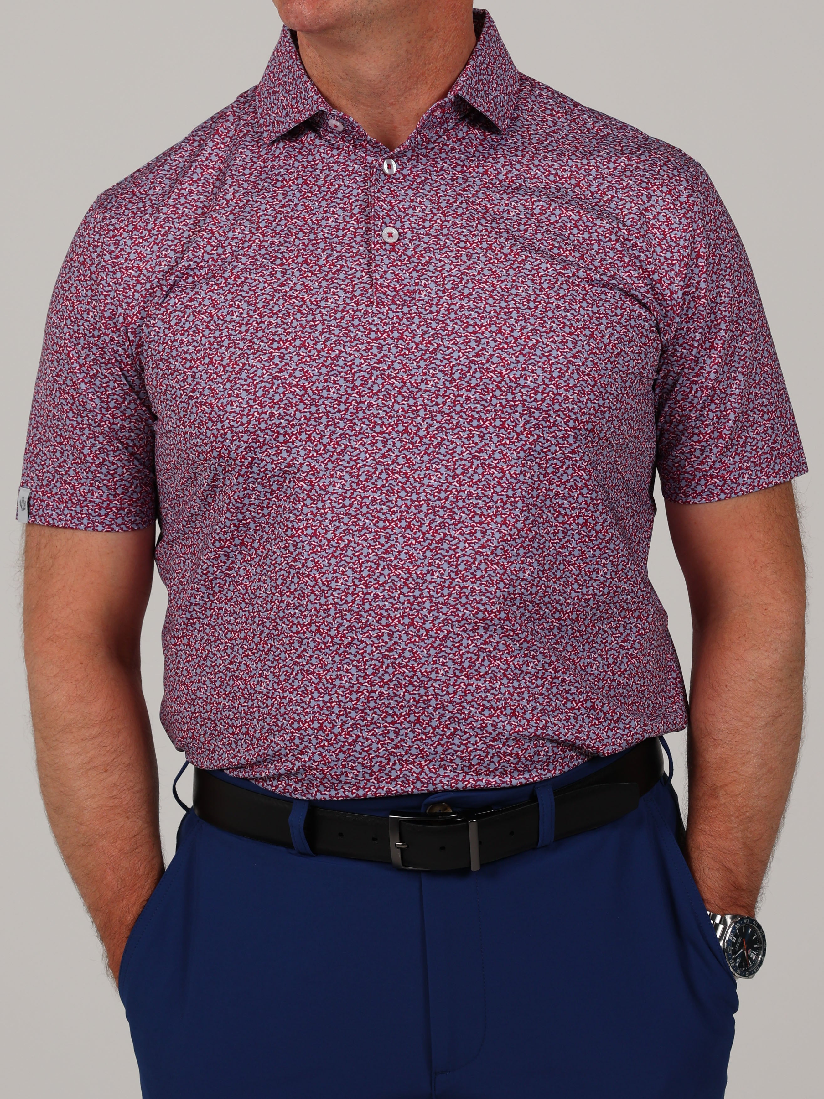 Description : Stay cool, sharp, and course-ready with the Bryce Performance Jersey Golf Polo. Engineered for performance and elevated style, this men’s golf polo features a camouflage print and is crafted from a premium 91% polyester / 9% spandex blend for lightweight comfort and durability. Built with four-way stretch fabric, this polo moves with you—whether you're swinging on the course or heading into the clubhouse. The performance jersey knit offers exceptional breathability, moisture management, and a smooth hand feel, while UPF 50 sun protection keeps you shielded during long days outdoors. Designed with a classic three-button placket and a sophisticated spread collar, this polo brings a polished yet sporty look to your golf wardrobe. Backed by lifelong satisfaction, it's a piece you'll reach for round after round.