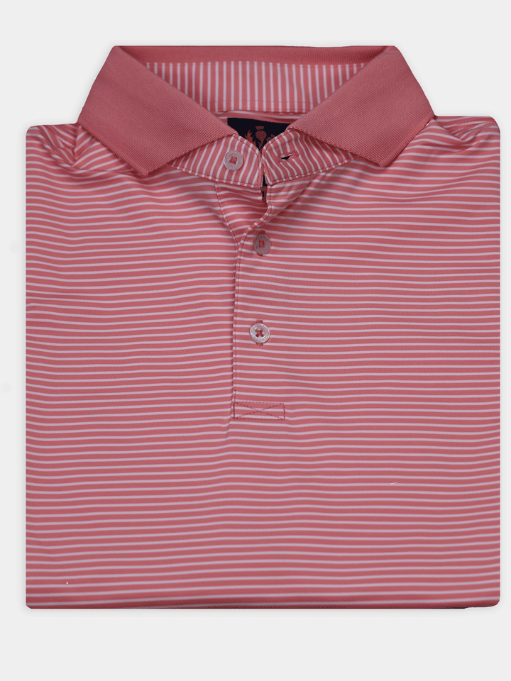 Stay cool, sharp, and course-ready with the Donald Ross Charles Performance Jersey Golf Polo. Engineered for performance and elevated style, this men’s golf polo features a pin stripe design and is crafted from a premium 91% polyester / 9% spandex blend for lightweight comfort and durability.