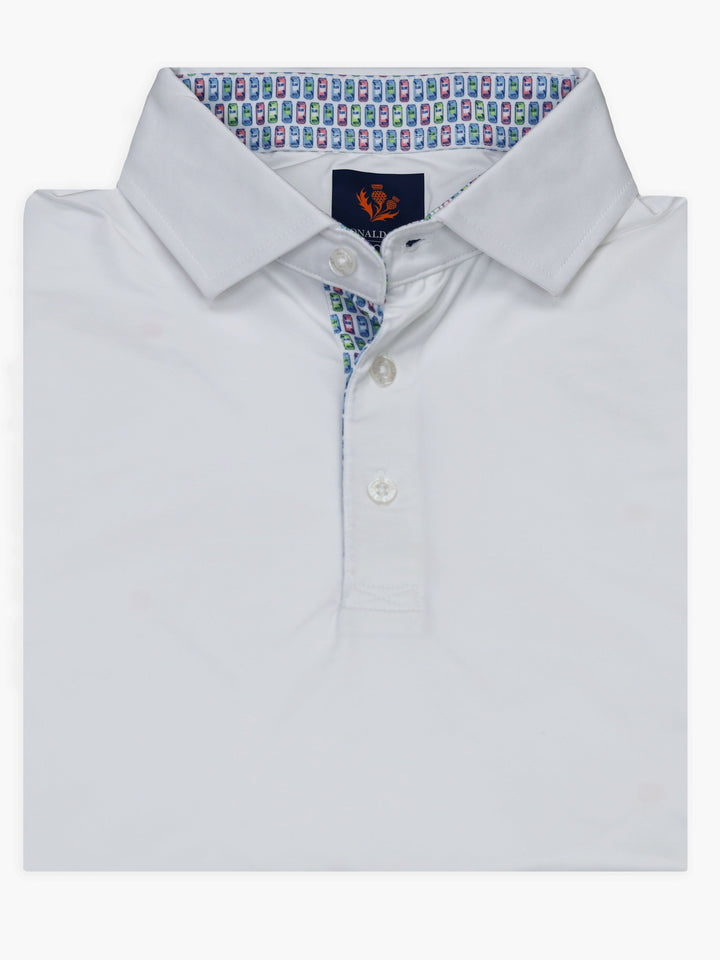 The Cliff Solid Print Polo by Donald Ross Sportswear stands out with its bold design. Made from a performance jersey fabric, this polo keeps you cool and dry with its moisture-wicking properties.