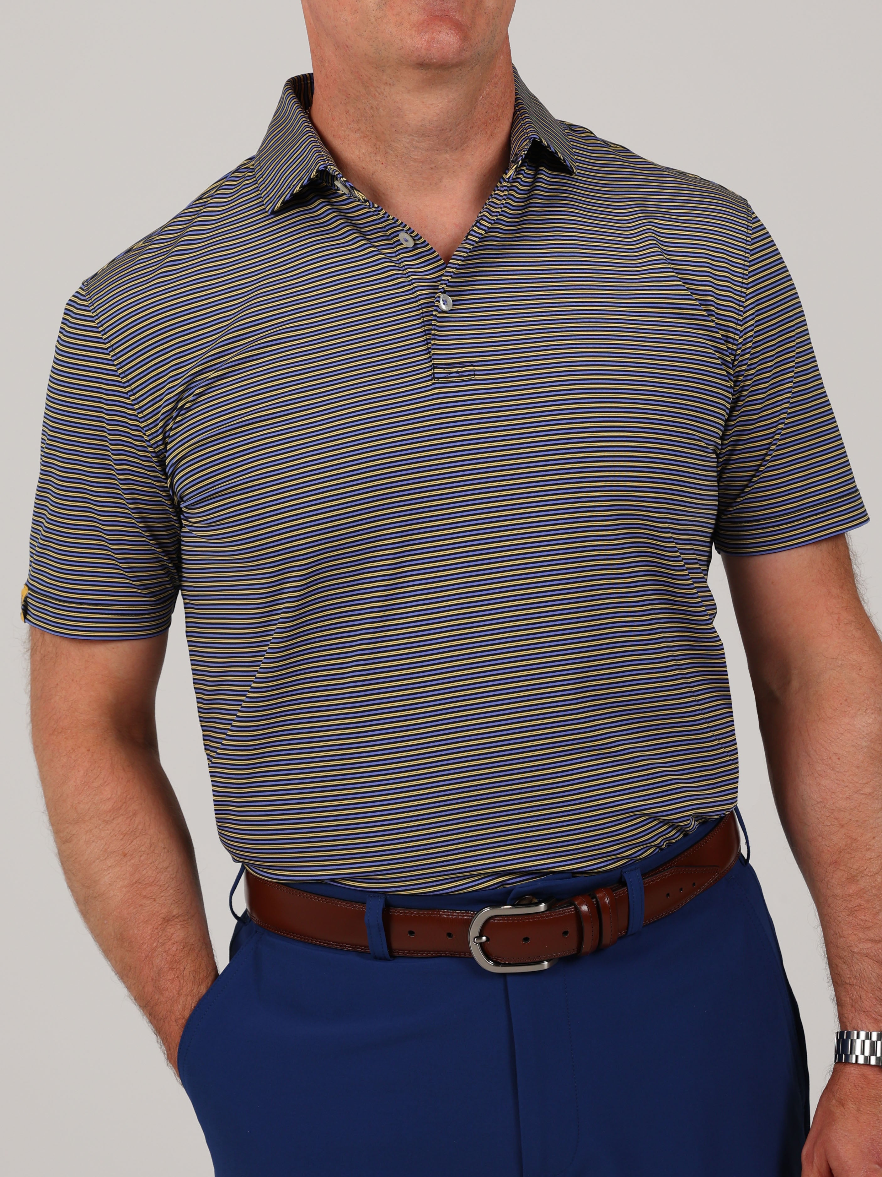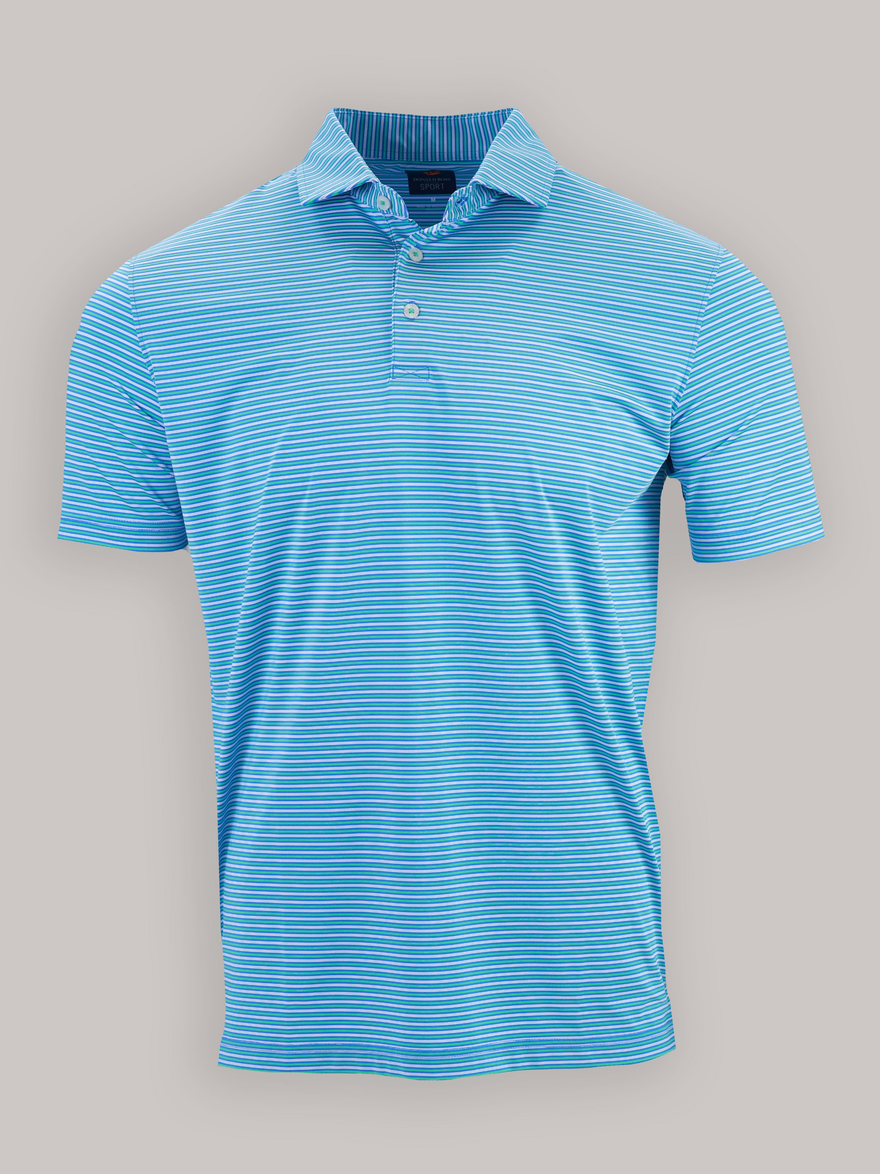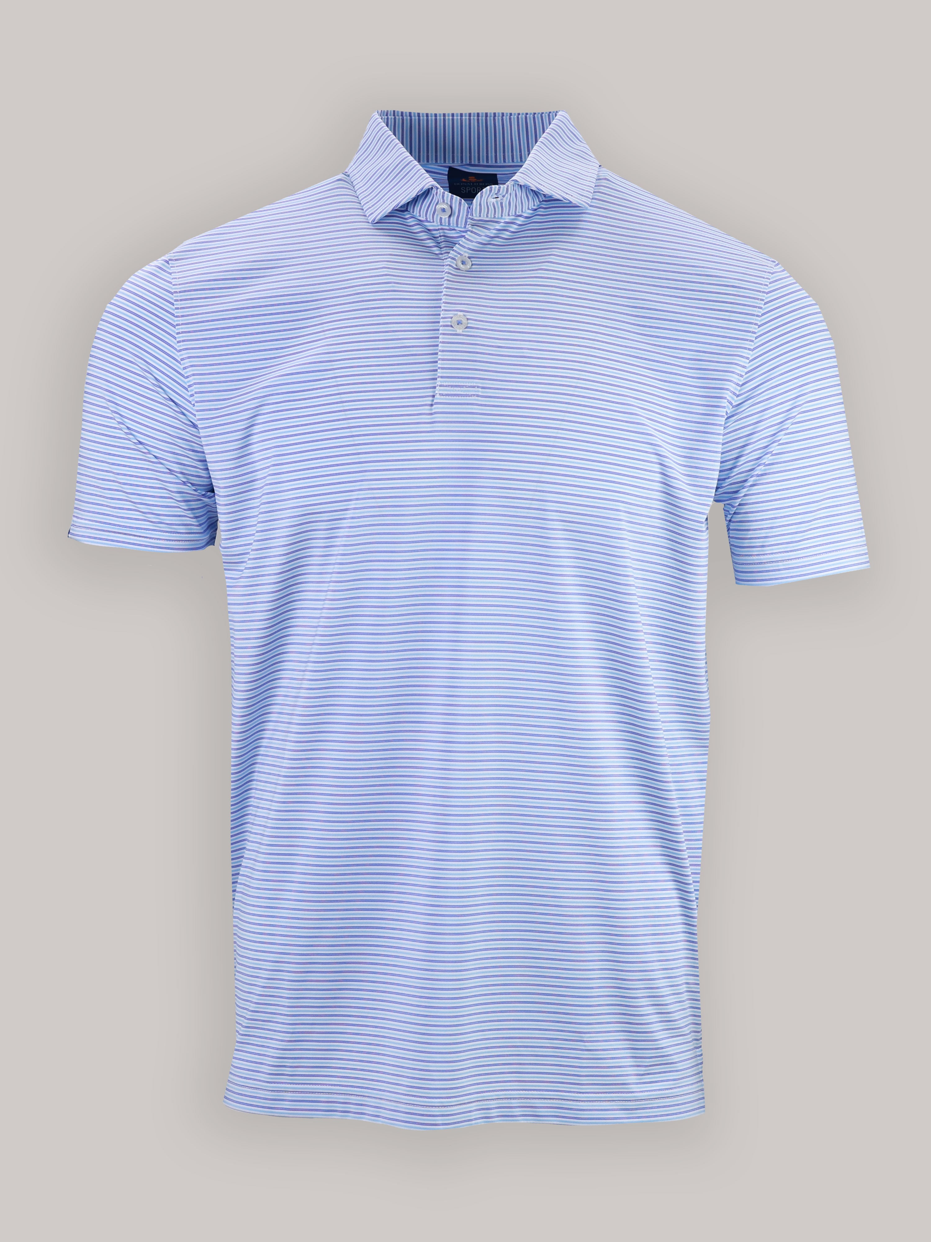 Description : Stay cool, sharp, and course-ready with the Cody Performance Jersey Golf Polo. Engineered for performance and elevated style, this men’s striped golf polo features a multi-stripe and is crafted from a premium 91% polyester / 9% spandex blend for lightweight comfort and durability. Built with four-way stretch fabric, this polo moves with you—whether you're swinging on the course or heading into the clubhouse. The performance jersey knit offers exceptional breathability, moisture management, and a smooth hand feel, while UPF 50 sun protection keeps you shielded during long days outdoors. Designed with a classic three-button placket and a sophisticated spread collar, this polo brings a polished yet sporty look to your golf wardrobe. Backed by lifelong satisfaction, it's a piece you'll reach for round after round.