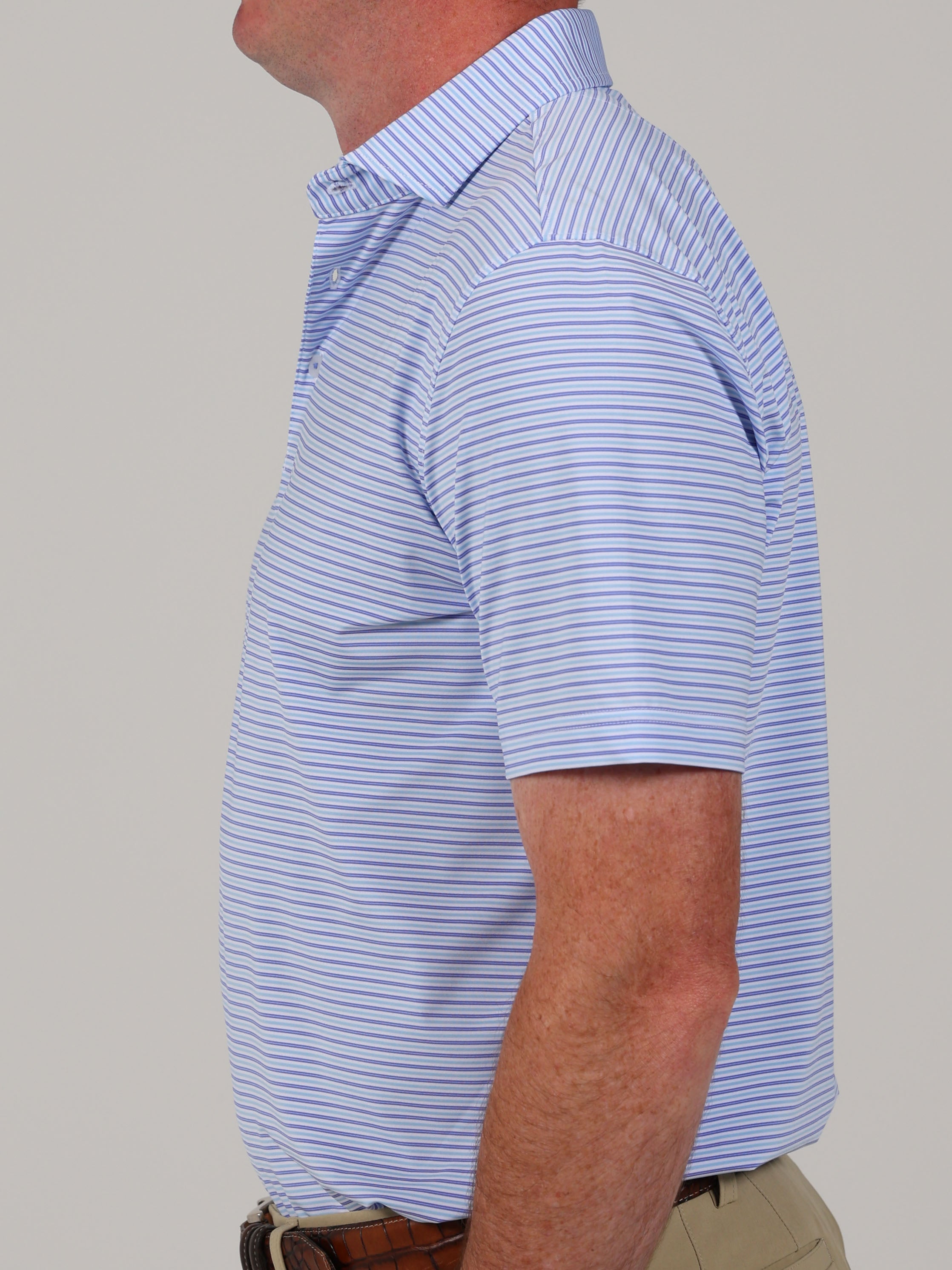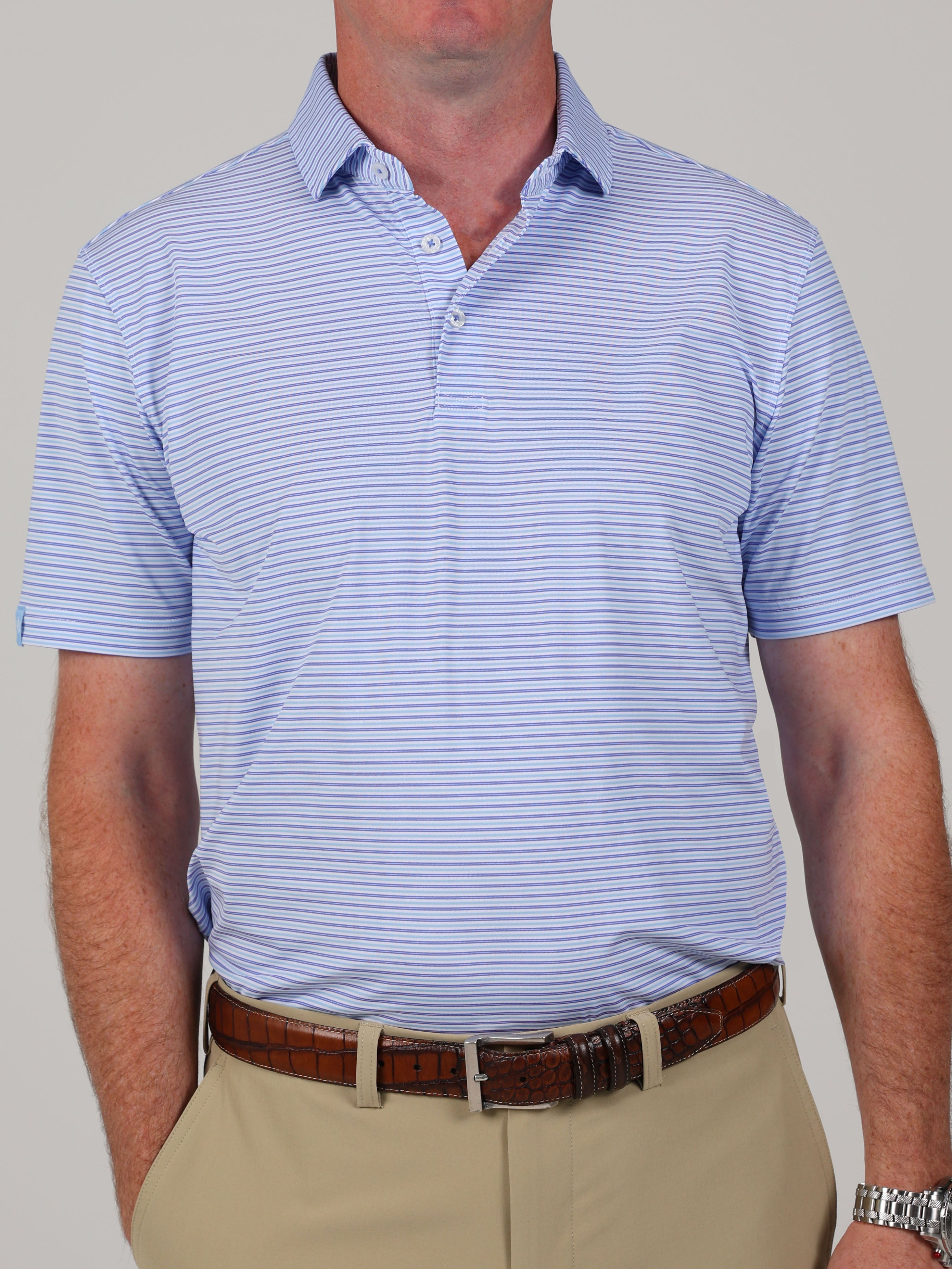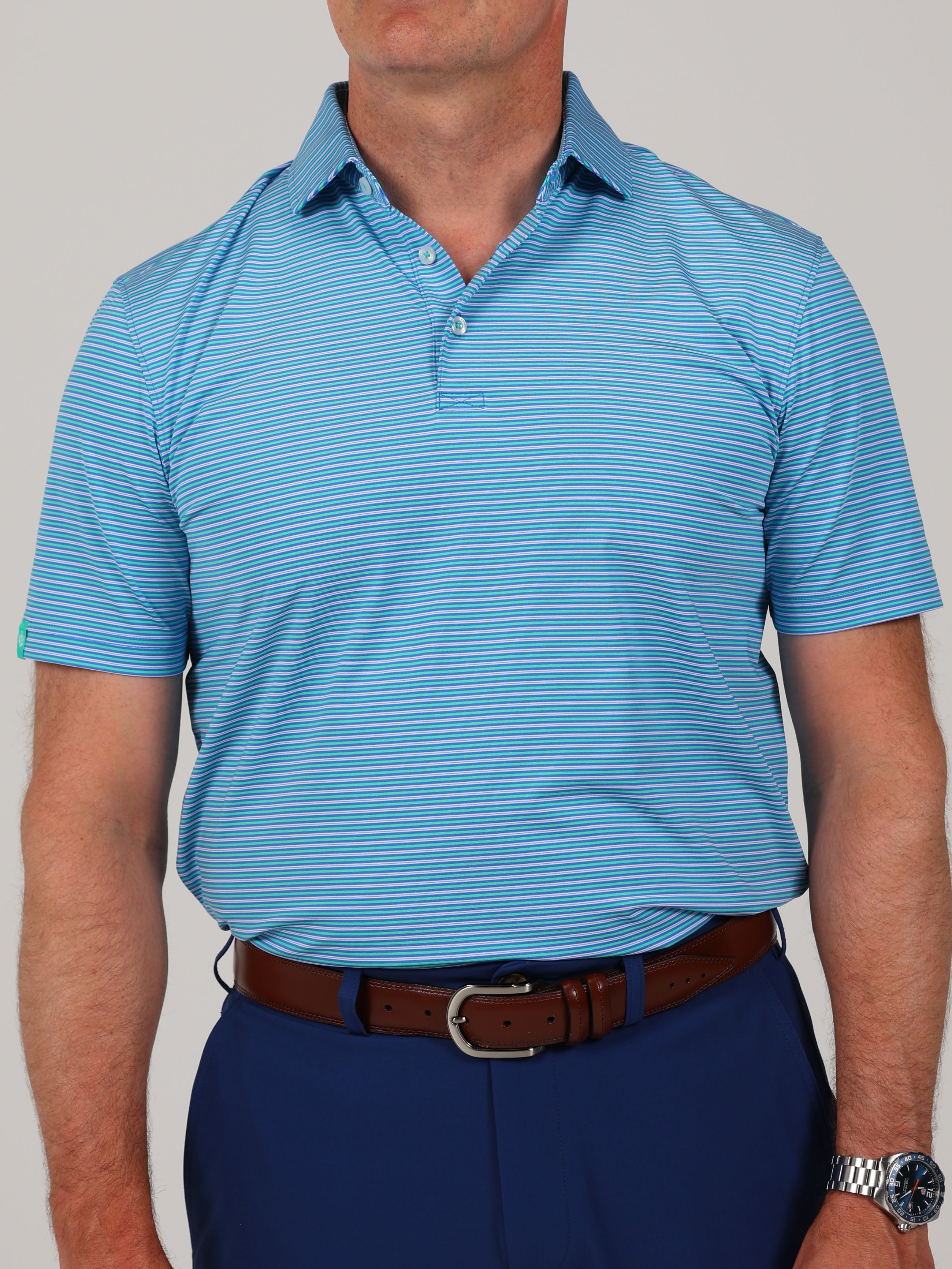 Description : Stay cool, sharp, and course-ready with the Cody Performance Jersey Golf Polo. Engineered for performance and elevated style, this men’s striped golf polo features a multi-stripe and is crafted from a premium 91% polyester / 9% spandex blend for lightweight comfort and durability. Built with four-way stretch fabric, this polo moves with you—whether you're swinging on the course or heading into the clubhouse. The performance jersey knit offers exceptional breathability, moisture management, and a smooth hand feel, while UPF 50 sun protection keeps you shielded during long days outdoors. Designed with a classic three-button placket and a sophisticated spread collar, this polo brings a polished yet sporty look to your golf wardrobe. Backed by lifelong satisfaction, it's a piece you'll reach for round after round.