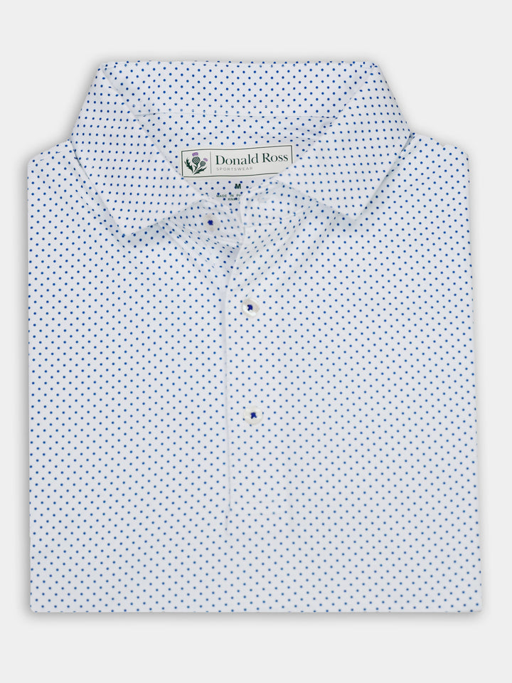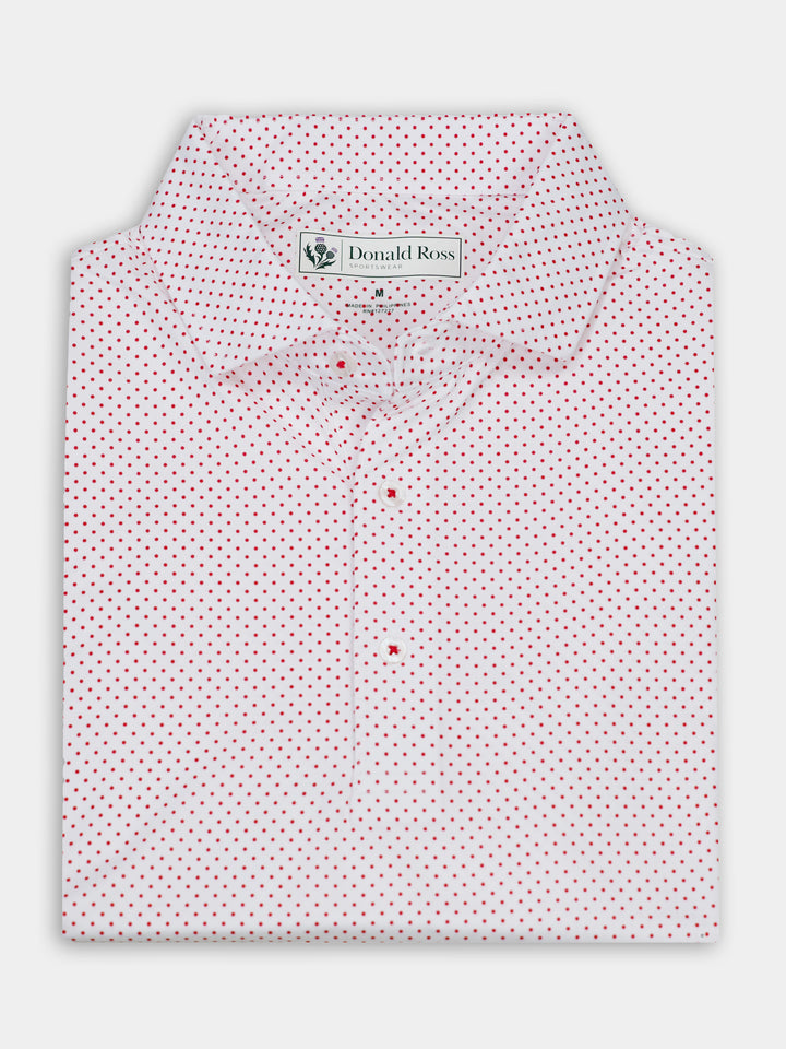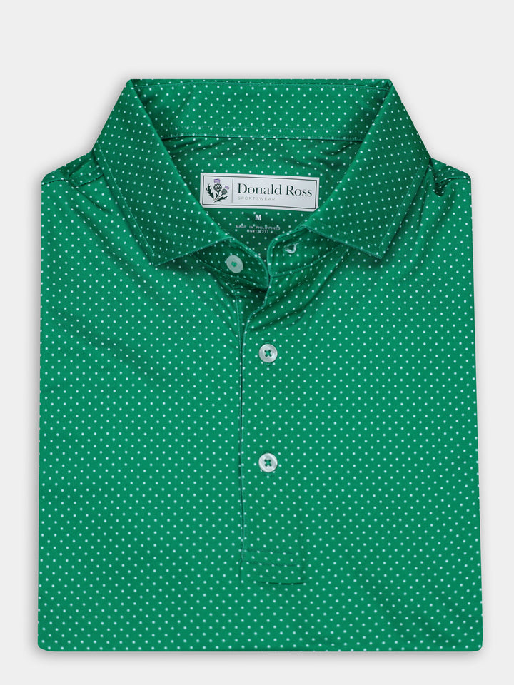 Our Polka Dot Print Polo is an ideal option for the office or the course. Constructed from our best-selling technical performance jersey yarn, this garment feels cool to the touch and stays dry as it wicks moisture away from your body. Model features a classic three-button placket and self-collar along with UPF 50 sun protection.