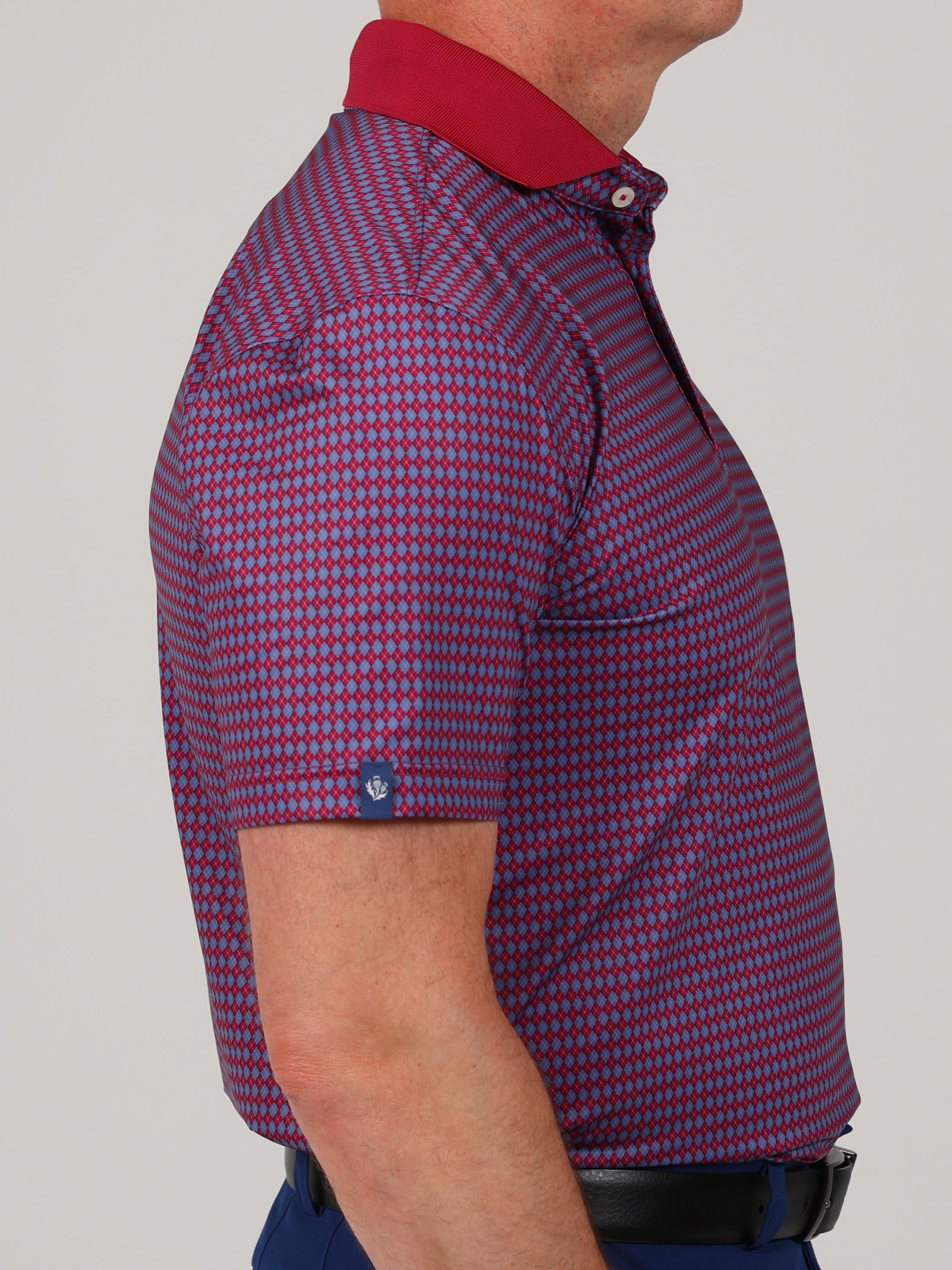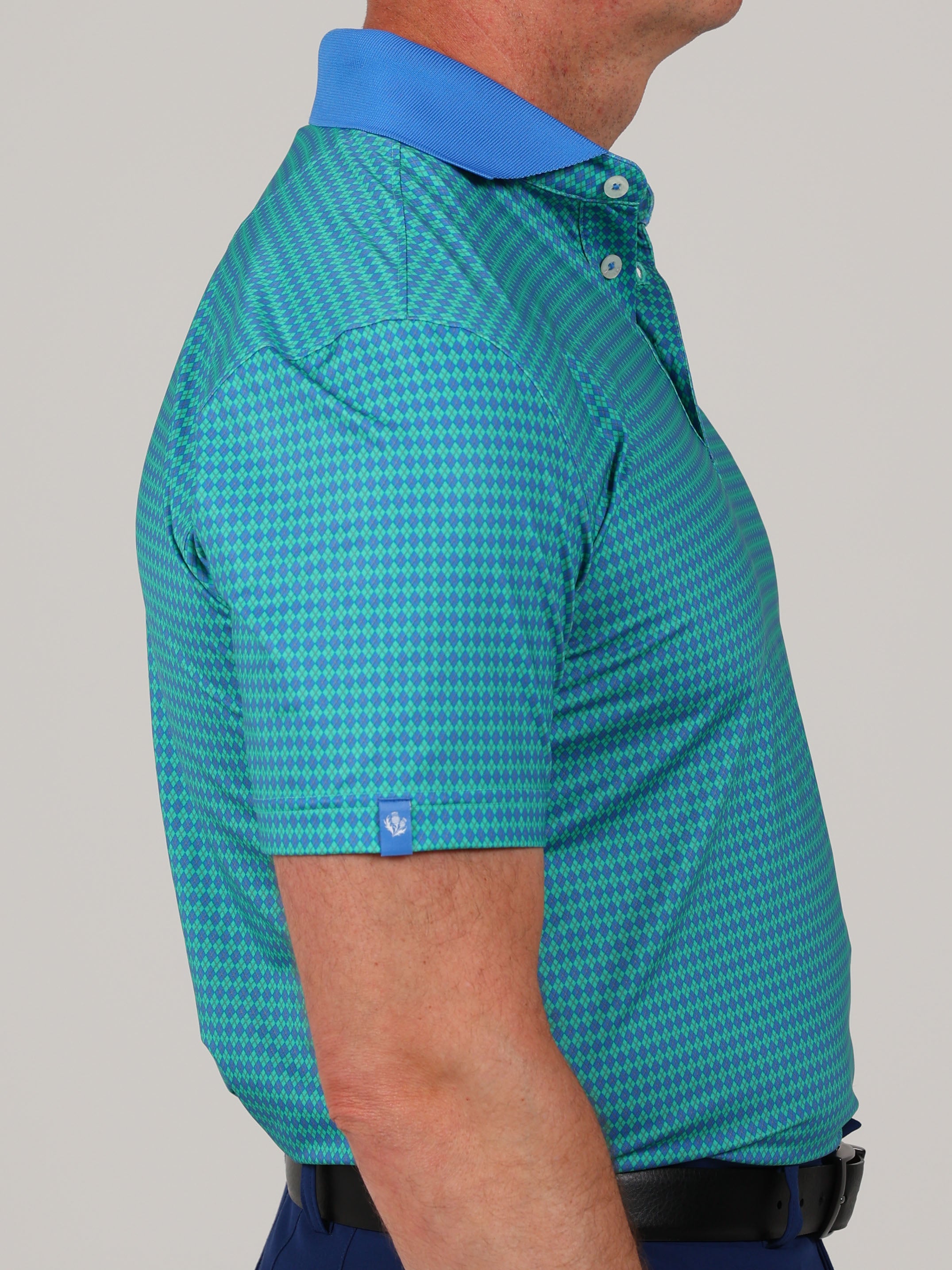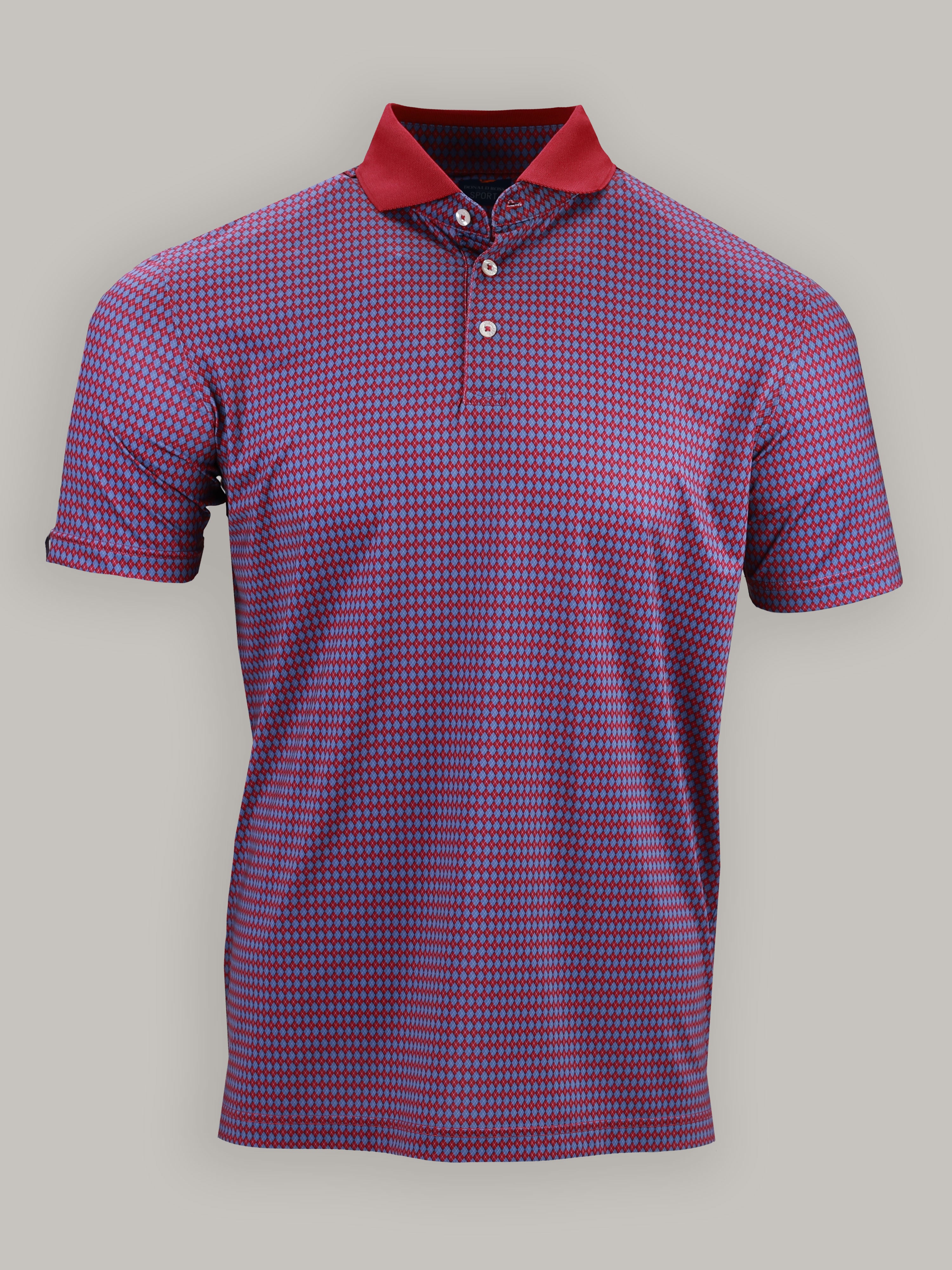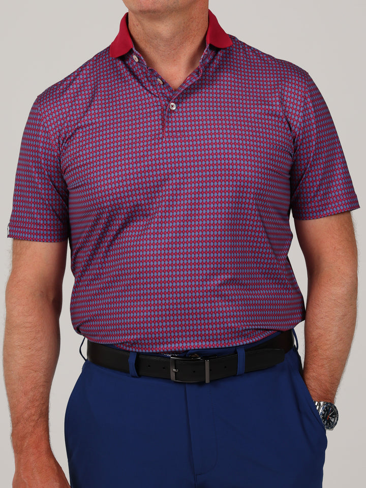 Description : Stay cool, sharp, and course-ready with the Curtis Performance Jersey Golf Polo. Engineered for performance and elevated style, this men’s golf polo features an argyle print and is crafted from a premium 91% polyester / 9% spandex blend for lightweight comfort and durability. Built with four-way stretch fabric, this polo moves with you—whether you're swinging on the course or heading into the clubhouse. The performance jersey knit offers exceptional breathability, moisture management, and a smooth hand feel, while UPF 50 sun protection keeps you shielded during long days outdoors. Designed with a classic three-button placket and a sophisticated solid spread collar, this polo brings a polished yet sporty look to your golf wardrobe. Backed by lifelong satisfaction, it's a piece you'll reach for round after round.
