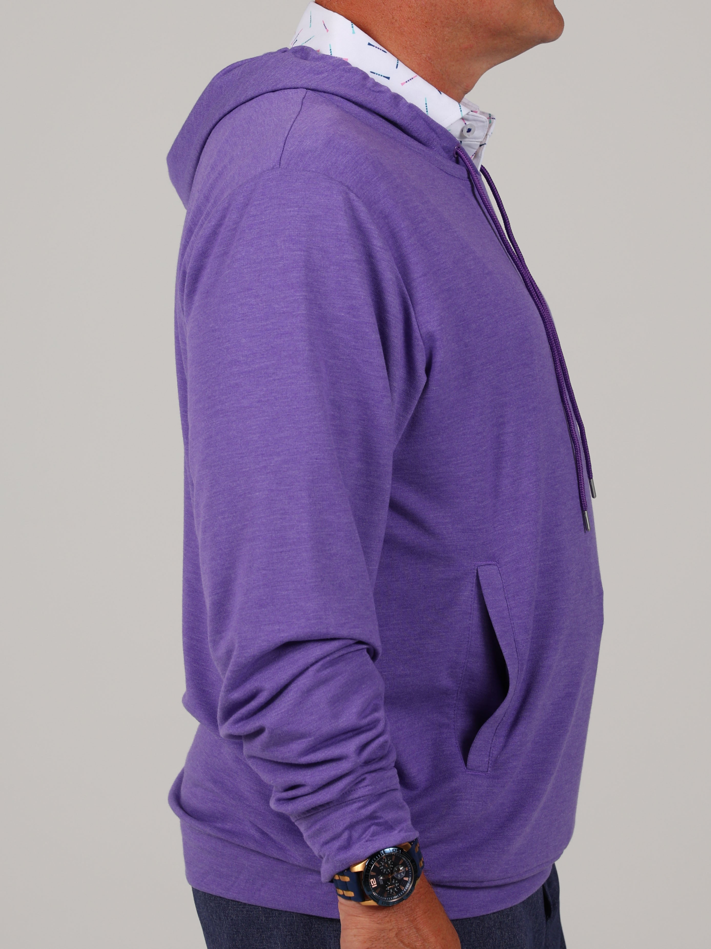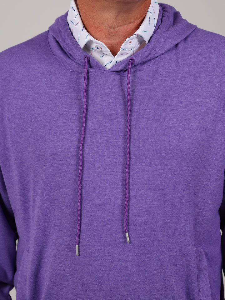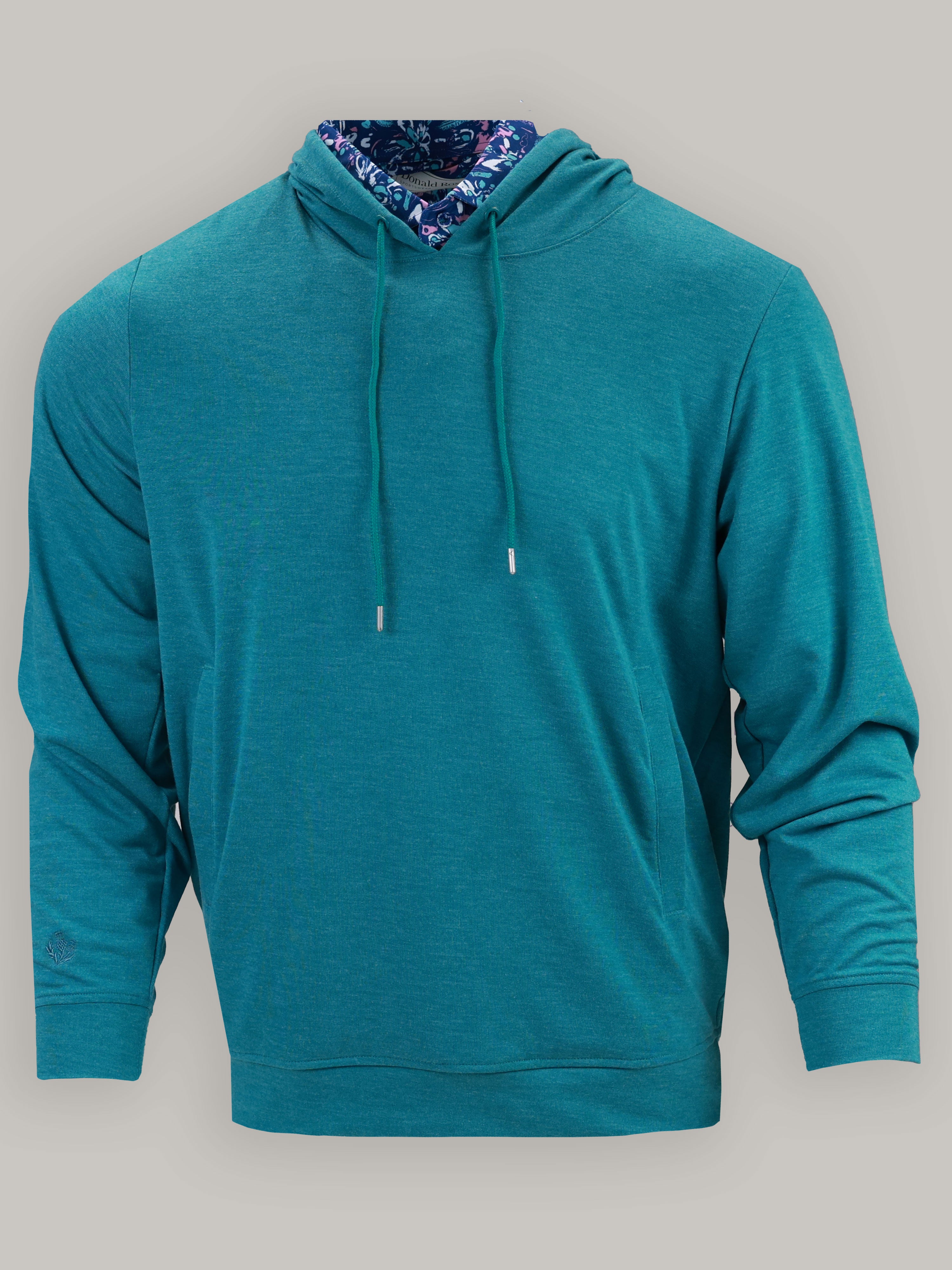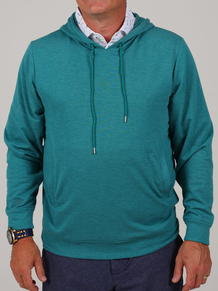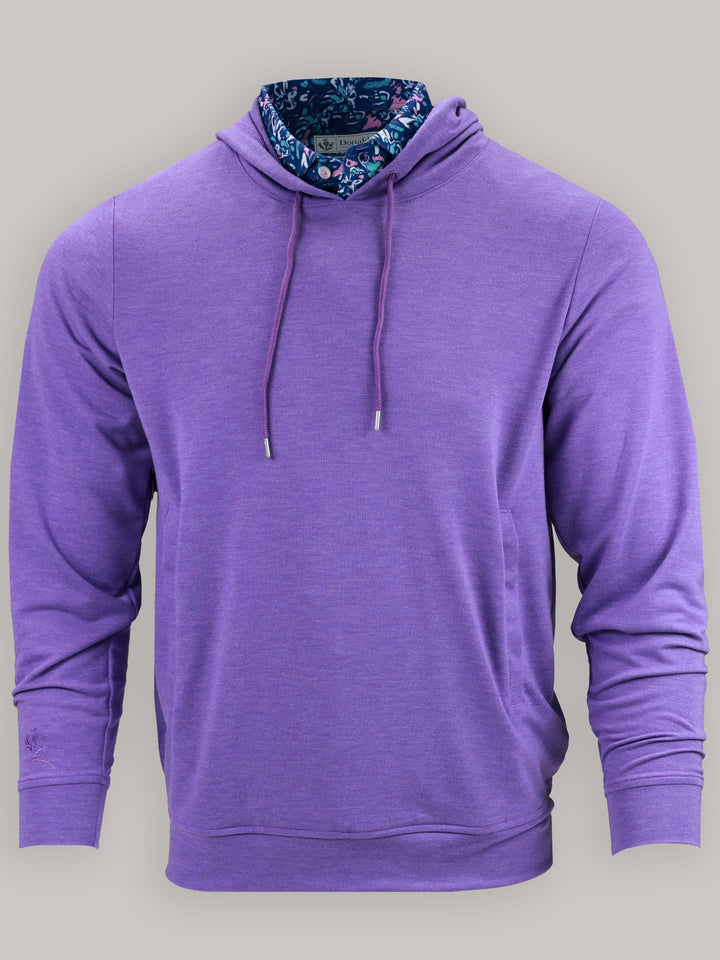 Description : Where comfort meets class — the Donald Ross Duke Long Sleeve Hoodie Pullover is your go-to layer for laid-back performance and understated style. Crafted with set-in shoulder construction for a refined fit and finished with tonal cord strings, this isn’t your average hoodie — it’s a statement in subtle sophistication. Two front pockets add everyday function, while banded cuffs and hem provide a clean, athletic finish. A tonal embroidered thistle logo on the wearer's right sleeve adds a quiet nod to our heritage — never loud, always distinguished. From early tee times to late nights out, this hoodie keeps you looking sharp and feeling comfortable wherever the day takes you.