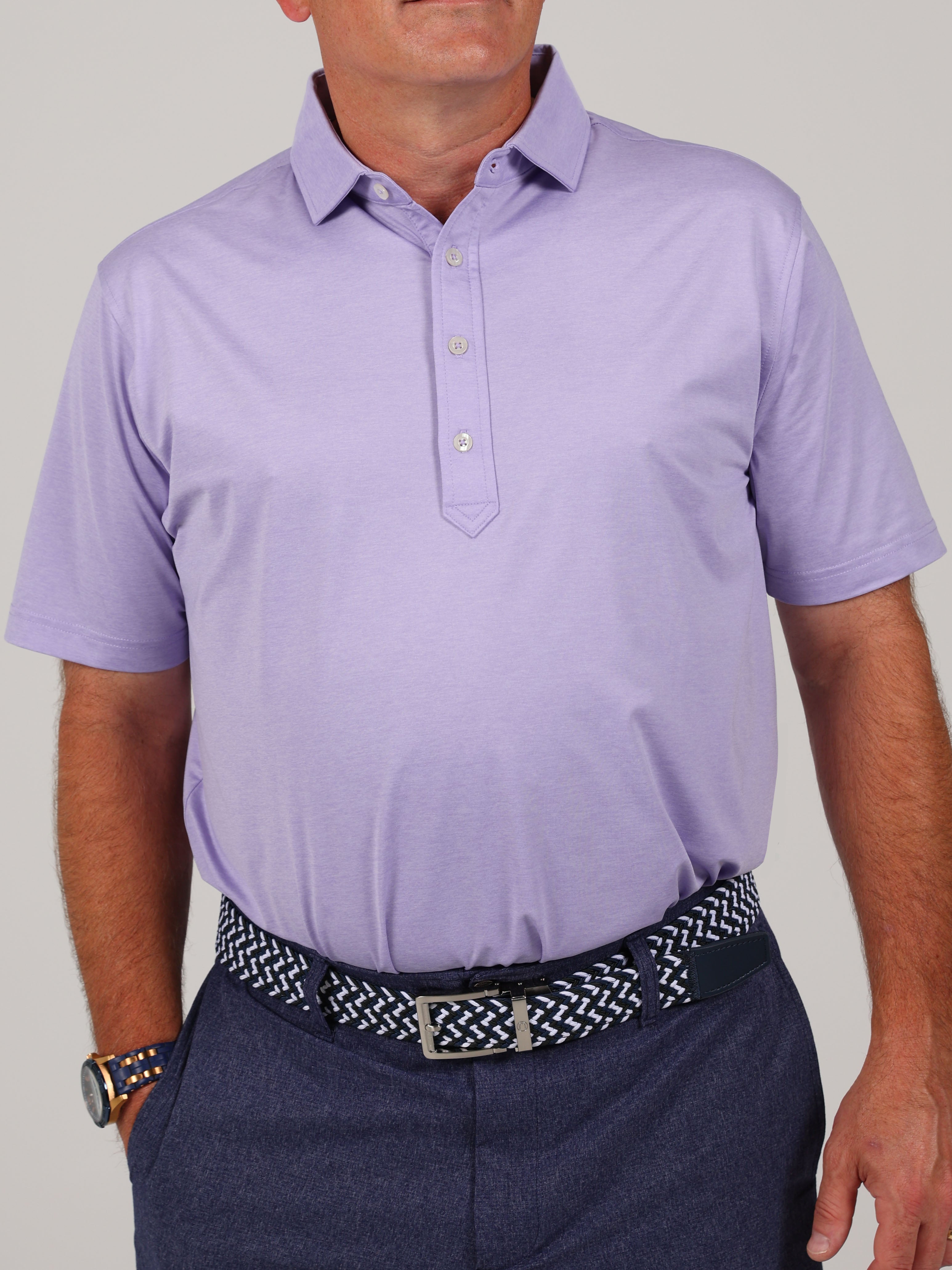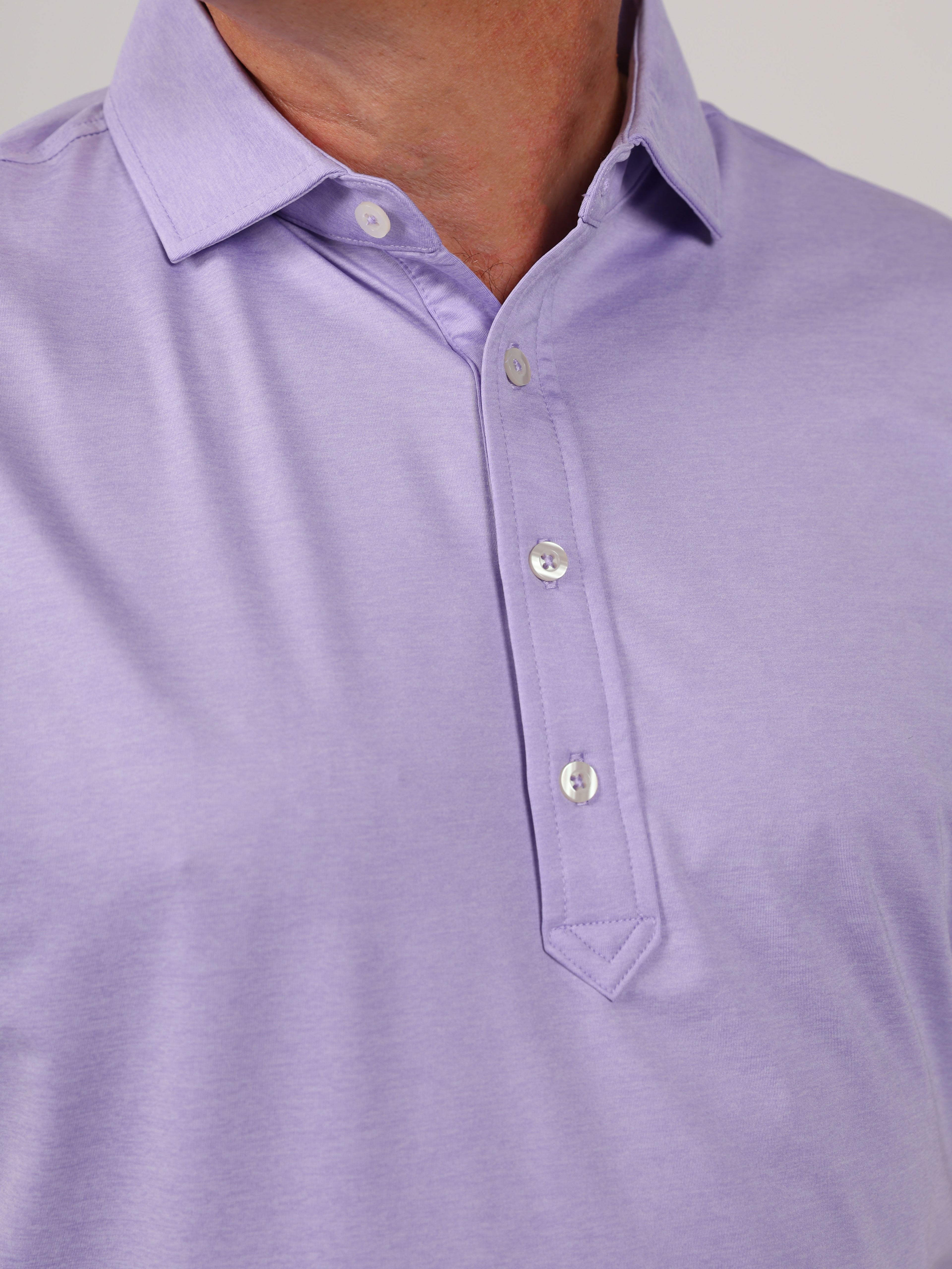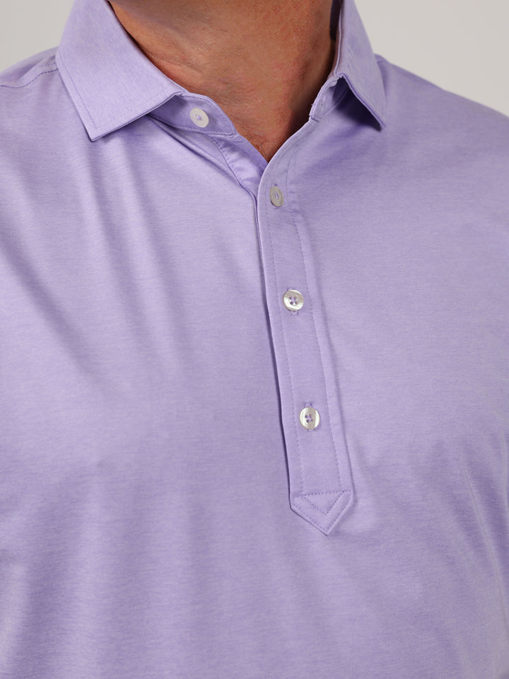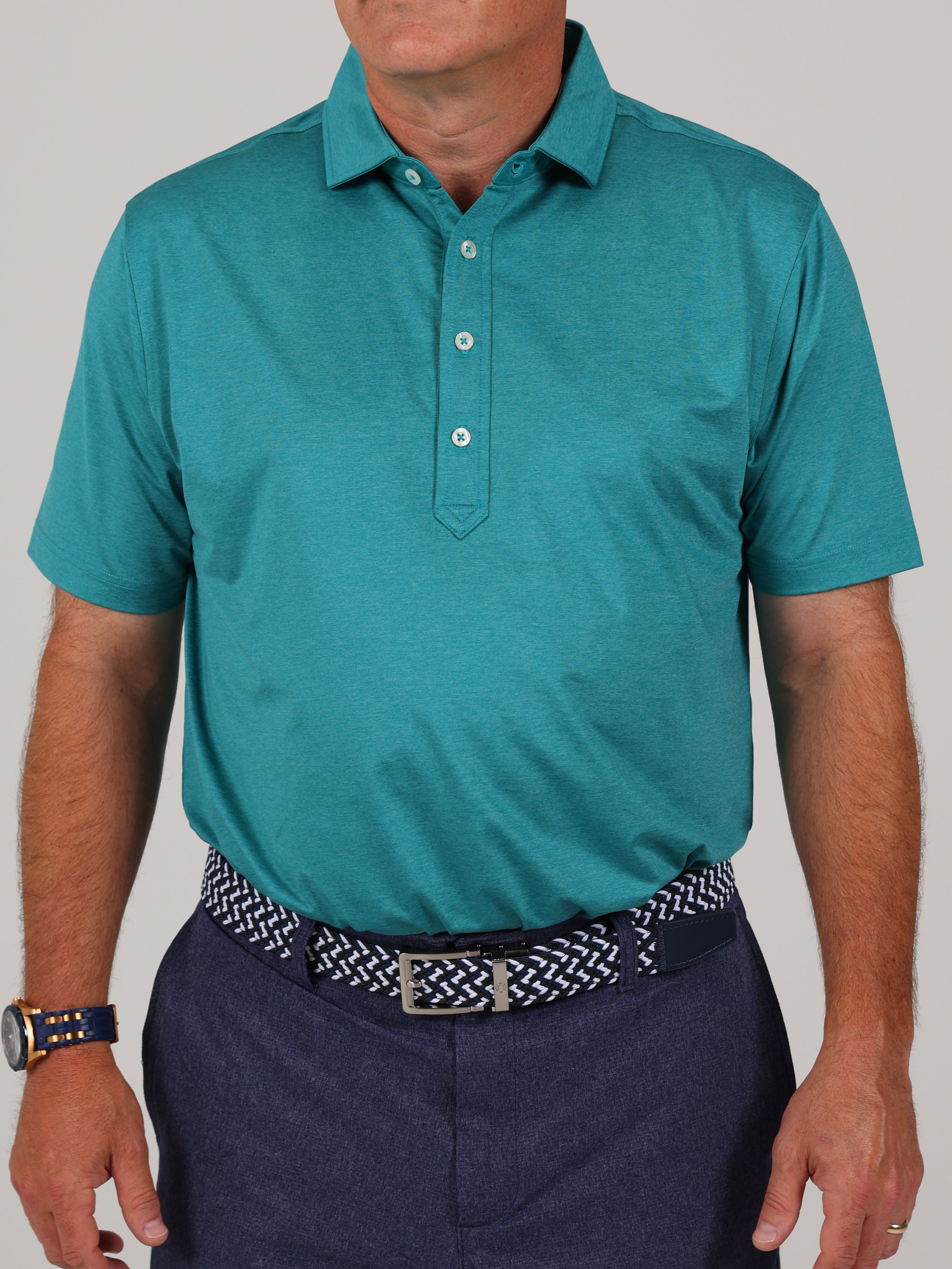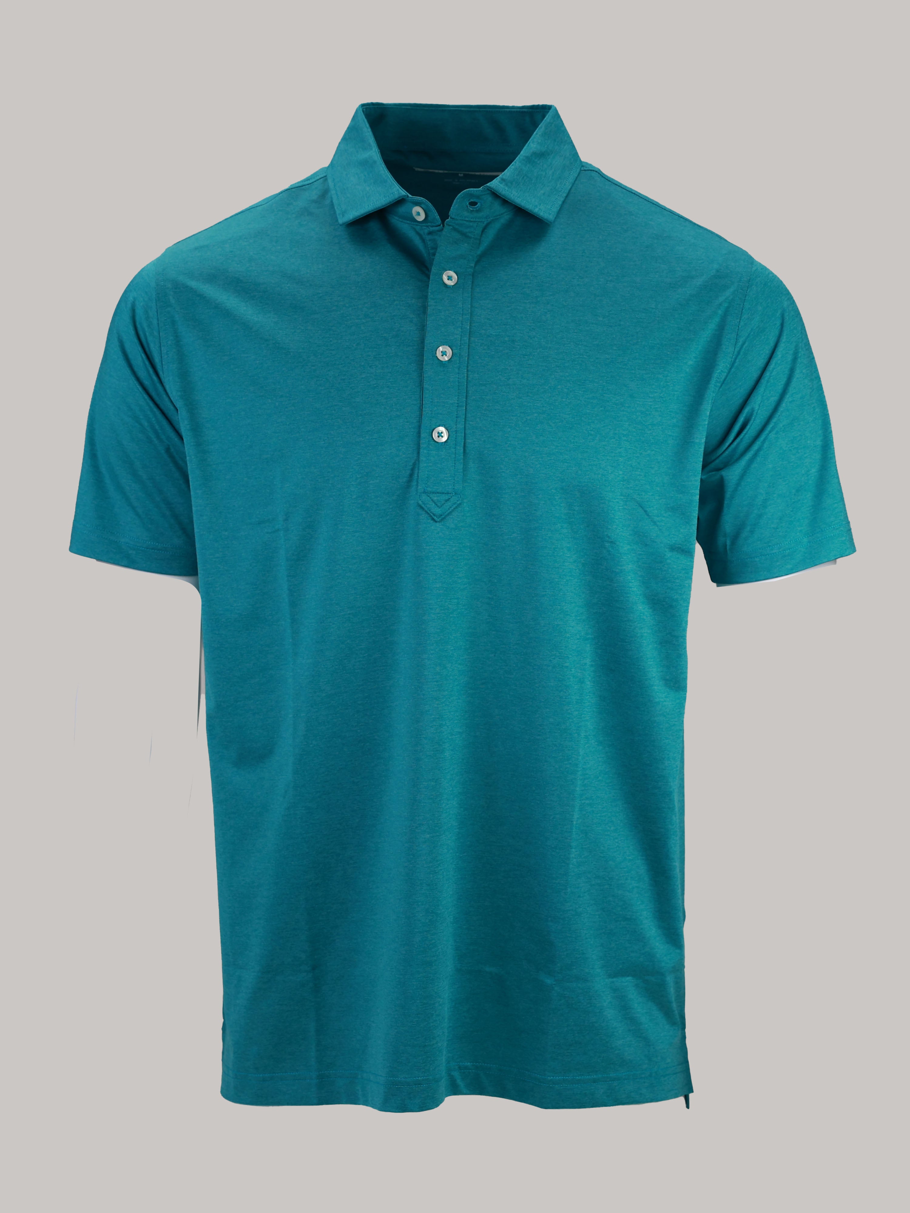 Description : Stay cool, sharp, and course-ready with the Elmira Performance Jersey Golf Polo. Engineered for performance and elevated style, this men’s melange jersey polo features a solid design in a variety of elevated colors and is crafted from a premium 91% polyester / 9% spandex blend for lightweight comfort and durability. Built with four-way stretch fabric, this polo moves with you—whether you're swinging on the course or heading into the clubhouse. The performance jersey knit offers exceptional breathability, moisture management, and a smooth hand feel, while UPF 50 sun protection keeps you shielded during long days outdoors. Designed with a classic three-button placket and a sophisticated spread collar, this polo brings a polished yet sporty look to your golf wardrobe. Backed by lifelong satisfaction, it's a piece you'll reach for round after round.