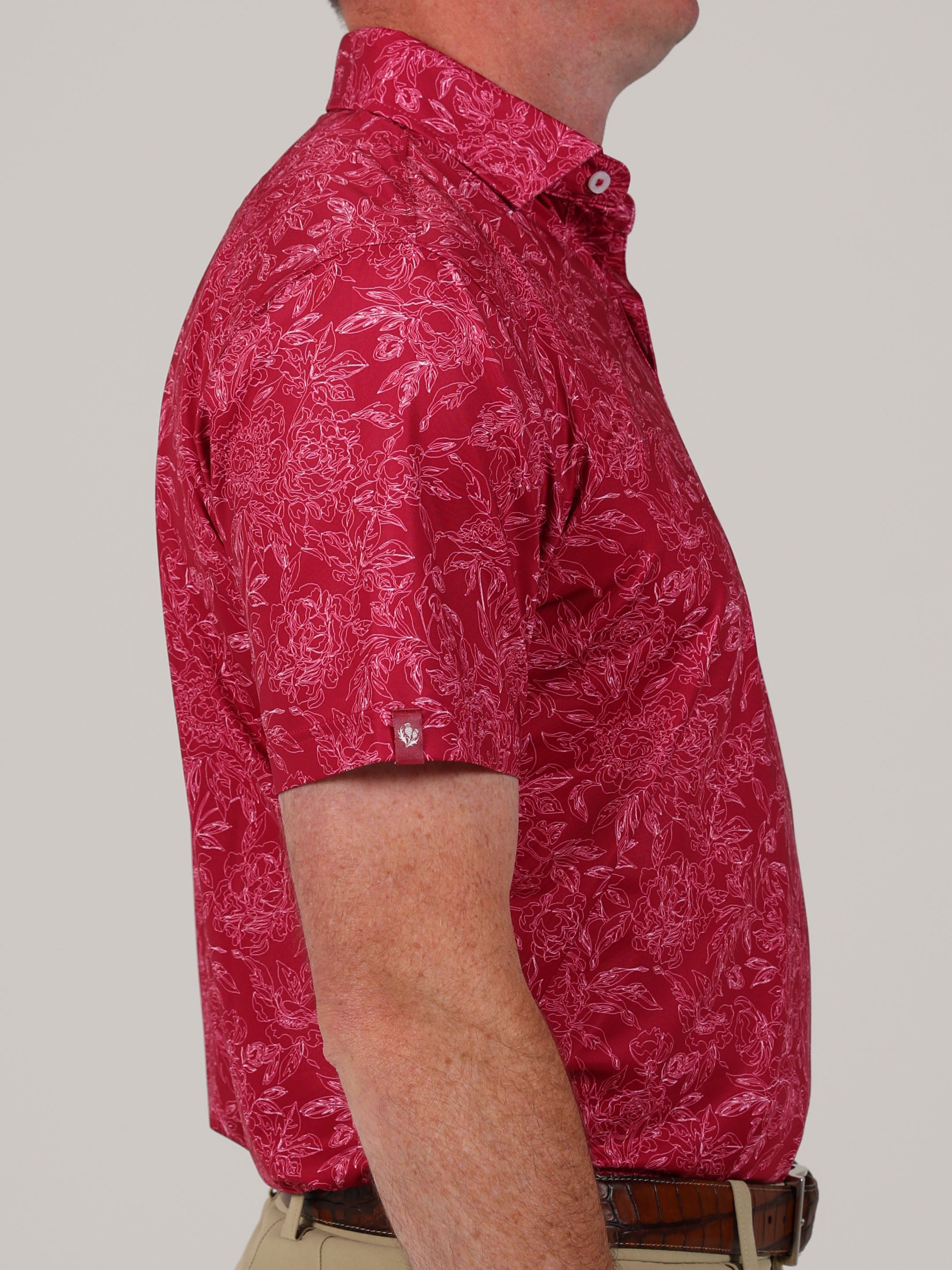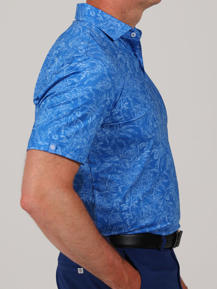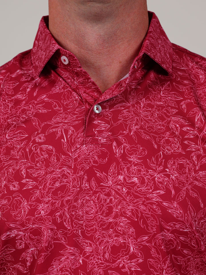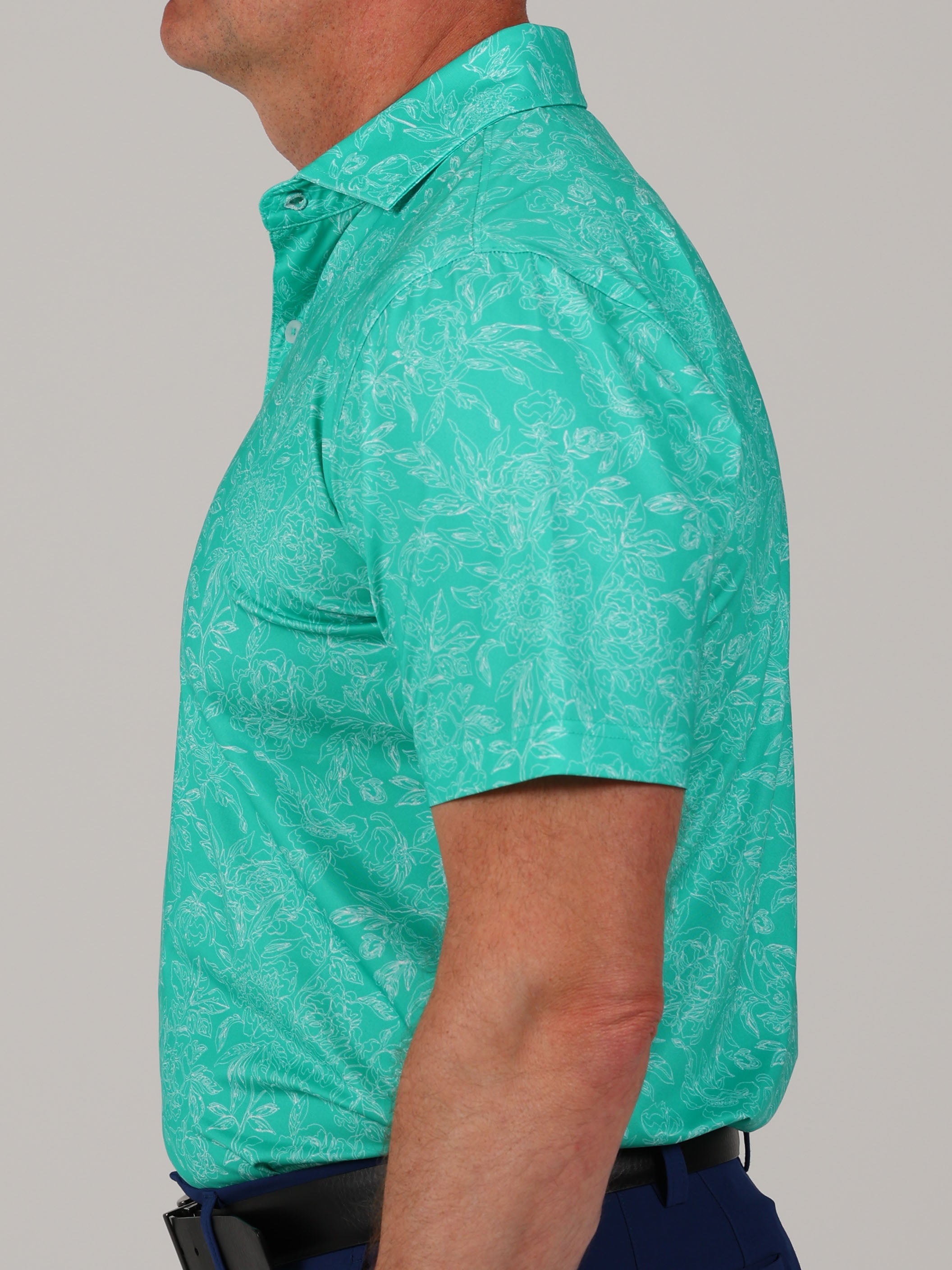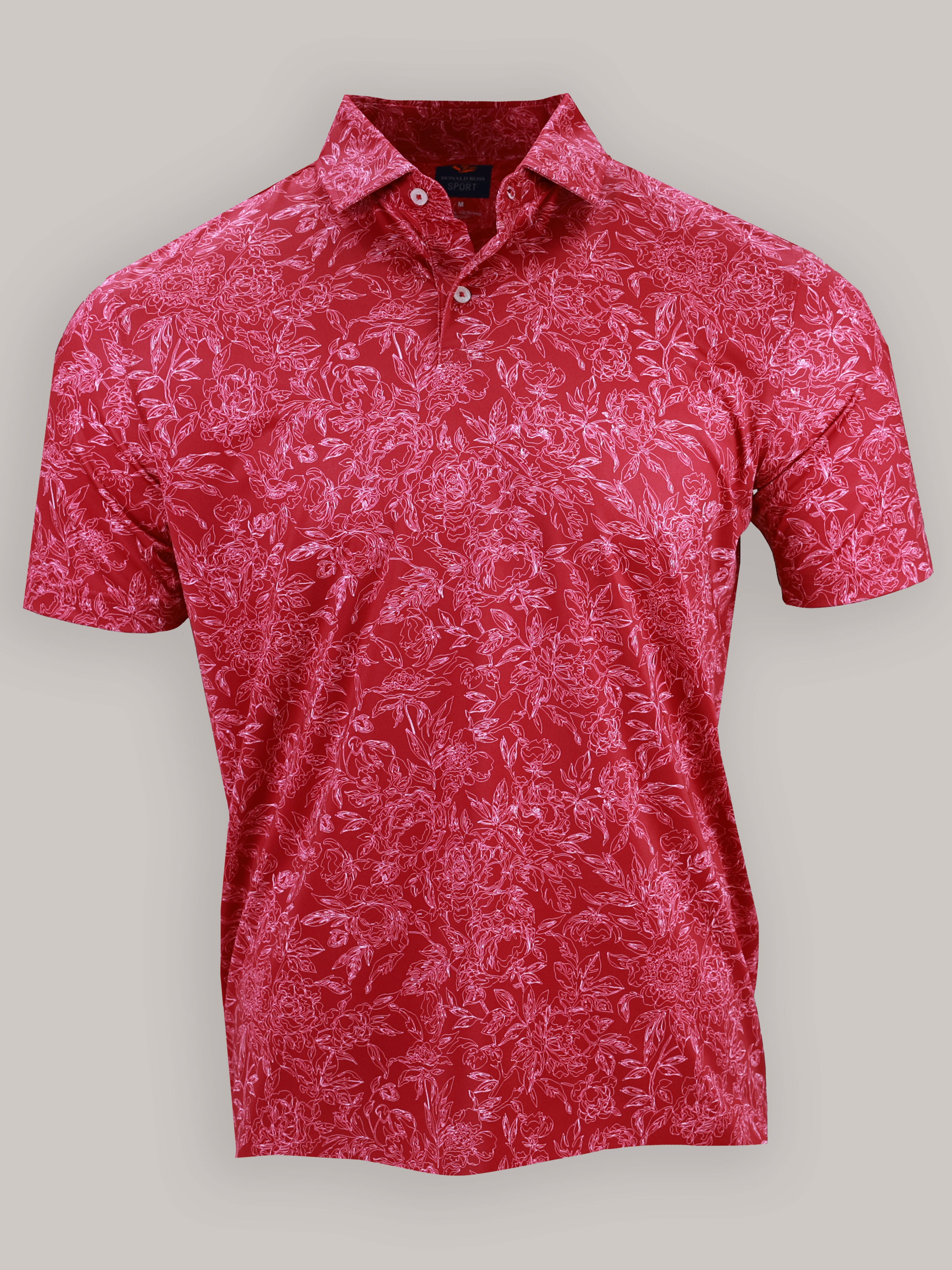Description : Stay cool, sharp, and course-ready with the Jacques Performance Jersey Golf Polo. Engineered for performance and elevated style, this men’s golf polo features a lace floral print and is crafted from a premium 91% polyester / 9% spandex blend for lightweight comfort and durability. Built with four-way stretch fabric, this polo moves with you—whether you're swinging on the course or heading into the clubhouse. The performance jersey knit offers exceptional breathability, moisture management, and a smooth hand feel, while UPF 50 sun protection keeps you shielded during long days outdoors. Designed with a classic two-button placket and a sophisticated spread collar, this polo brings a polished yet sporty look to your golf wardrobe. Backed by lifelong satisfaction, it's a piece you'll reach for round after round.