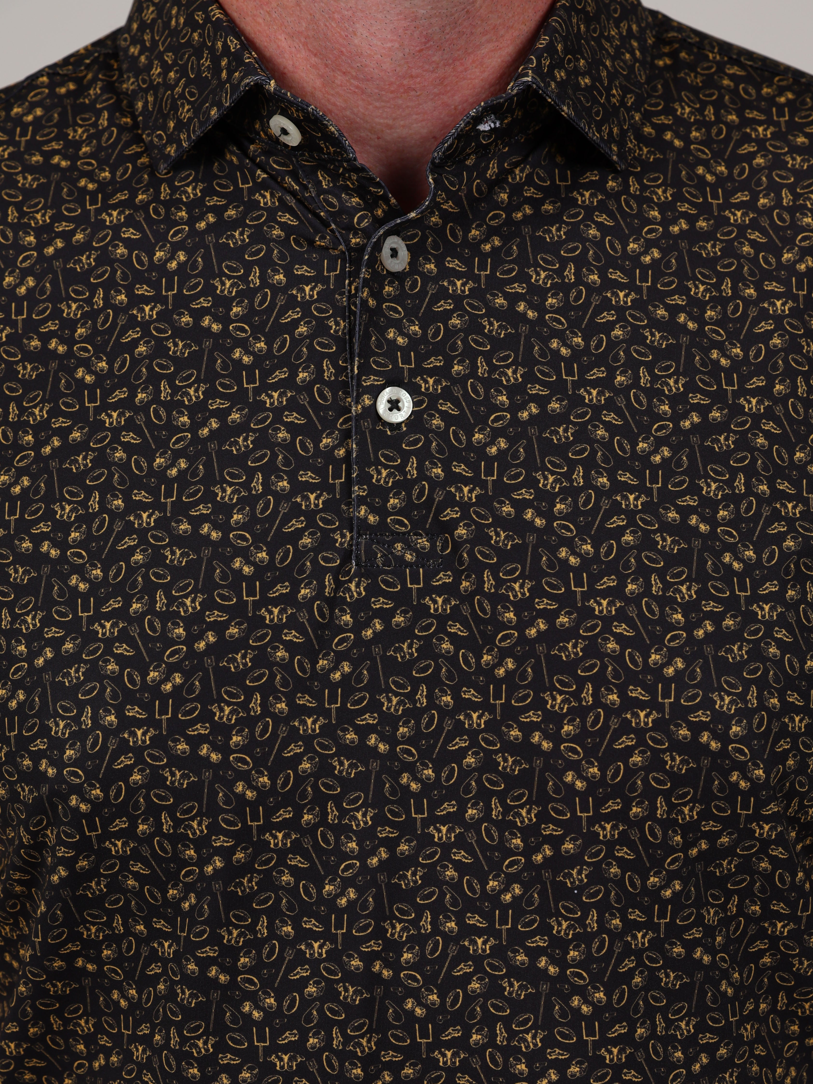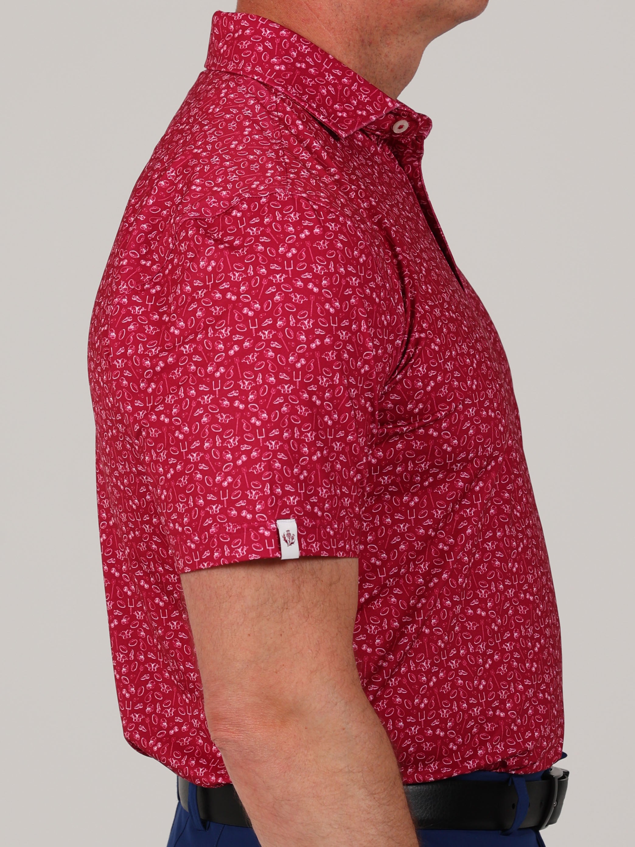 Description : Stay cool, sharp, and course-ready with the Josh Performance Jersey Golf Polo. Engineered for performance and elevated style, this men’s golf polo features a football print and is crafted from a premium 91% polyester / 9% spandex blend for lightweight comfort and durability. Built with four-way stretch fabric, this polo moves with you—whether you're swinging on the course or heading into the clubhouse. The performance jersey knit offers exceptional breathability, moisture management, and a smooth hand feel, while UPF 50 sun protection keeps you shielded during long days outdoors. Designed with a classic three-button placket and a sophisticated spread collar, this polo brings a polished yet sporty look to your golf wardrobe. Backed by lifelong satisfaction, it's a piece you'll reach for round after round.