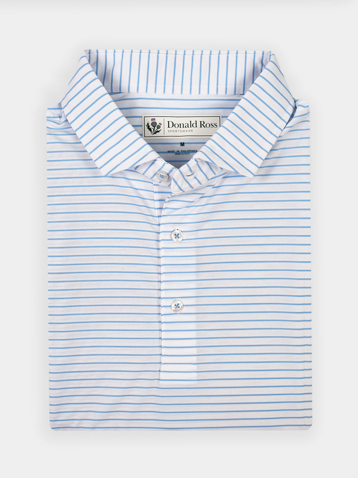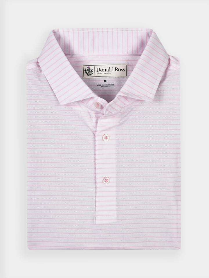 The Mateo by Donald Ross Sportswear is a pin stripe hybrid baby pique performance polo. This polo is available in six colors.