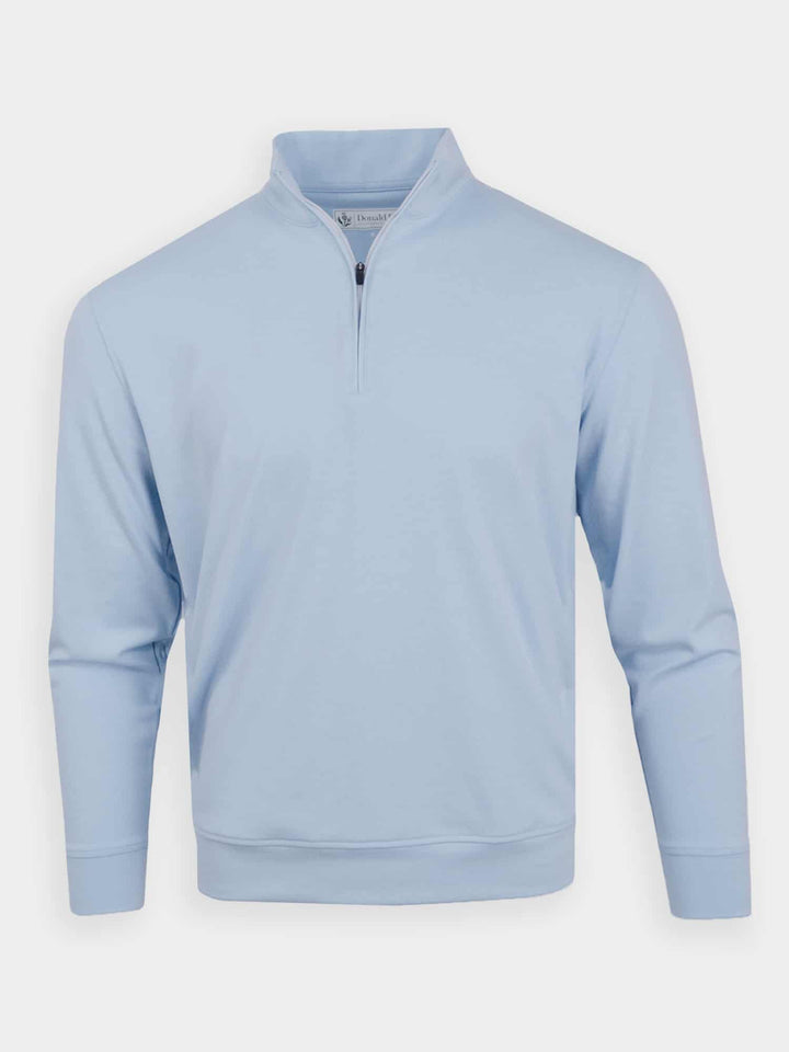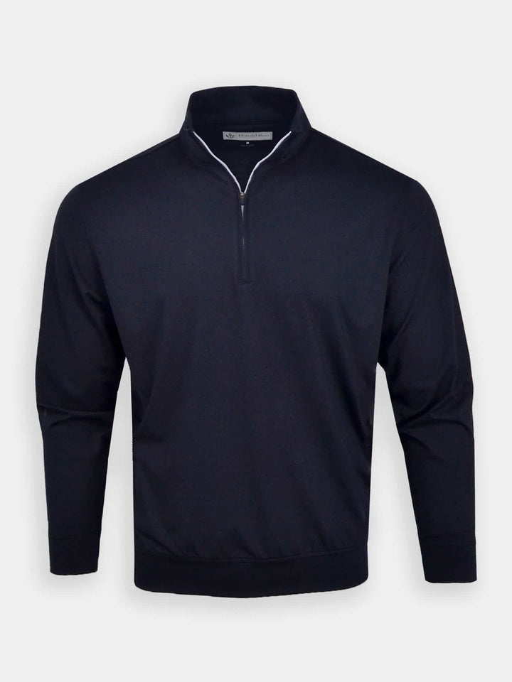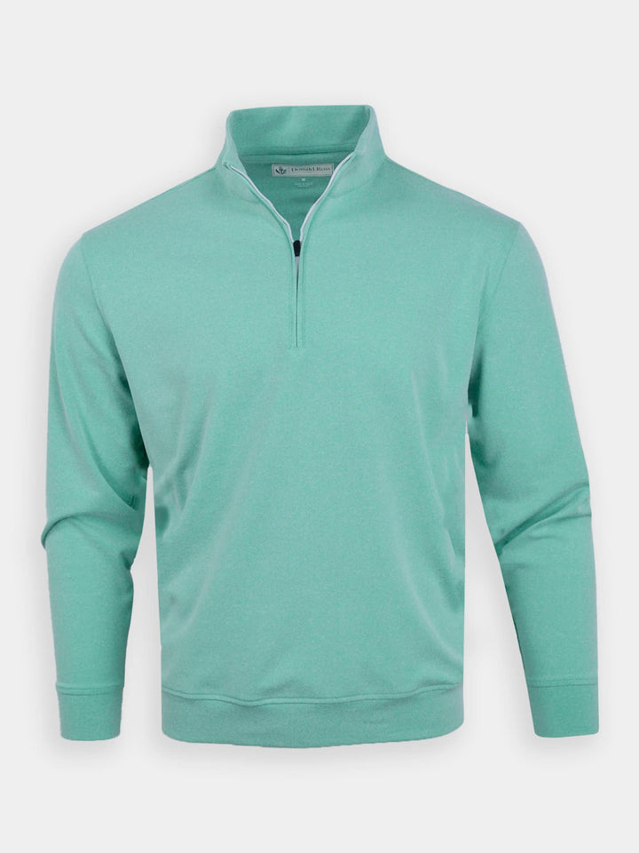 The Year Rounder, Men's 1/4 Zip Fleece by Donald Ross Sportswear. A timeless pullover offered in seven flattering colorways that add a subtle pop of color to any outfit. Constructed from our signature performance fleece, this garment feels cool to the touch and stays dry with moisture-wicking fabric. The Louie offers full stretch and breathability for endless comfort on and off the course.