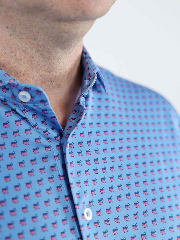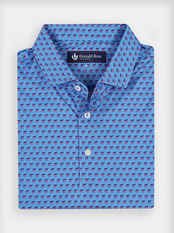 The Burlington, Men's Democratic Performance Polo by Donald Ross Sportswear. Featuring the signature Democratic Party donkey symbol in our performance jersey fabric. This garment feels cool to the touch and also keeps dry with moisture-wicking fabric. Performance shirts offers full stretch and breathability for any off course activities.