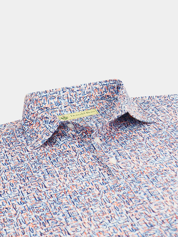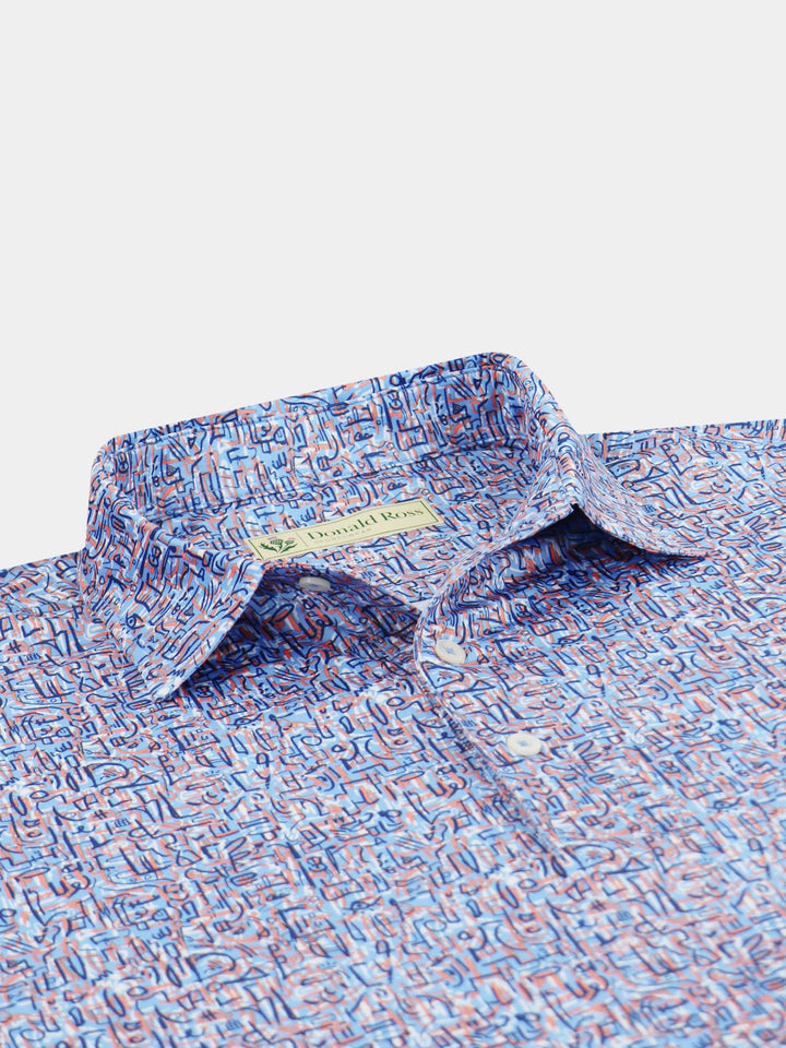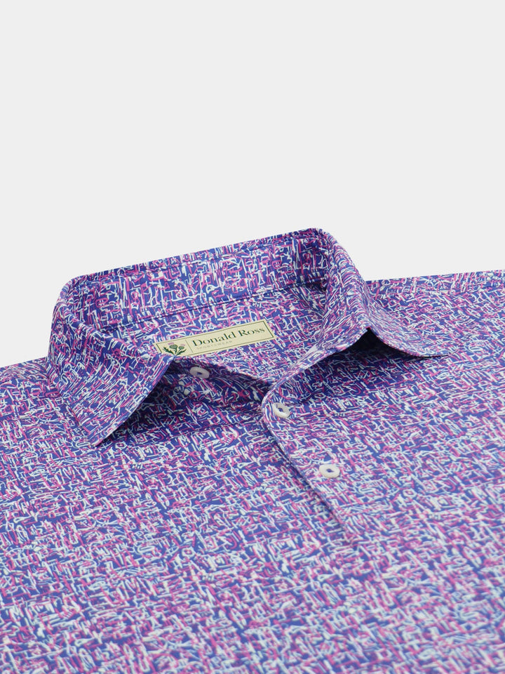 The Doodles Print Classic Fit men's golf polo by Donald Ross Sportswear. A timeless golf polo featuring a doodles print. Constructed from our best selling technical performance jersey, this garment feels cool to the touch and wicks moisture away from your body. The Doodles Print offers full stretch and breathability for endless comfort on and off the course.
