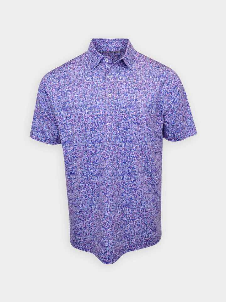 The UPF 50 sun protection fabric is perfect for long days on the green. Features including a three button placket and self-collar. Designed for performance, The Doodles Print men's golf polo is a great addition to any golfer's wardrobe and lifestyle.