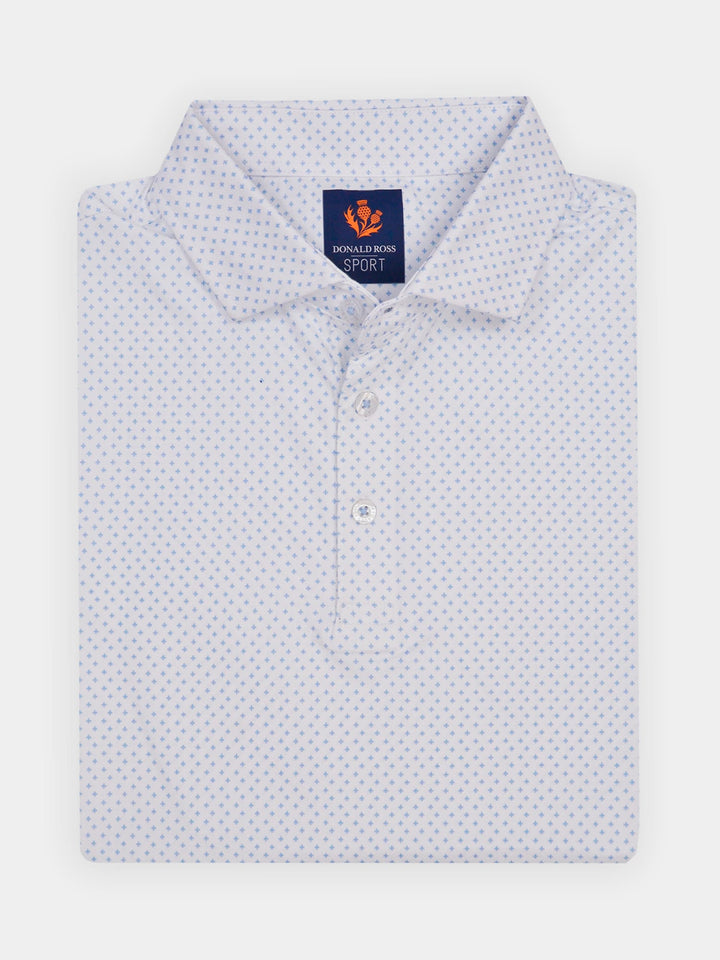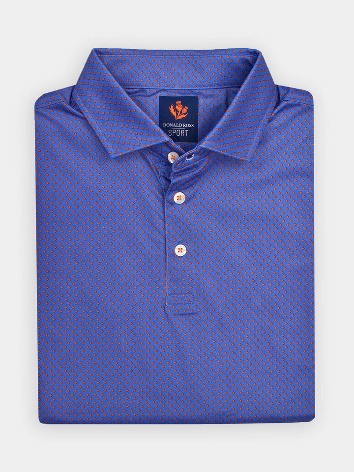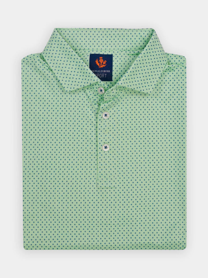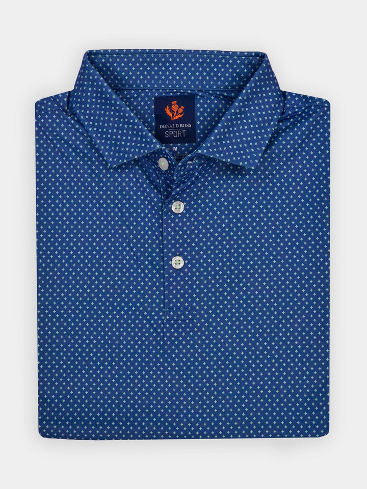 The Byron, Men's Fleur de Lis Print Polo by Donald Ross Sportswear. The Byron features a Fleur de Lis print polo offered in six unique color ways. Constructed from our performance jersey fabric, this garment also feels cool to the touch and stays dry with moisture-wicking fabric. The Byron offers full stretch and breathability for overall comfort on and off the course.