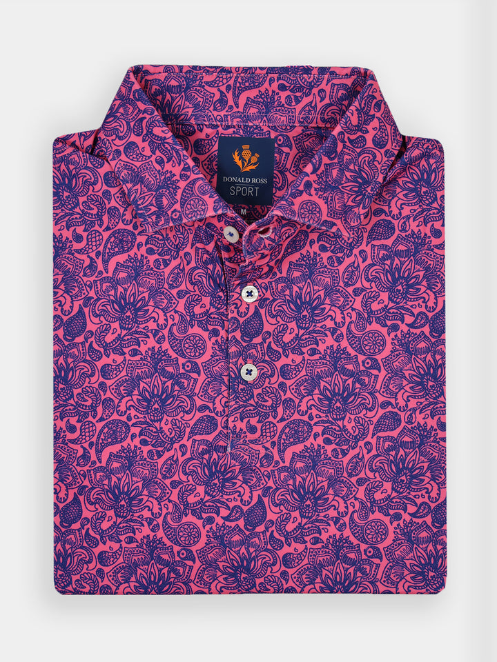 The Stewart, a Men’s Flower Print Polo offers a sharp, stylish look in four vibrant colors. Whether you’re on the golf course or out for the day, this polo blends comfort and performance. It ensures you look great while playing your best.