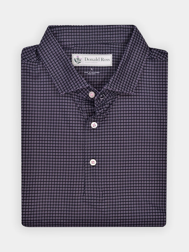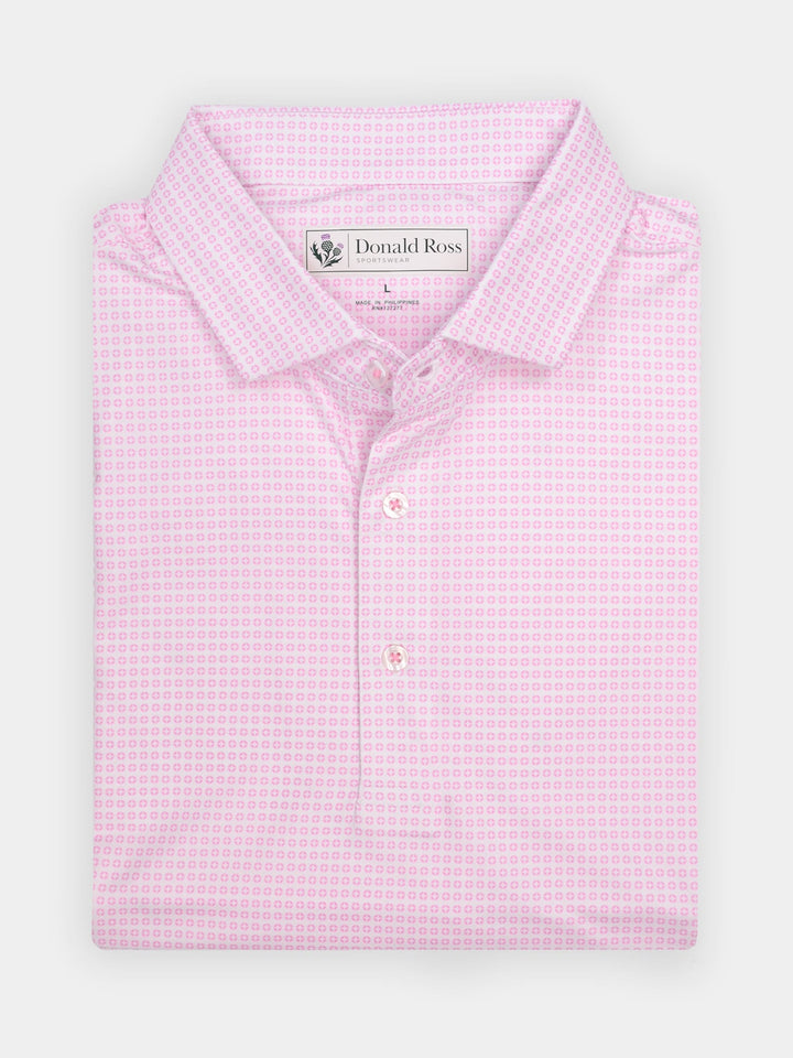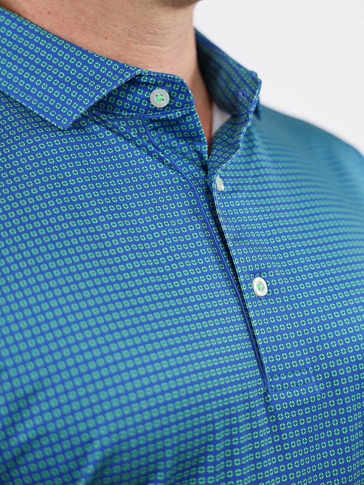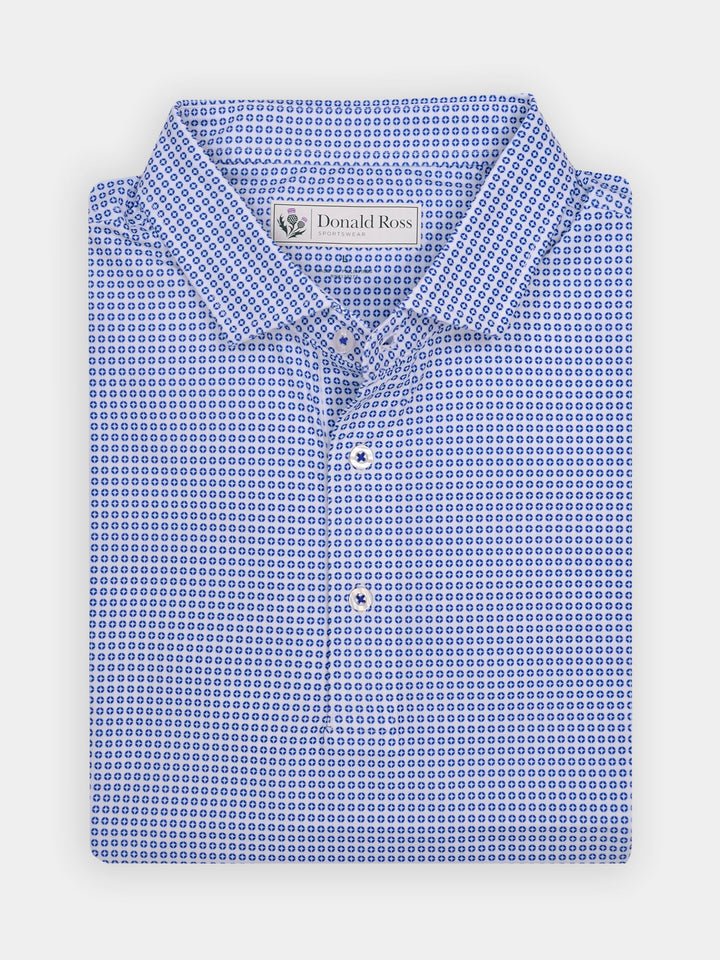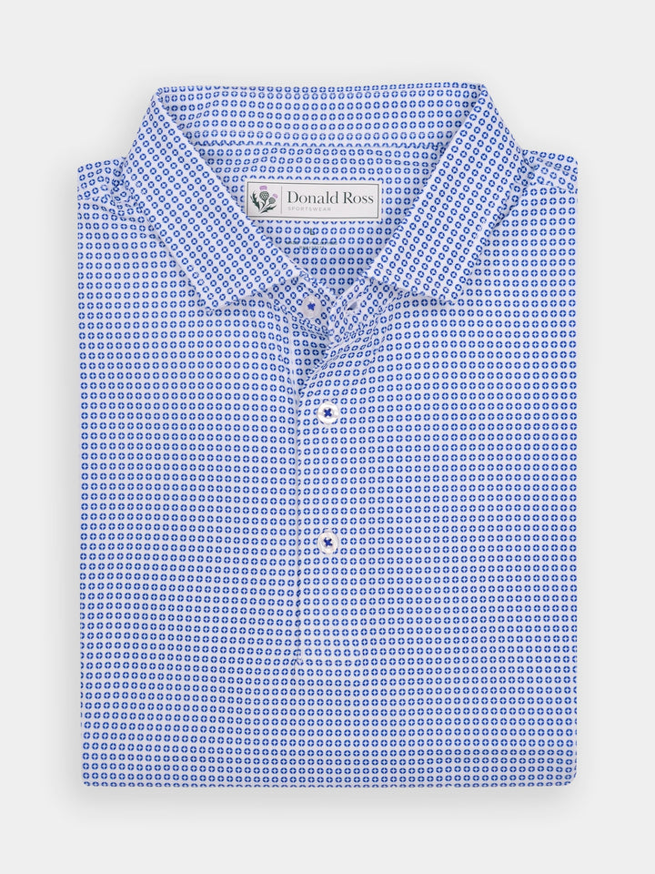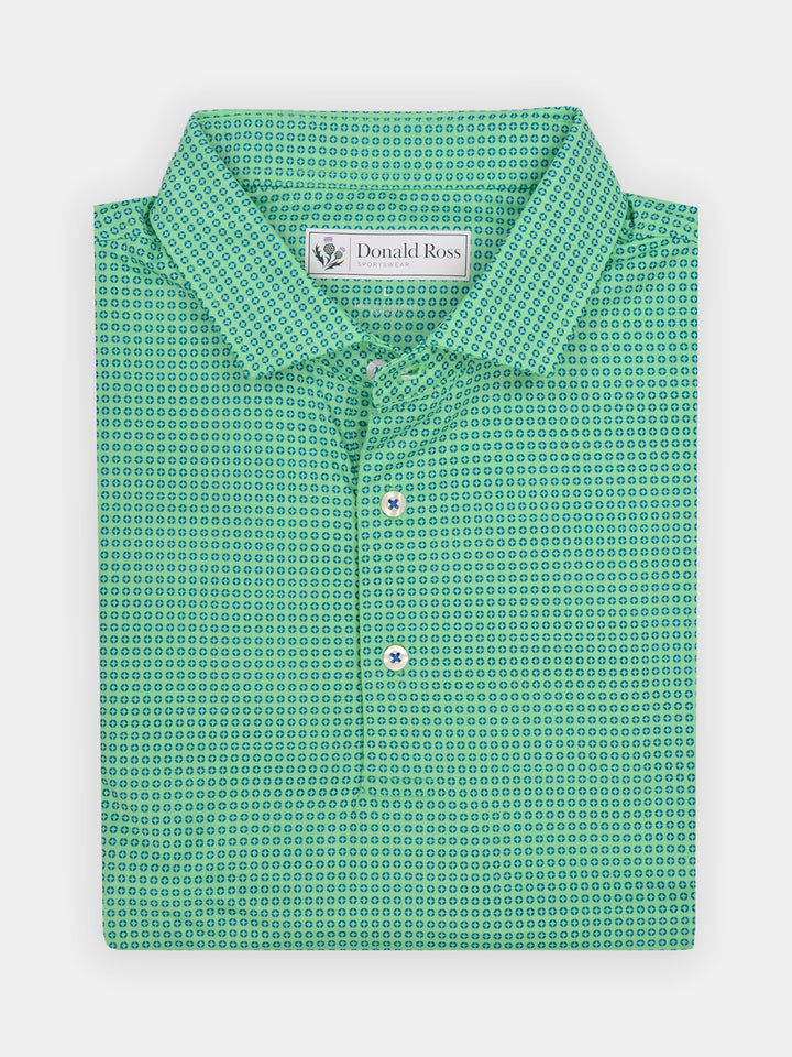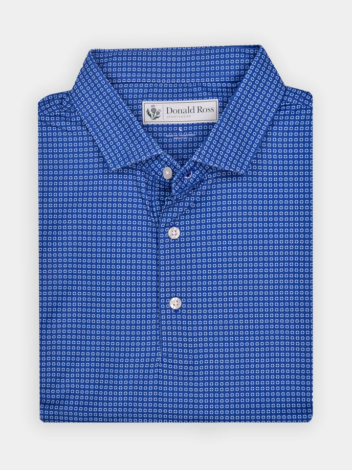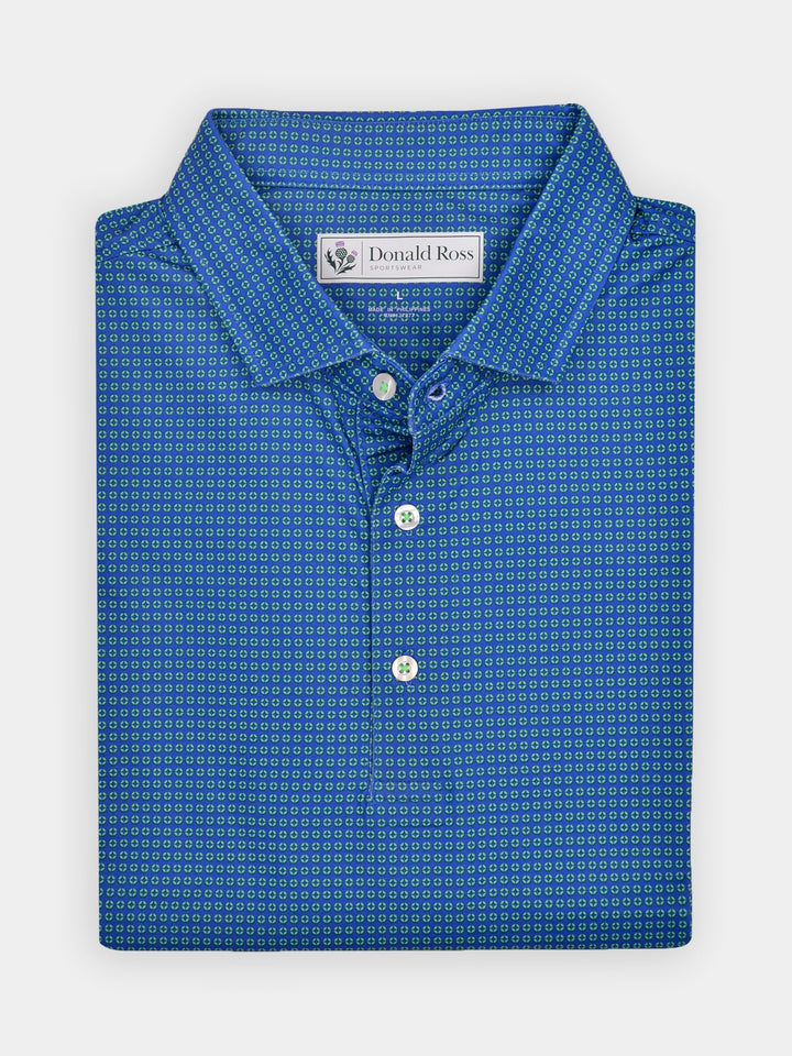 The Dartmouth Men's Geo Print Polo by Donald Ross Sportswear is a performance golf polo with a zegna circle print. Our classic polo is perfect for both the fairway and the clubhouse, and also available in seven different color ways.