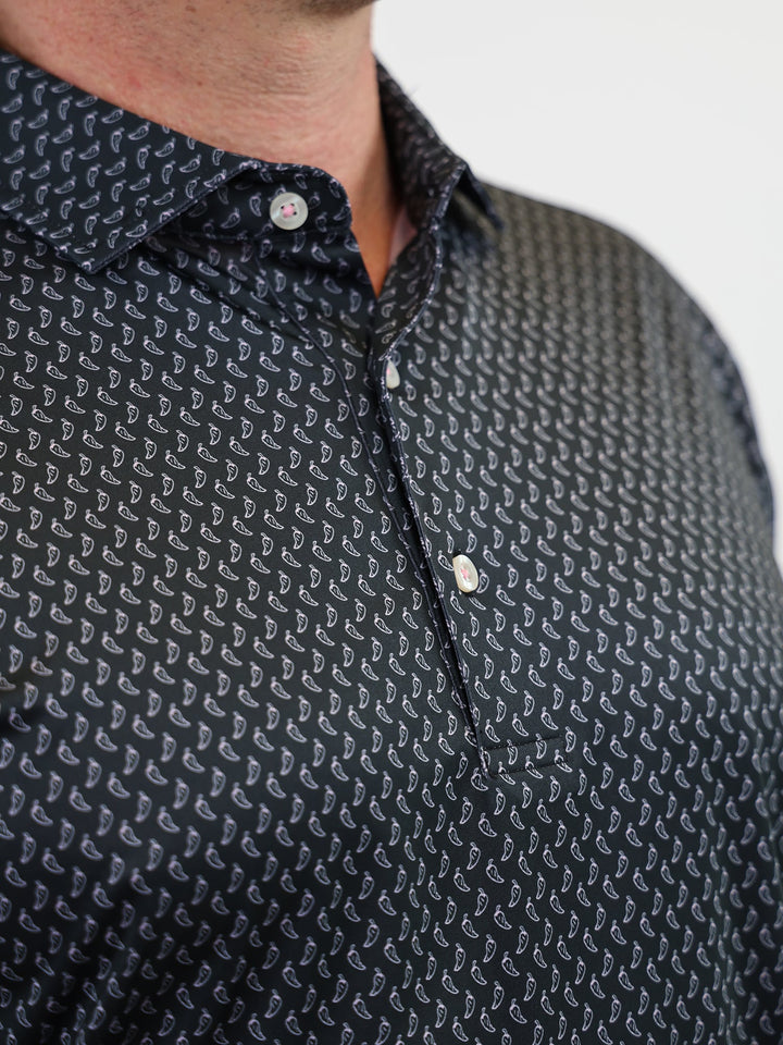The Sarasota Men's Peppers Print Polo by Donald Ross Sportswear is a performance golf polo with a neat and tasteful peppers print. Our classic polo is perfect for both the fairway and the clubhouse, and also available in five different colorways.