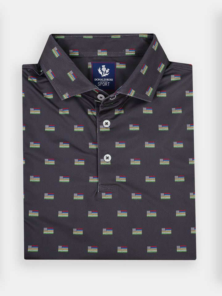 This print polo combines functionality and tribute in one great design. It’s a must-have addition to any golfer’s wardrobe, offering comfort, protection, and a touch of patriotism.