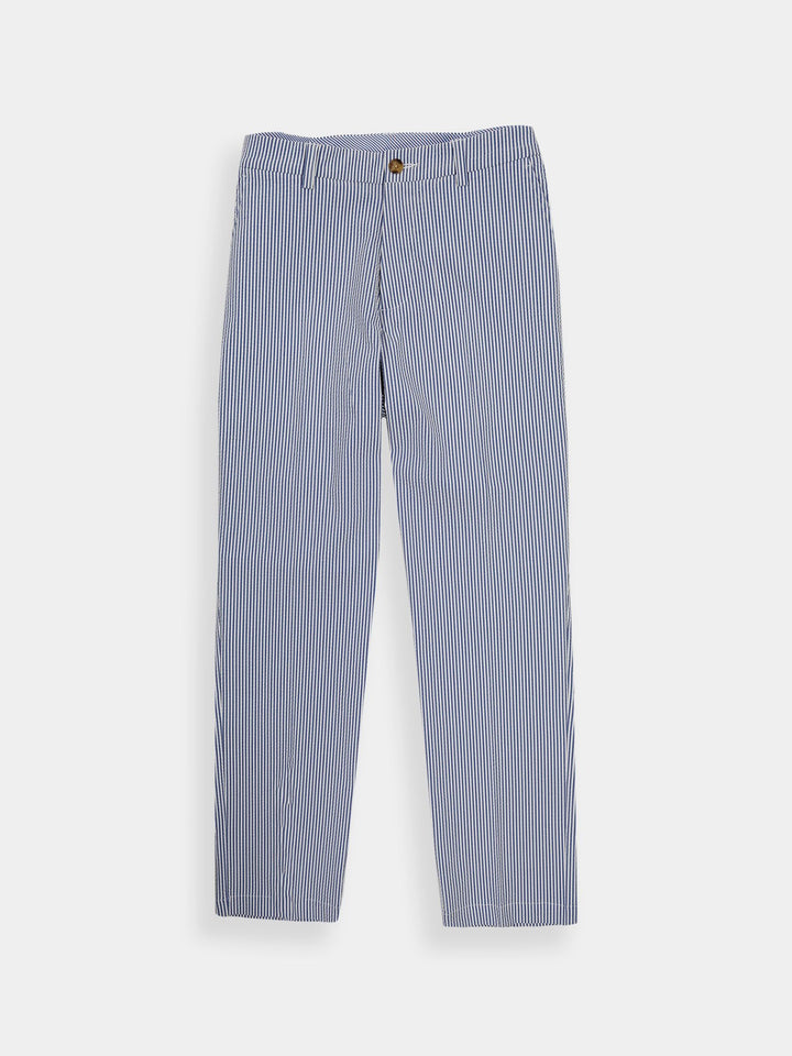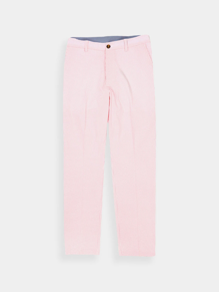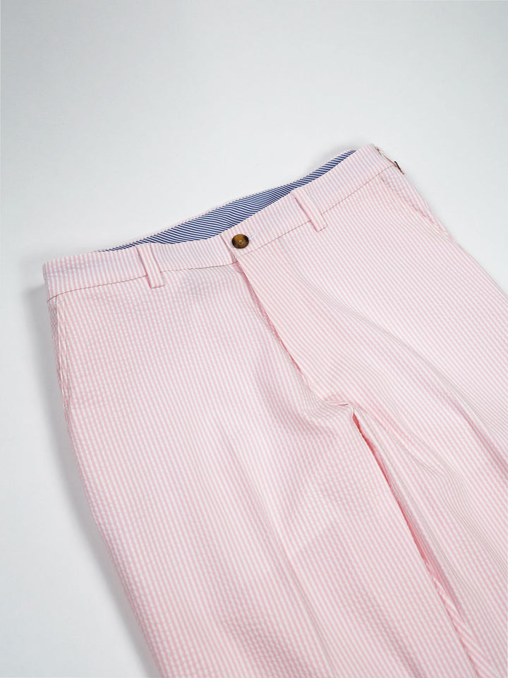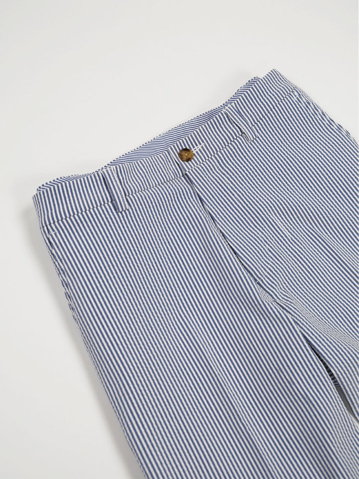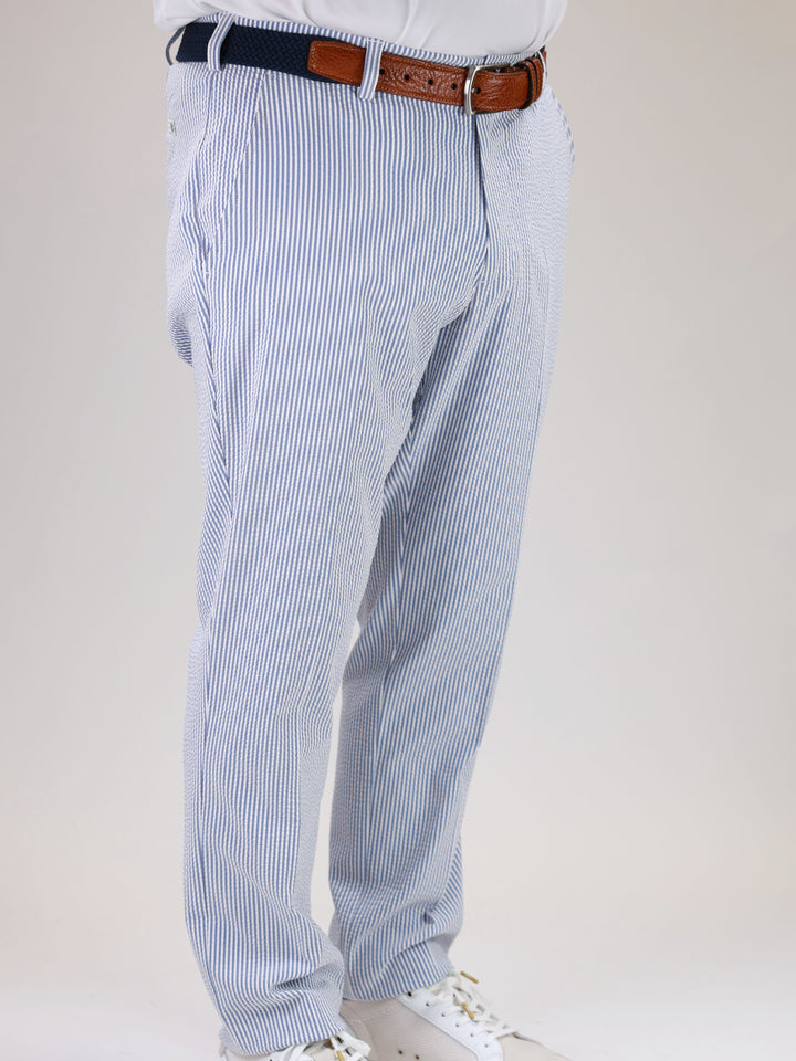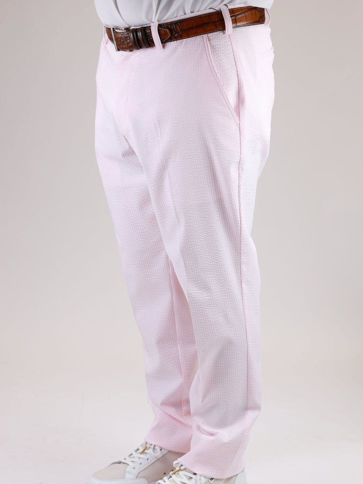 The Seersucker Performance Pants include a larger front button and a stylish waistband lining. The flat front design ensures a generous, comfortable fit. Ideal for both professional and casual wear, these pants combine durability with sleek, modern style.