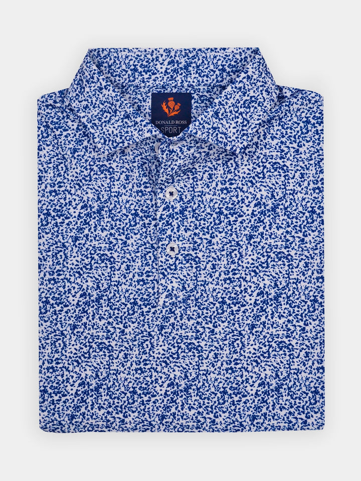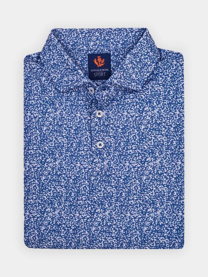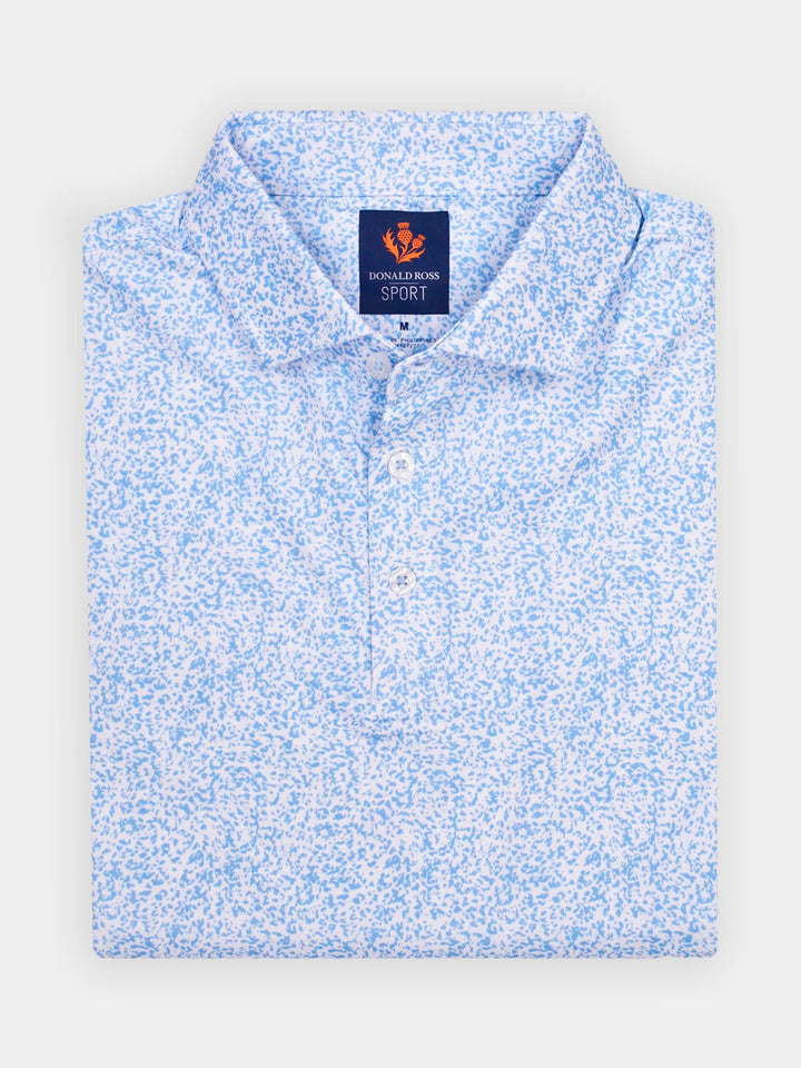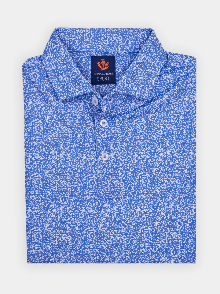The Eugene, Men's Sponge Print Polo by Donald Ross Sportswear. The Eugene features a two-color sponge print polo offered in five tasteful color ways. Constructed from our performance jersey fabric, this garment also feels cool to the touch and stays dry with moisture-wicking fabric. The Eugene offers full stretch and breathability for overall comfort on and off the course.