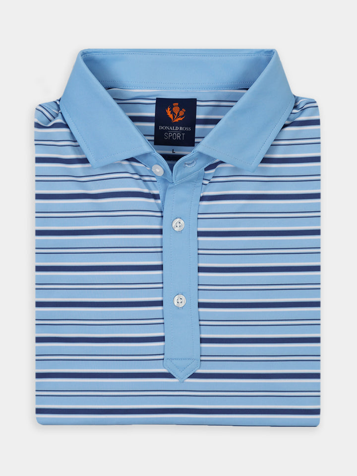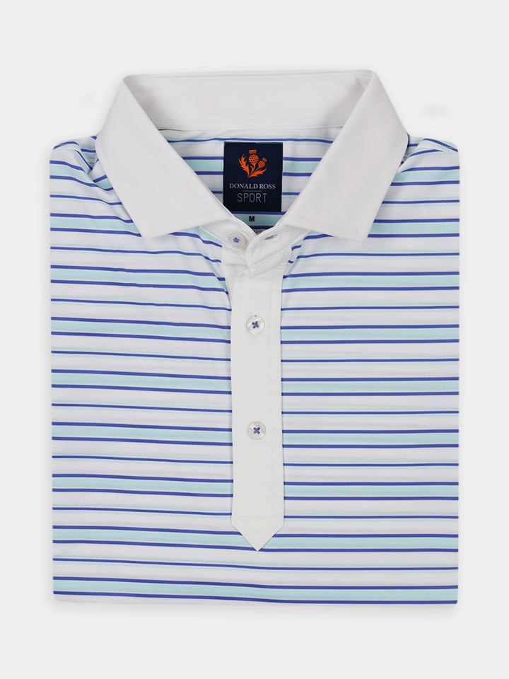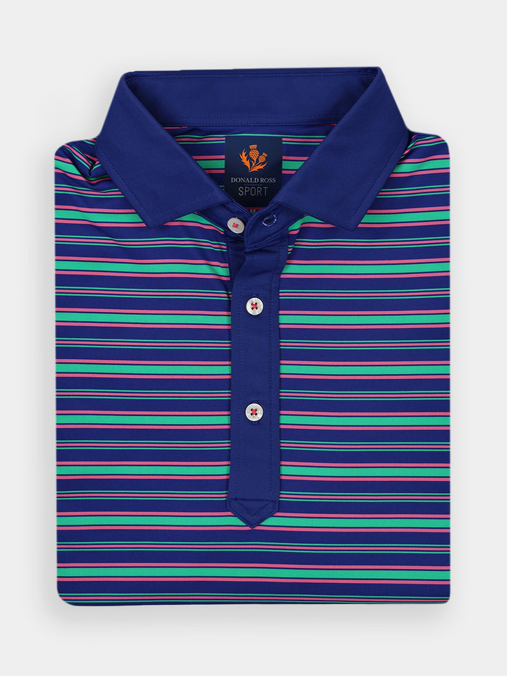 The Blake Men’s Stripe Jersey Polo by Donald Ross Sportswear combines style and performance. This stylish short sleeve features a three-color multi-stripe design, available in three color ways. Perfect for golfers, it delivers both comfort and functionality.