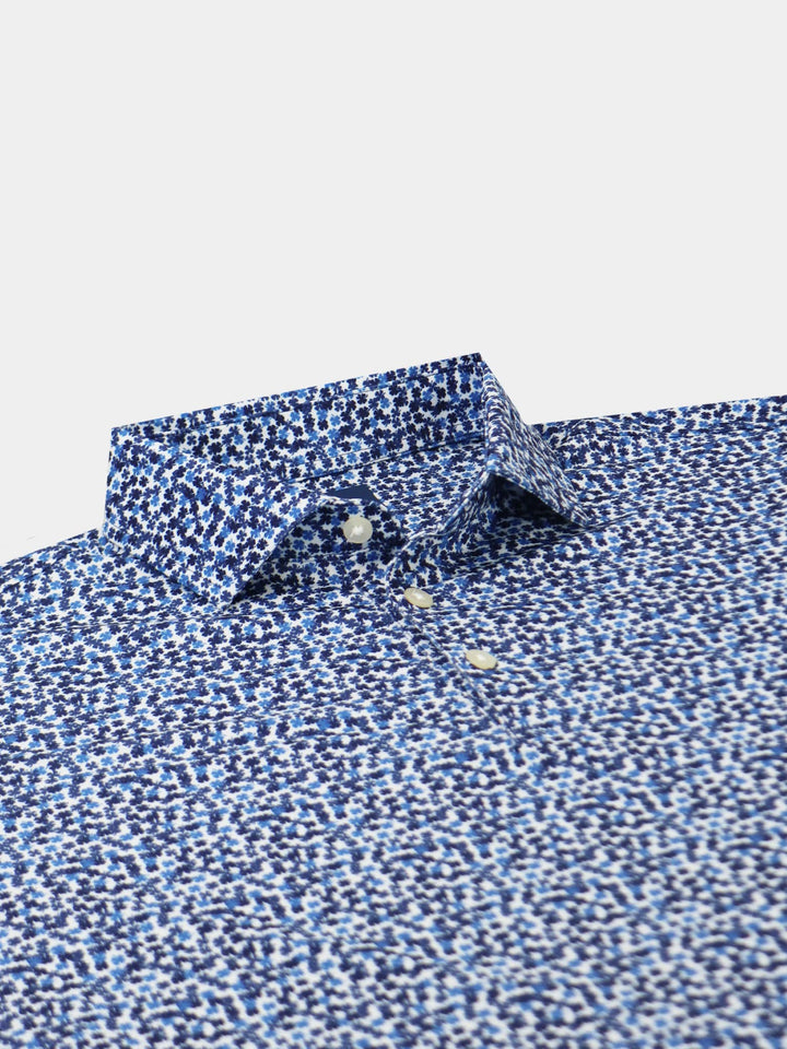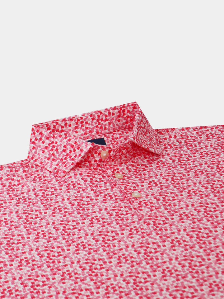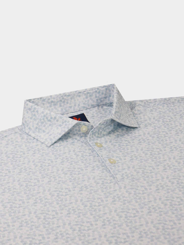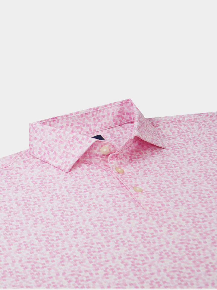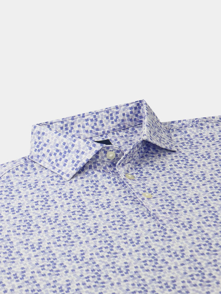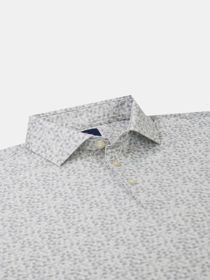 The Harry, Men's Tonal Clovers Polo by Donald Ross Sportswear. A unique and subtle four leaf clover print in six unique colorways. Constructed from our best-selling technical performance jersey, this garment feels cool to the touch and stays dry as it wicks moisture away from your body. The Harry offers full stretch and breathability for endless comfort on and off the course.