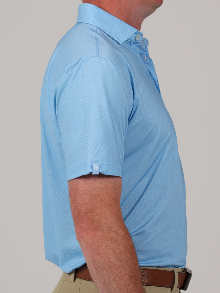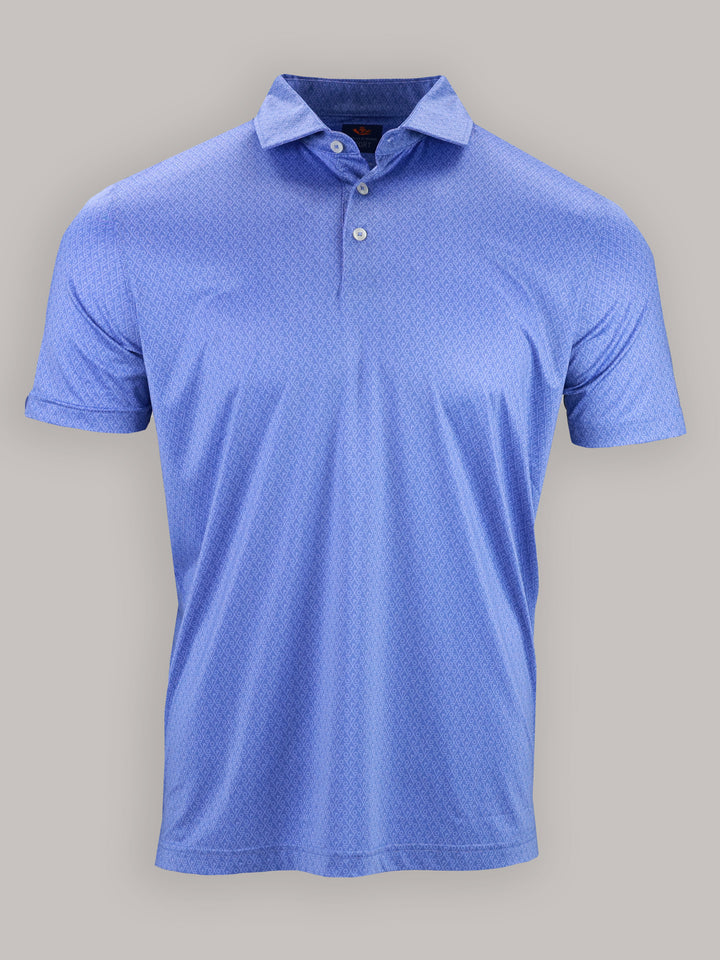 Description : Stay cool, sharp, and course-ready with the Mitchel Performance Jersey Golf Polo. Engineered for performance and elevated style, this men’s golf polo features a club and ball print and is crafted from a premium 91% polyester / 9% spandex blend for lightweight comfort and durability. Built with four-way stretch fabric, this polo moves with you—whether you're swinging on the course or heading into the clubhouse. The performance jersey knit offers exceptional breathability, moisture management, and a smooth hand feel, while UPF 50 sun protection keeps you shielded during long days outdoors. Designed with a classic three-button placket and a sophisticated spread collar, this polo brings a polished yet sporty look to your golf wardrobe. Backed by lifelong satisfaction, it's a piece you'll reach for round after round.