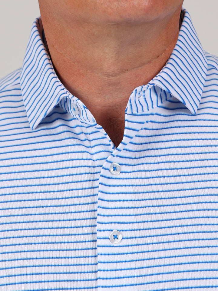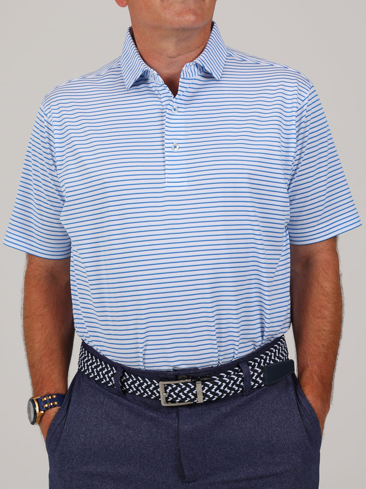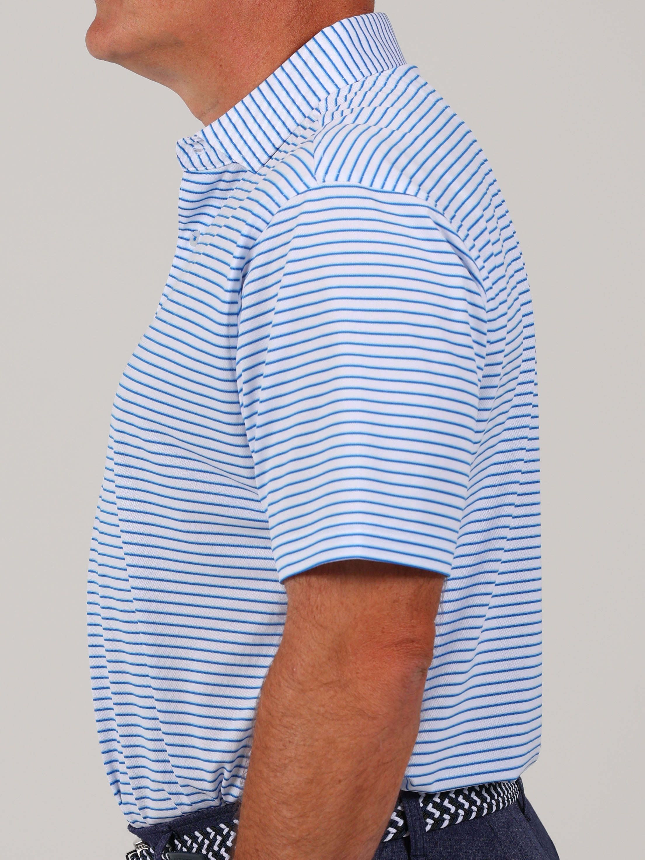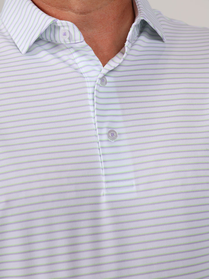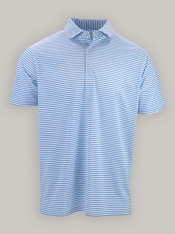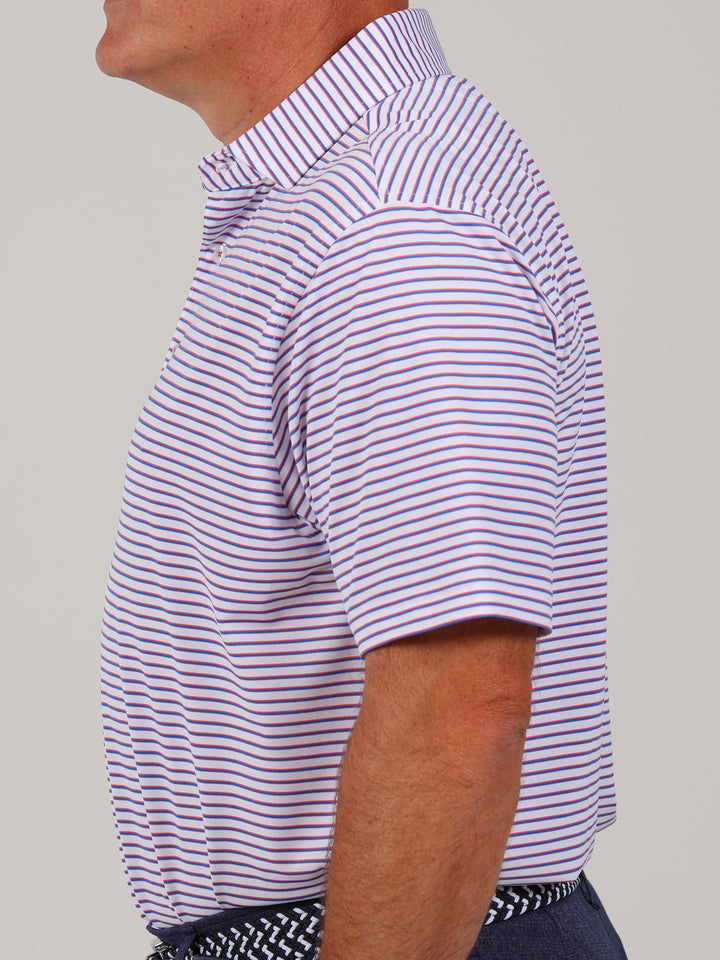 Description : Elevate your golf game with the Classic Fit Monroe Golf Polo, designed for all-day comfort, timeless style, and performance on and off the course. Crafted from a premium 91% polyester / 9% spandex blend in a breathable baby pique knit, this short-sleeve golf polo offers lightweight stretch and moisture-wicking comfort for every swing. The Classic Fit features a relaxed cut with extra room in the sleeves and torso, making it perfect for golfers who prefer a more traditional silhouette with enhanced mobility and longer coverage. Finished with a three-button placket, a finely detailed collar, and UPF 50+ sun protection, this multi stripe golf shirt blends style and function with ease. Whether you're teeing off, heading to the clubhouse, or simply enjoying a casual weekend, this men’s performance golf polo delivers lifelong satisfaction in every wear.