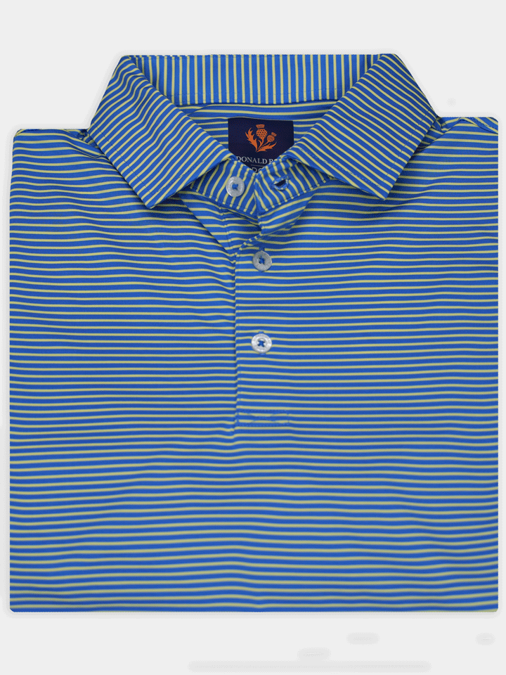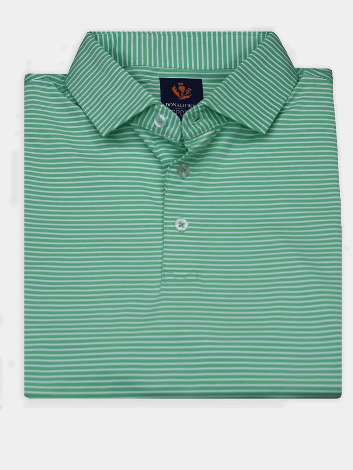 Stay cool, sharp, and course-ready with the Donald Ross Murphy Performance Jersey Golf Polo. Engineered for performance and elevated style, this men’s golf polo features a pin stripe design and is crafted from a premium 91% polyester / 9% spandex blend for lightweight comfort and durability.